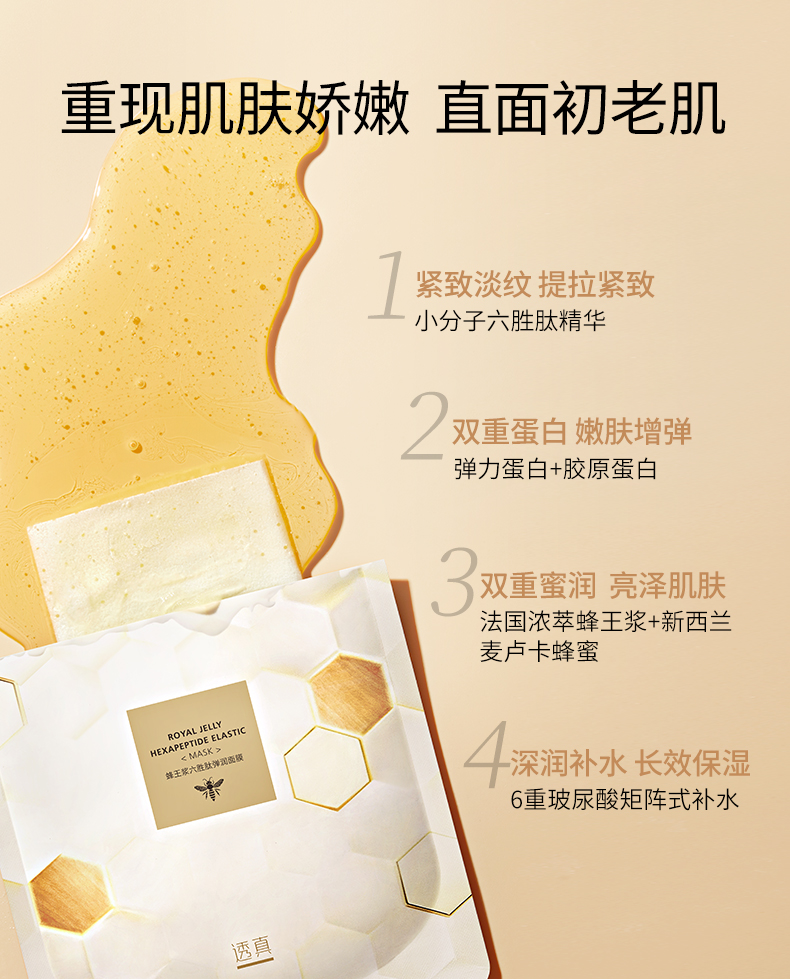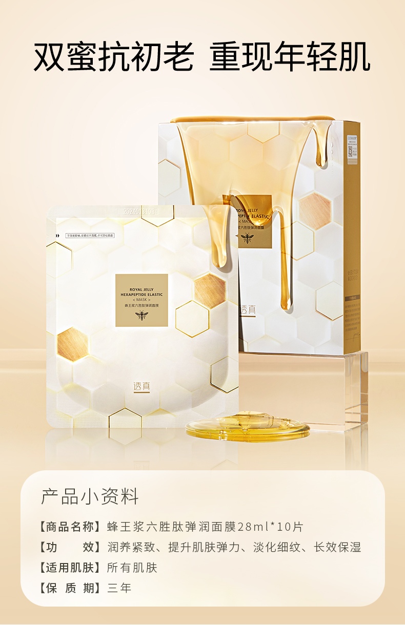 透真 蜂王浆六胜肽弹润面膜10片/盒装(2025年4月10日
