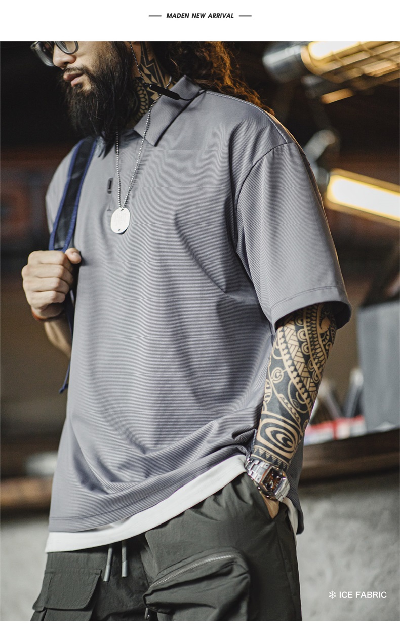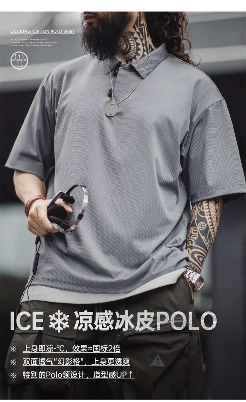 工装优选美式休闲黑科技凉感短袖polo衫薄款透气冰丝翻领上衣男夏