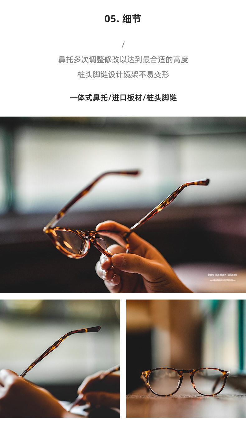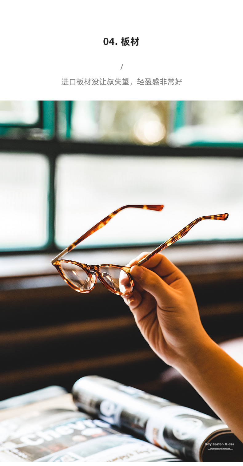 工装优选 玳瑁色超轻细框Boston眼镜圆形蝌蚪同款近视镜架男女潮