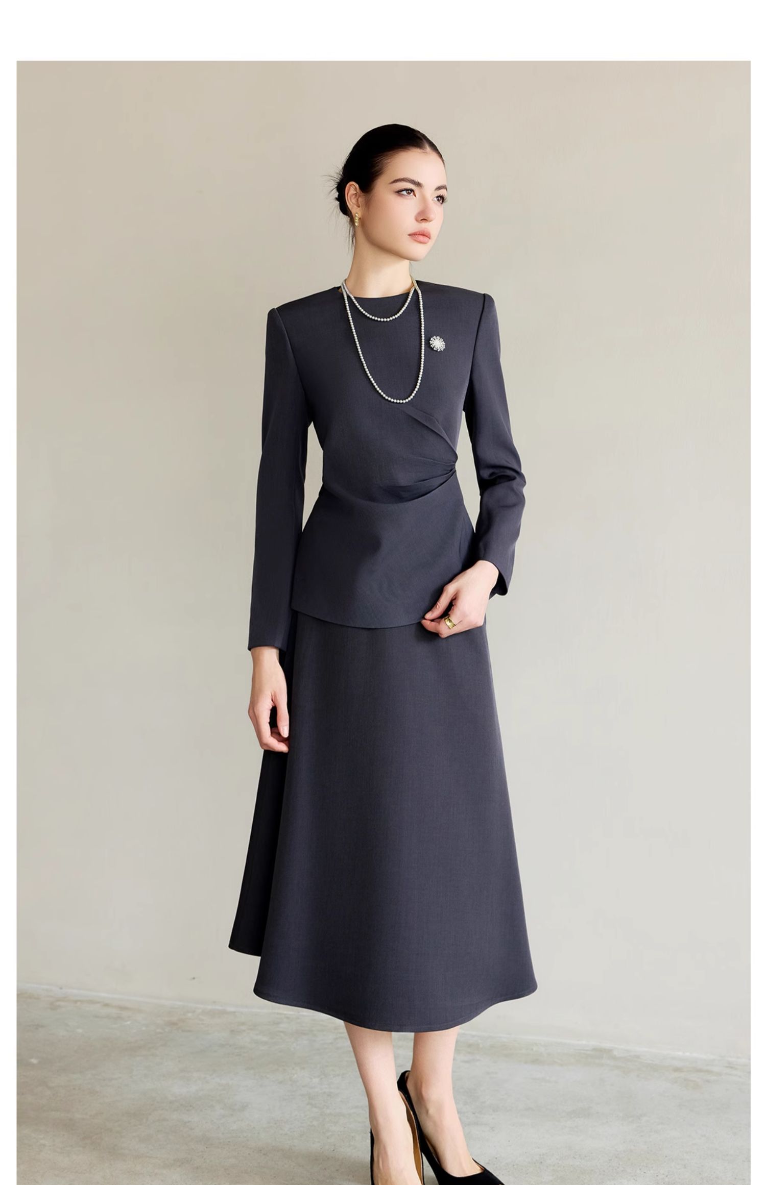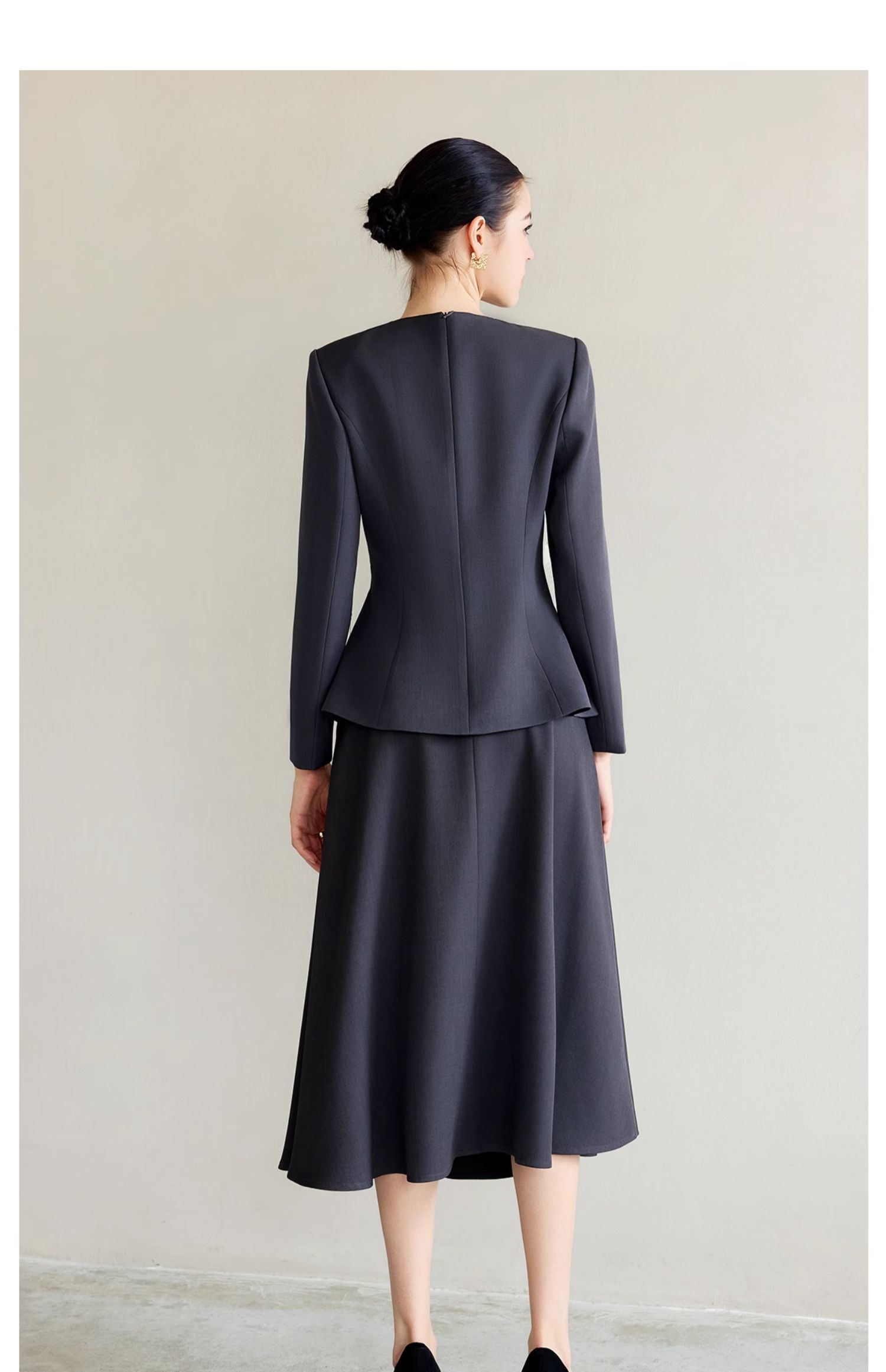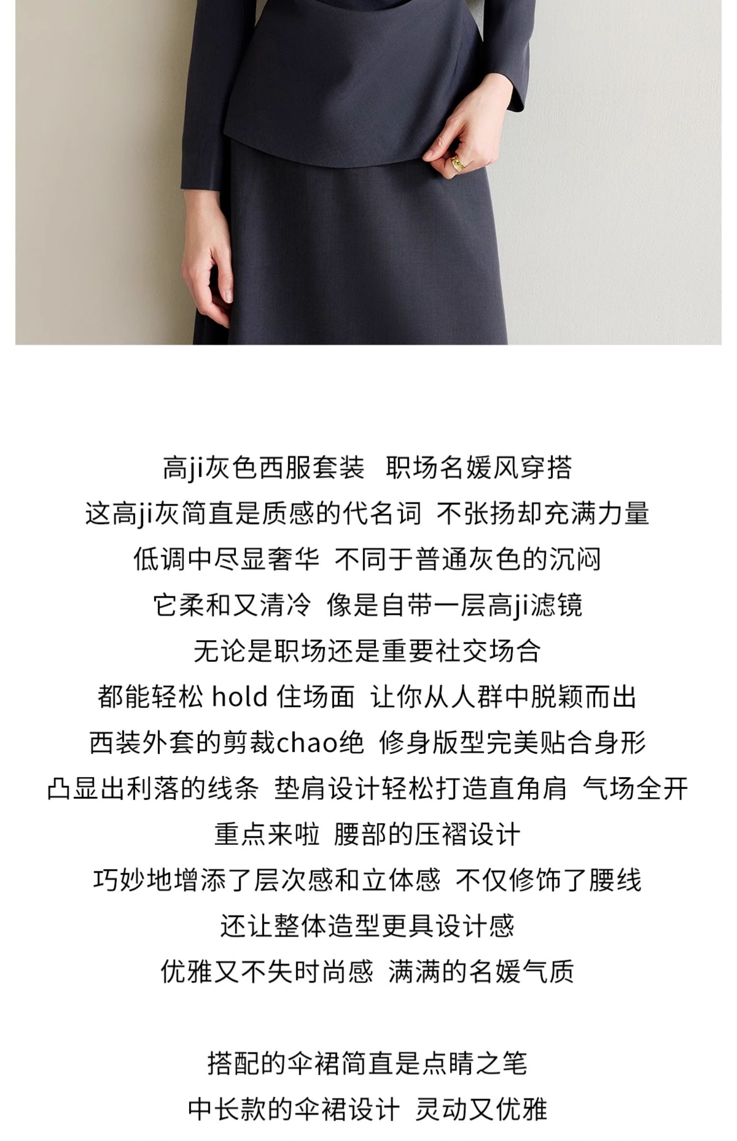 AD灰色西服套装气质女神范高端名媛西装两件套上流社会职业装伞裙