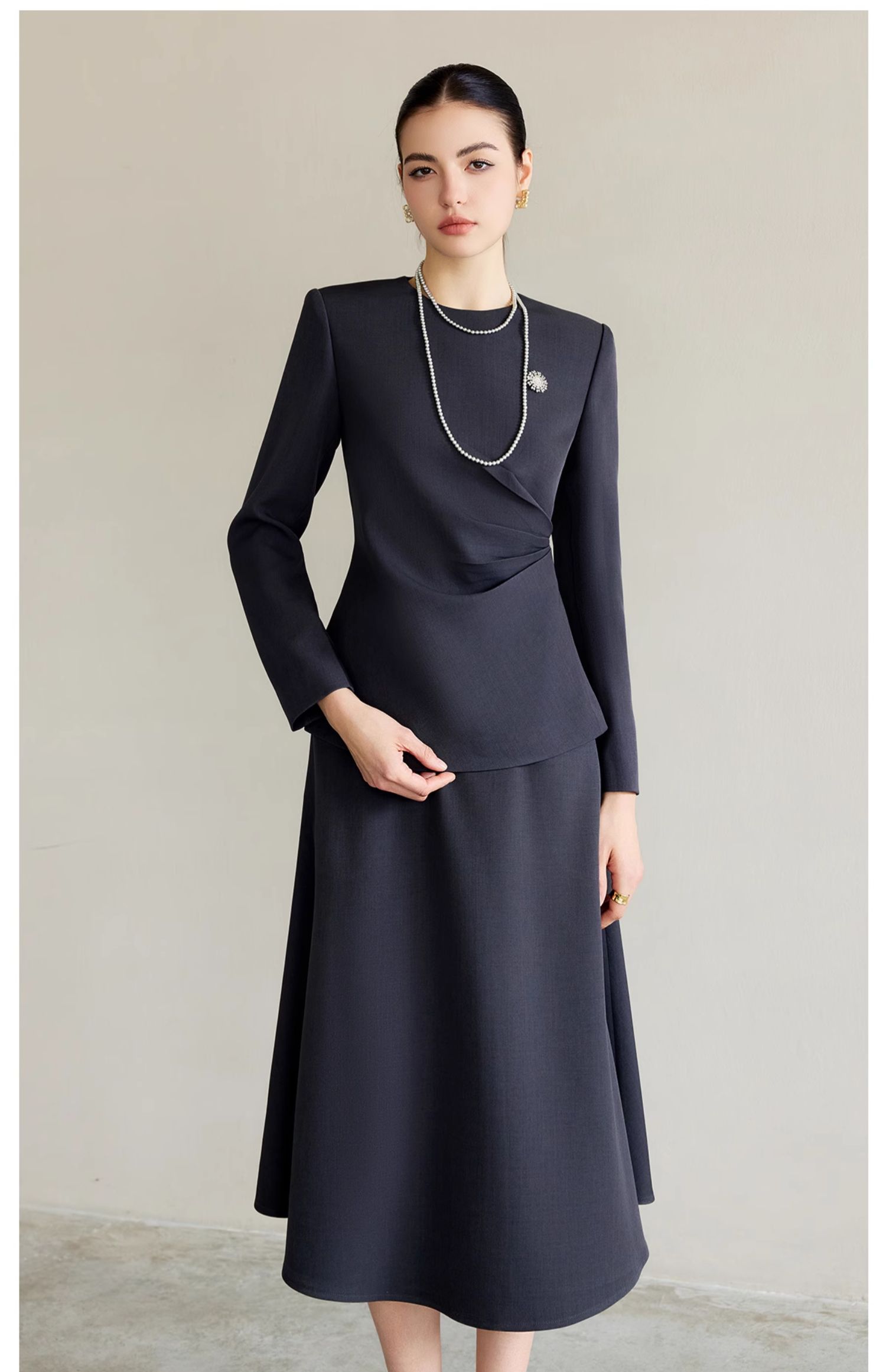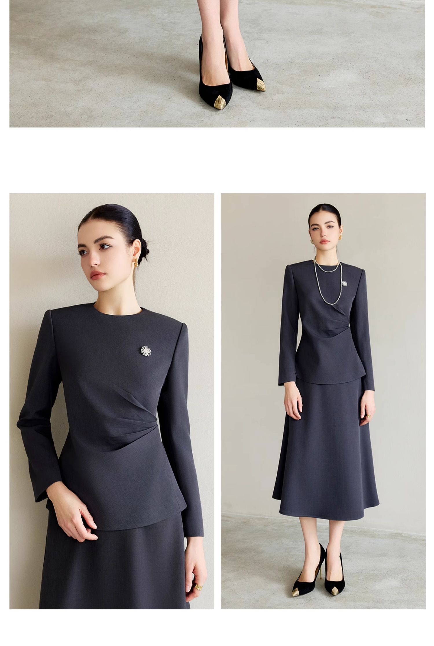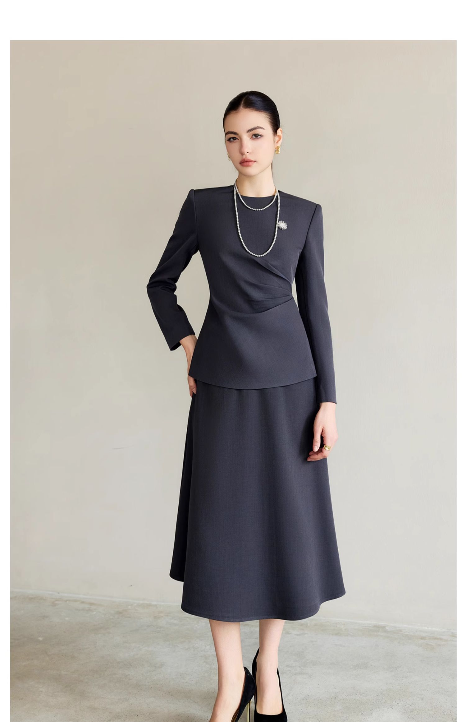AD灰色西服套装气质女神范高端名媛西装两件套上流社会职业装伞裙