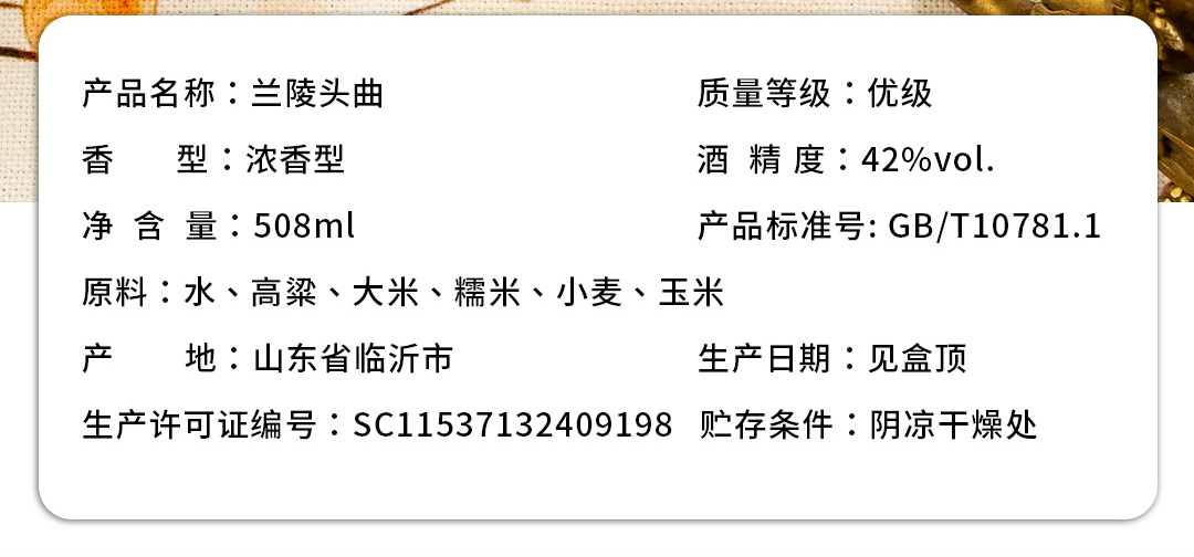 兰陵酒 兰陵42度头曲浓香型白酒508mL*2瓶 纯粮食优级口粮酒