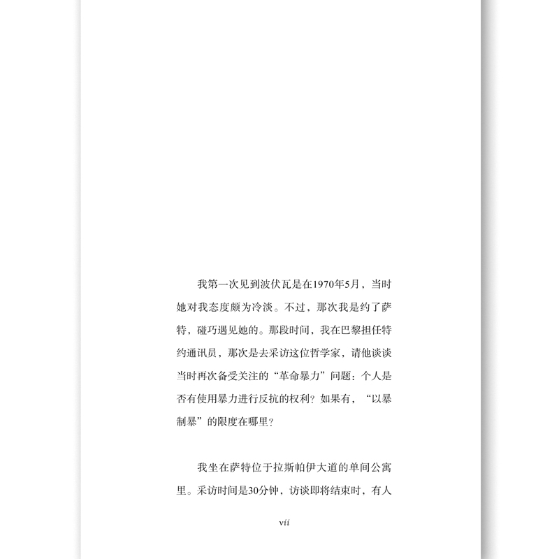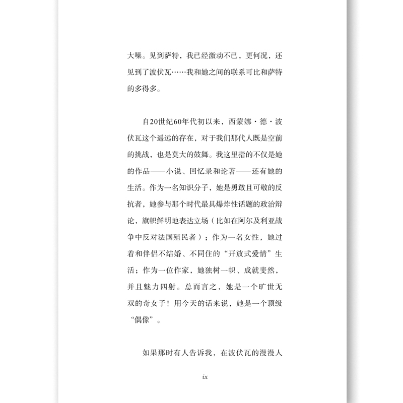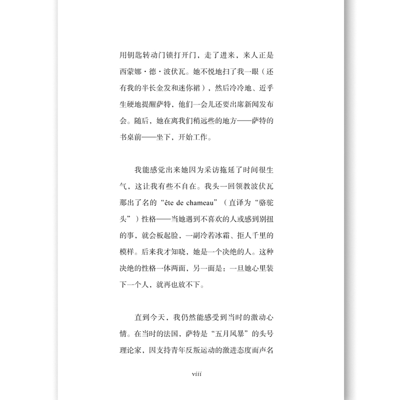 【免费在线读】新版序言我第一次见到波伏瓦是在1970年5月,当时她对我态度颇为冷淡。不过,那次我是约了萨特,碰巧遇见她的。那段时间,我在巴黎担任特约通讯员,那次是去采访这位哲学家,请他谈谈当时再次备受关注的;革命暴力问题:个人是否有使用暴力进行反抗的权利?如果有,;以暴制暴的限度在哪里?我坐在萨特位于拉斯帕伊大道的单间公寓里。采访时间是30分钟,访谈即将结束时,有人用钥匙转动门锁打开门,走了进来,来人正是西蒙娜德波伏瓦。她不悦地扫了我一眼(还有我的半长金发和迷你裙),然后冷冷地、近乎生硬地提醒萨特,他们一会儿还要出席新闻发布会。随后,她在离我们稍远些的地方萨特的书桌前坐下,开始工作。我能感觉出来她因为采访拖延了时间很生气,这让我有些不自在。我头一回领教波伏瓦那出了名的;ecirc;te de chameau(直译为;骆驼头)性格当她遇到不喜欢的人或感到别扭的事,就会板起脸,一副冷若冰霜、拒人千里的模样。后来我才知晓,她是一个决绝的人。这种决绝的性格一体两面,另一面是:一旦她心里装下一个人,就再也放不下。直到今天,我仍然能感受到当时的激动心情。在当时的法国,萨特是;五月风暴的头号理论家,因支持青年反叛运动的激进态度而声名大噪。见到萨特,我已经激动不已,更何况,还见到了波伏瓦我和她之间的联系可比和萨特的多得多。自20世纪60年代初以来,西蒙娜德波伏瓦这个遥远的存在,对于我们那代人既是空前的挑战,也是莫大的鼓舞。我这里指的不仅是她的作品回忆录和论著,还有她的生活。作为一名知识分子,她是勇敢且可敬的反抗者,她参与那个时代最具爆炸性话题的政治辩论,旗帜鲜明地表达立场(比如在阿尔及利亚战争中反对法国殖民者);作为一名女性,她过着和伴侣不结婚、不同住的;开放式爱情生活;作为一位作家,她独树一帜、成就斐然,并且魅力四射。总而言之,她是一个旷世无双的奇女子!用今天的话来说,她是一个顶级;偶像。如果那时有人告诉我,在波伏瓦的漫漫人生路上,会有一段旅程与我同行我将和她进行这些访谈,而且它们将会影响全世界的妇女运动我大抵不会相信。更让我想不到的是,我们对谈的那些年(19721982)还广为人们接受、享誉世界的波伏瓦,在她去世(1986)后不过数年,就被误解、被无视,甚至几乎被遗忘。然而,西蒙娜德波伏瓦正在被重新发现。在当前关于两性话题的争论中,身份认同主义者强调人与人的差异,普世主义者强调人与人的平等,而波伏瓦的平等思想是其中最重要的推动力量,尤其涉及性别关系。她理想中的性别关系是一种;兄弟姐妹情谊。与此同时,没有人像她那样激进地分析和彻底地质疑社会性别,却并不否认生理性别。今天人们称为;性别解构的概念,波伏瓦早有先见,虽然她并不是在这一领域进行研究的第一人,但她的分析最是鞭辟入里,她一针见血地指出:;女人不是天生的,而是后天形成的。 塑造;女性气质和;男性气质的不是生物学构成(Biologie),不是自然本质(Natur),而是文化:终生的性别角色分配把人割裂为女人或男人,剥夺了他们的另一面。波伏瓦理想中的人,是摆脱了性别角色束缚的完整的人。然而,身为哲学家的波伏瓦并不否认生理性别,也不否认性别经过了千百年的塑造。在1949年出版的《第二性》(Le Deuxiegrave;me Sexe)中,她写道:;拒绝永恒女性、黑人灵魂、犹太人性格的概念,并非否认今日有犹太人、黑人、女人:这种否定对上述几种人并不代表一种解放,而是代表一种非本真的回避态度。显而易见,任何女人都不能真诚地自认为置身于自己的性别之外。 对男人来说,道理亦然。例如,在当前关于跨性别的讨论中,性别改变后否认先天性别的经历和印痕作用,就是;不真诚。真诚的做法是,承认并接纳出生性别和所期望的性别这两方面的经历。因此,波伏瓦坚持摒弃文化性别角色,但她也深知印痕作用的真实性和自然的不可逆性。她在《第二性》的结尾写道:;人类的任务是让自由王国在既定的世界实现突破性飞跃。为了取得这一最终胜利,男性和女性应超越他们的自然差异,明确表达相互之间的兄弟情谊。 (若是在今天,她大概会说;兄弟姐妹情谊。)在当前的性别身份认同辩论中,有些人既质疑社会性别,又质疑生理性别,即将文化与自然等同起来。而在波伏瓦看来,;自然性别即生理性别当然是不可逆转的,只是它不应该再成为分配性别角色的借口。在20世纪初全球历史性的女权运动过去半个多世纪后,;新女权运动应运而生,在美国被称为;第二次浪潮。我们这些七十年代的女权主义者都读过西蒙娜德波伏瓦的《第二性》,并在其理论基础上加以发挥。不久,该书作者也成为我们中的一员,公开承认自己是女权主义者,并积极参与女权主义运动。1970年9月,我加入了巴黎的一个女权先锋小团体。次年春天,我们的行动就被视为一股运动,媒体称其为;妇女解放运动(Mouvement de Libeacute;ration des Femmes,简称MLF)。我们发起了一次又一次引人注目的行动,其中包括反堕胎禁令运动。1971年4月,包括一些知名人士在内的343名女性在《新观察家》(Le Nouvel Observateur)杂志上公开声明:;我堕过胎,我要求每个女性都享有同样的权利!波伏瓦就在这些女性之列。我将这个运动理念从法国带到了德国,1971年6月6日,374名女性在德国《亮点》周刊(Der Stern)挑衅地宣称:;我们堕过胎!自加入女权运动起,波伏