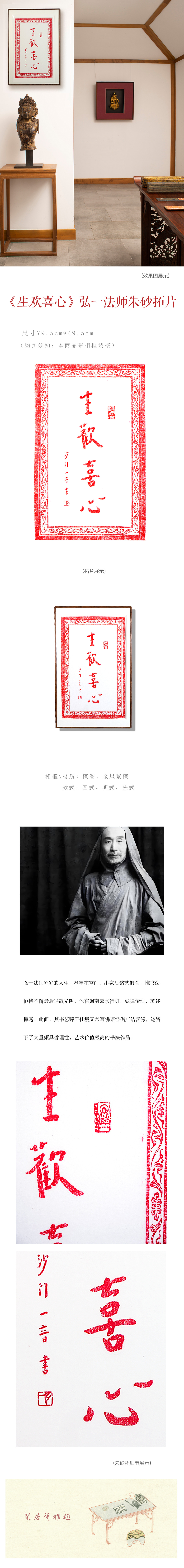 弘一法师书法朱砂拓片挂画-生欢喜心 商品图0