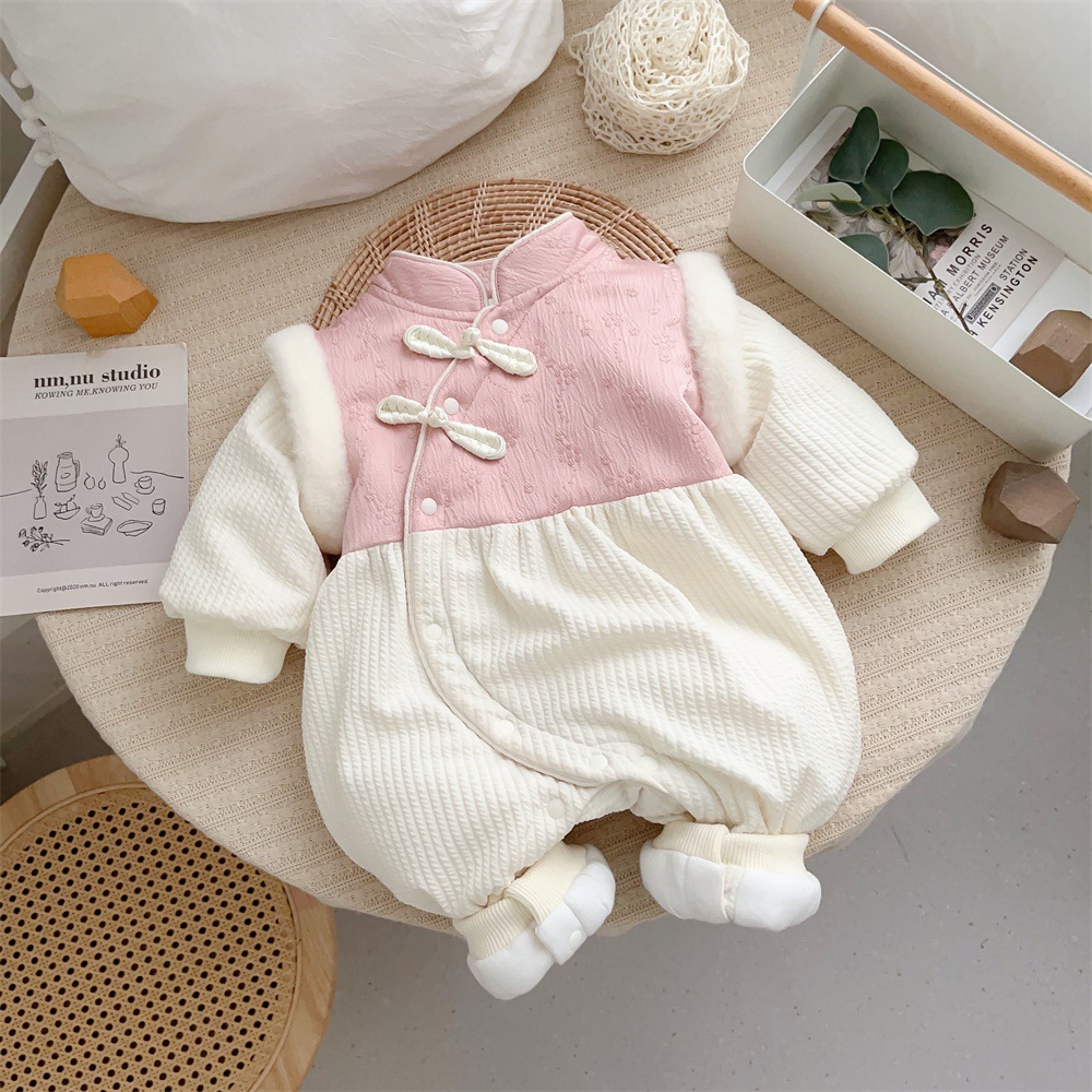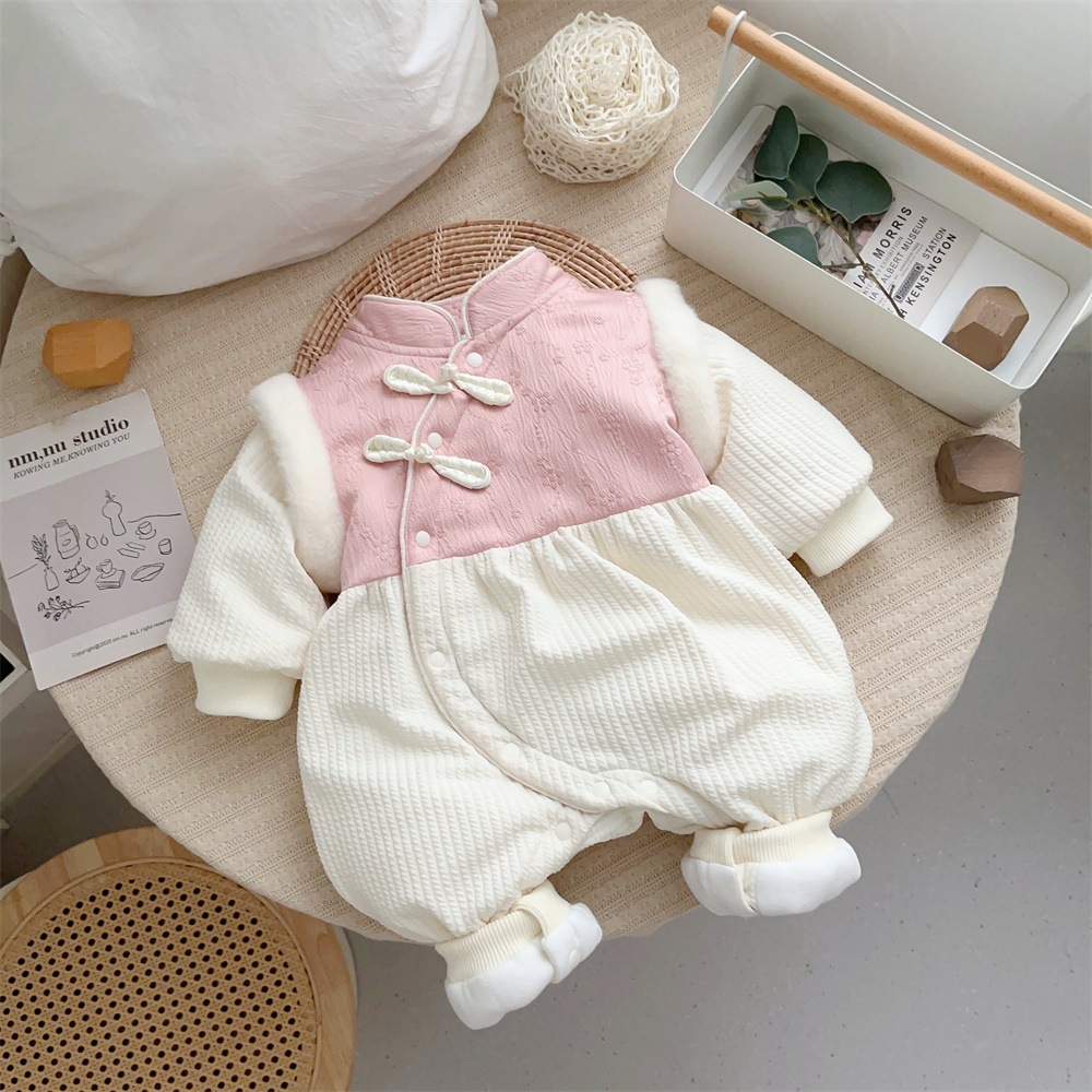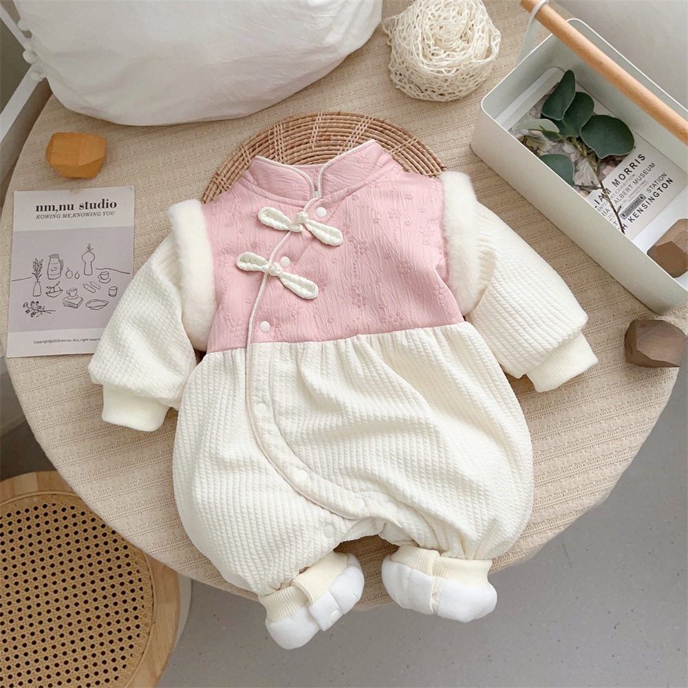 【中国风秋冬婴儿拜年服】满月婴儿服女宝哈衣夹棉连体服