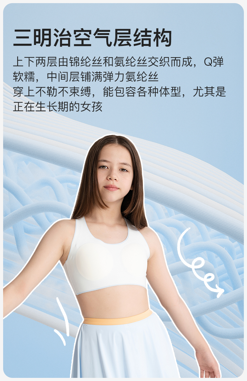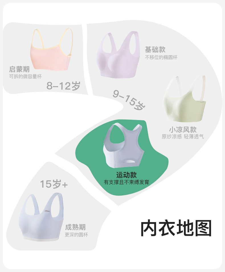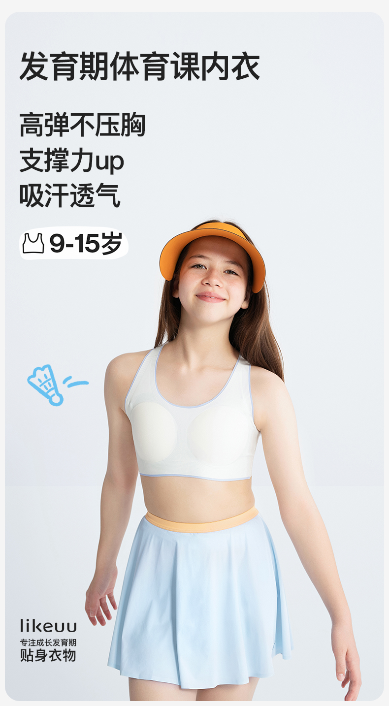 (11.11)ubras旗下likeuu少女文胸交叉美背内衣运动女童发育背心