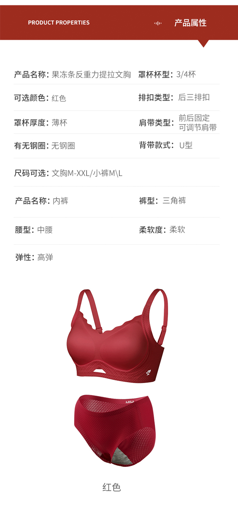 雅黛丽本命年红色文胸套装礼盒结婚新娘无痕高弹小胸薄款内衣内裤