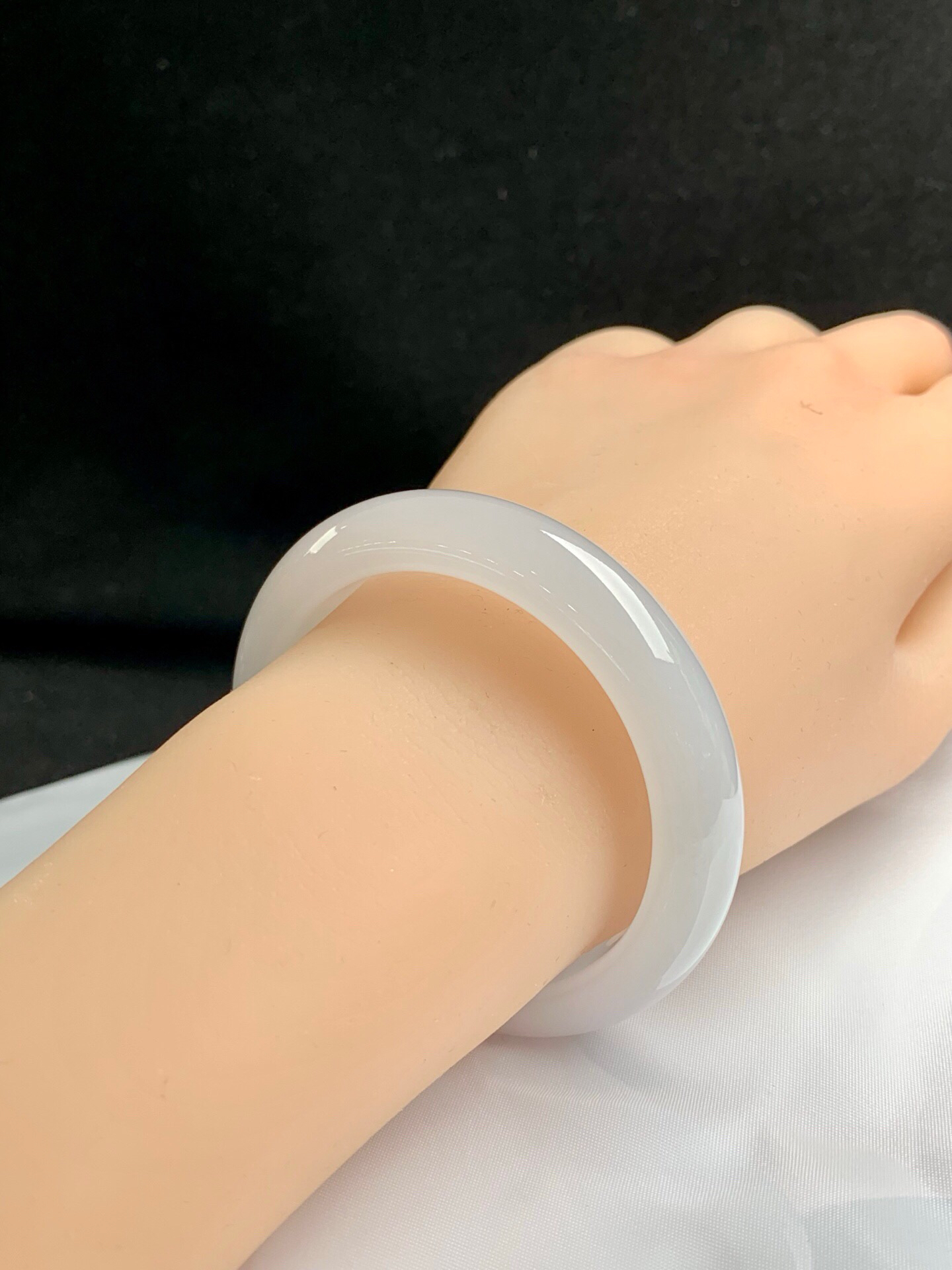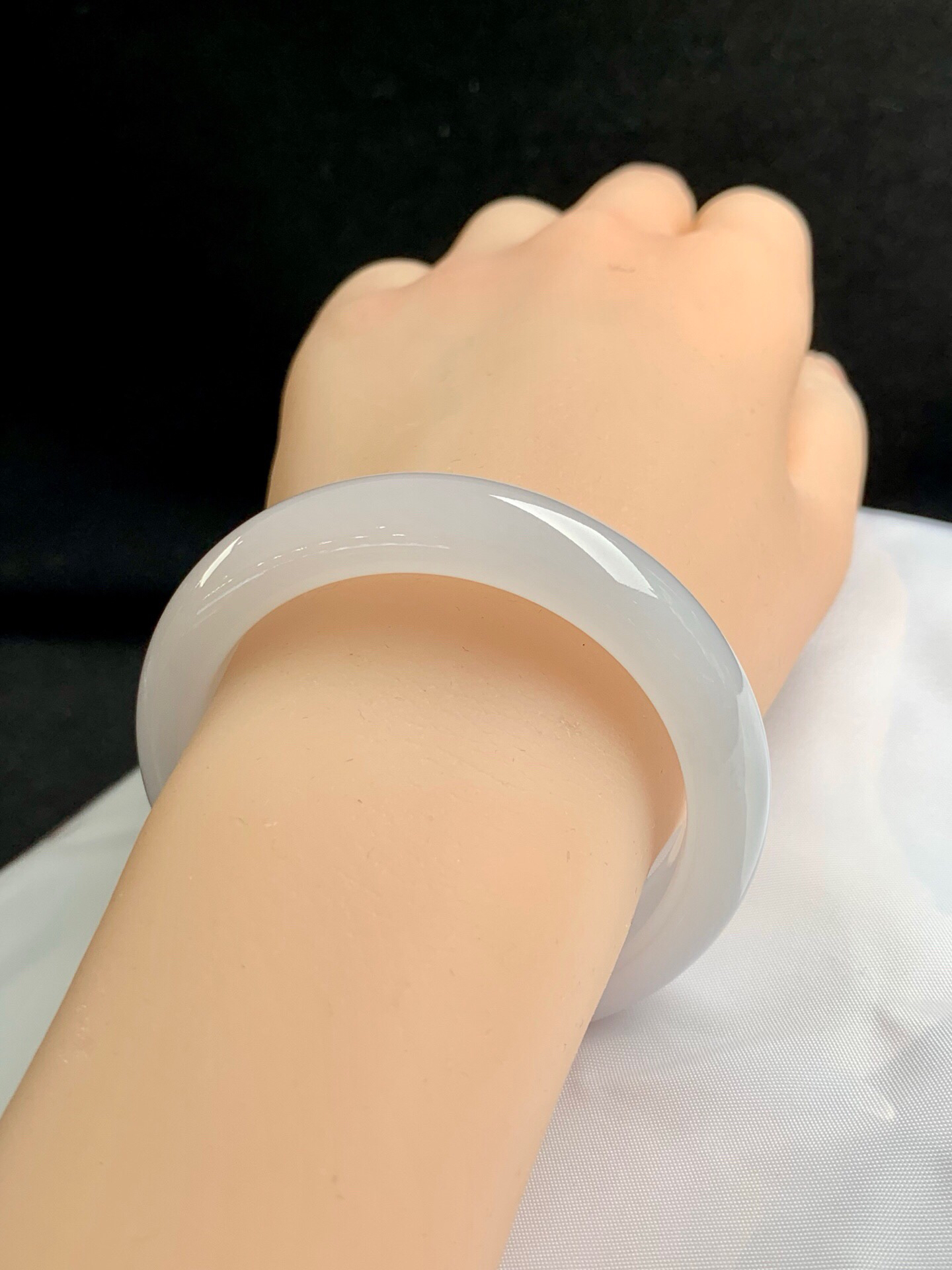620291,51.6圈口,糯冰白月光正圈平安镯,底子清爽干净,非常细润,完美无裂,尺寸:51.6-12.5-8.3,超值价💰26300 #优石客珠宝#香玉荟萃