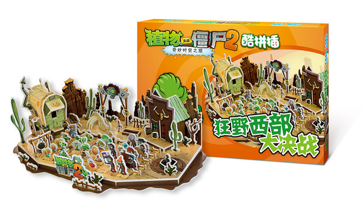 《奇妙时空之旅》第6站“黑暗时代”的全景再现——植物战士的营房和僵尸的魔法城堡,对阵线路以及具有鲜明特色的三条支线。本系列拼插是以《植物大战僵尸2奇妙科幻之旅》中第六站黑暗时代的形象和场景为素材而设计的立体手工产品。场景很好地还原了原游戏作品中的暗黑气氛和植物与僵尸的生动形象。独立的植物和僵尸小插片搭配场面宏大的背景底板,能让孩子们在锻炼排兵布阵的逻辑思考能力的同时体验与同名电脑游戏相同的氛围场景。
