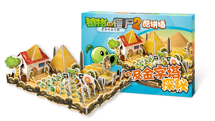 《埃及金字塔探秘》是以《植物大战僵尸2奇妙时空之旅》游戏中的第1关“神秘埃及”的场景、植物形象和僵尸形象为主角,既包含可供孩子自己动手拼插的狮身人面像和金字塔,也包括可供孩子排兵布阵的植物和僵尸形象,让孩子动手动脑,拼出战略,拼出智慧。