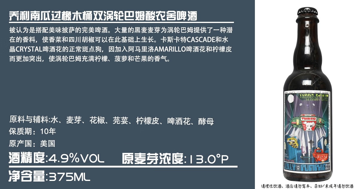 【冷库储存】美国乔利南瓜过橡木桶双涡轮巴姆酸农舍4.9%vol