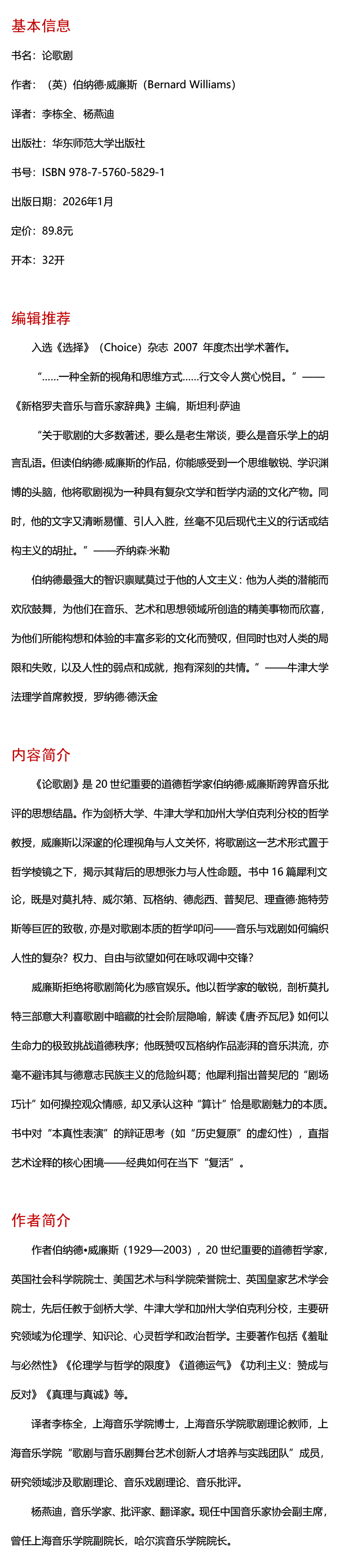 论歌剧 六点音乐译丛 歌剧文集 伯纳德·威廉斯
