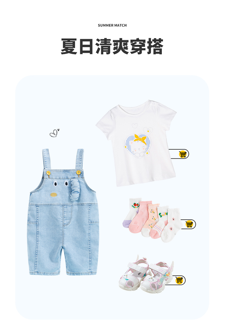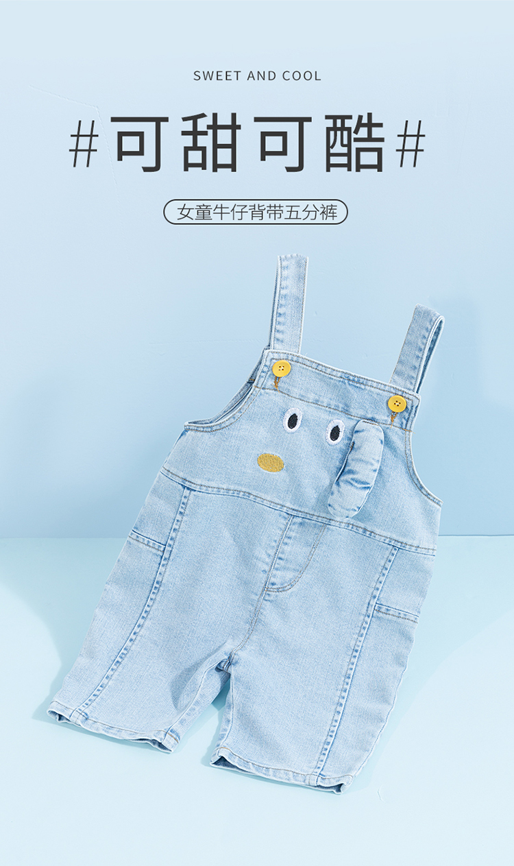 贝贝怡婴儿牛仔背带短裤夏季薄款男女宝宝五分裤小童休闲连体裤子