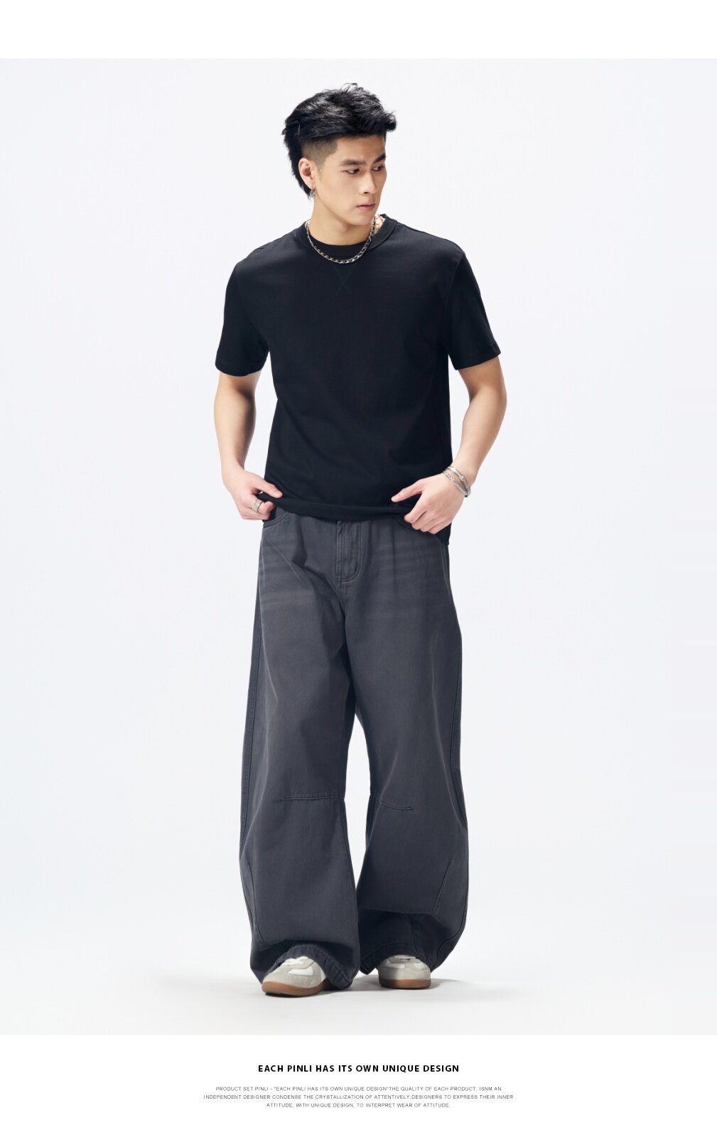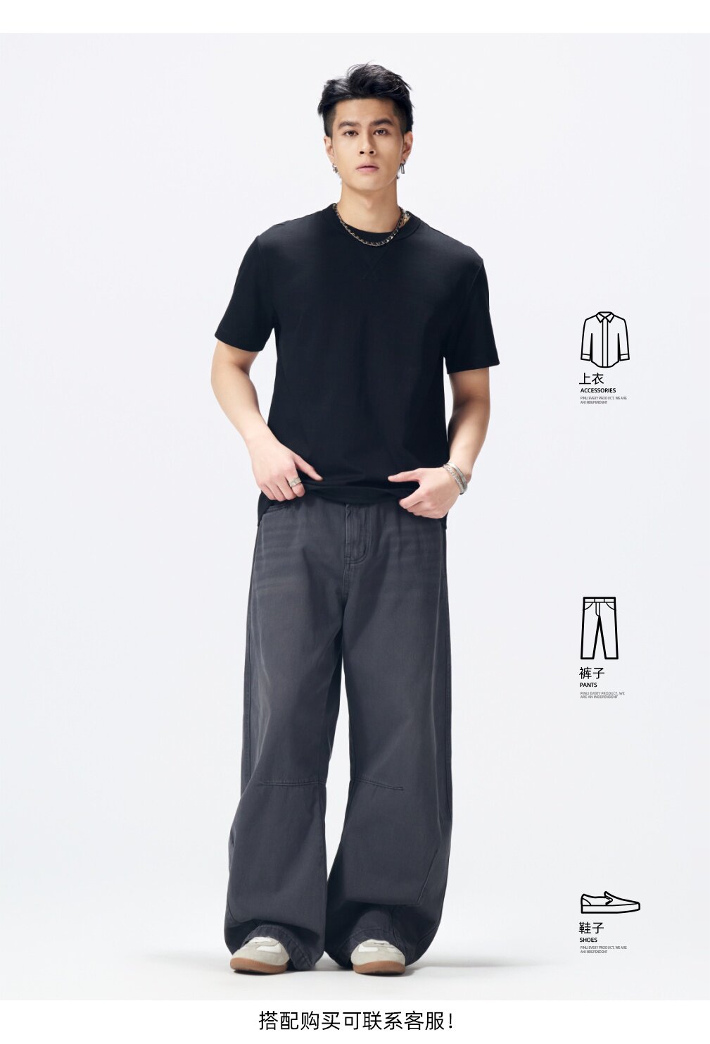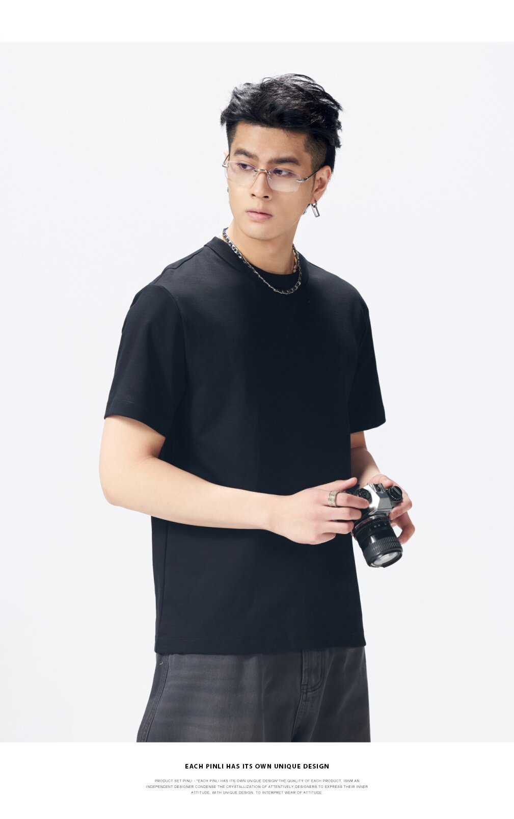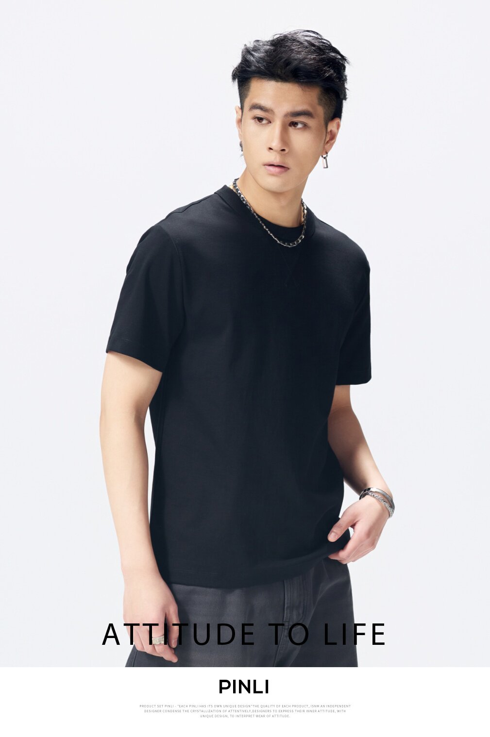 PINLI品立2026夏季新款青年圆领落肩袖纯色百搭短袖T恤上衣潮牌男GD262111039