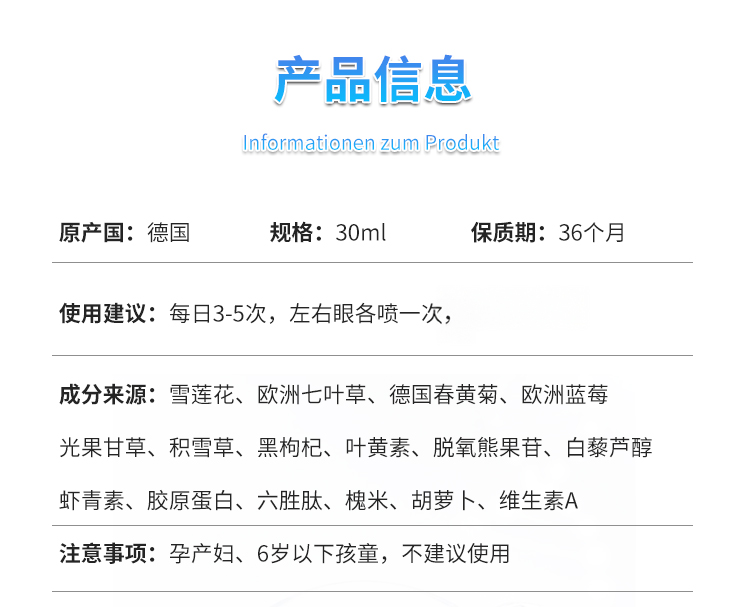 【品名】德国VISON 润眼喷雾 30ml/瓶 【规格】30ml/瓶 【产地】德国 【保质期】3年 【发货包装】独立包装盒 【发货地】河南 【发货快递】圆通,中通,申通,邮政,韵达等随机发 【不发货区域】新疆、西藏、港澳台 【补运费地区】春节期间全国+5元 【发货时效】48-72小时,周末节假日顺延 【特别说明】目前发货为版本2 |