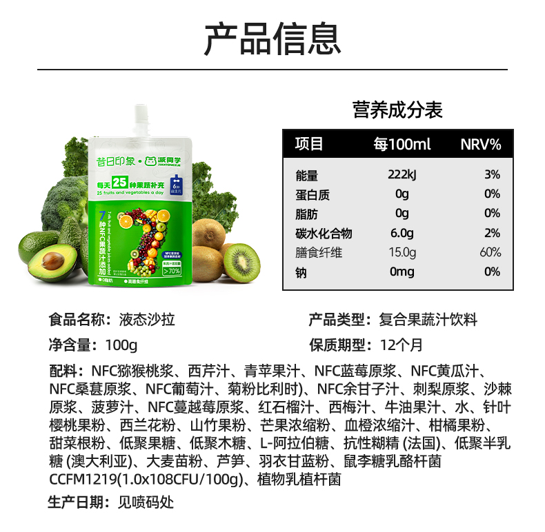 昔日印象液体沙拉25种果蔬蔬菜NFC浓缩果汁代餐膳食纤维轻液断代餐