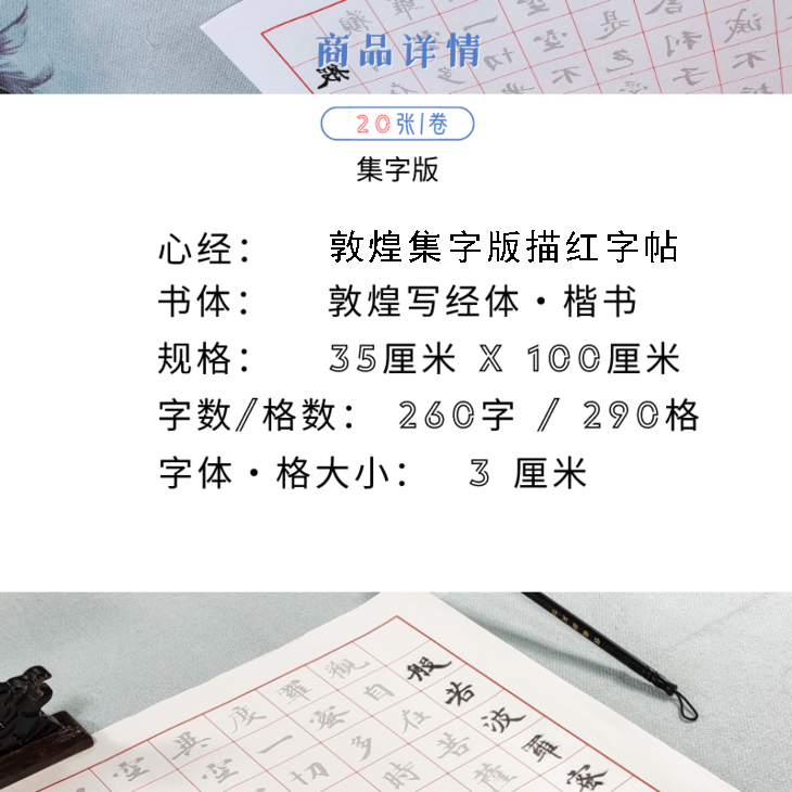 (拍一发二)心经 描红字帖(敦煌写经体/20张装)