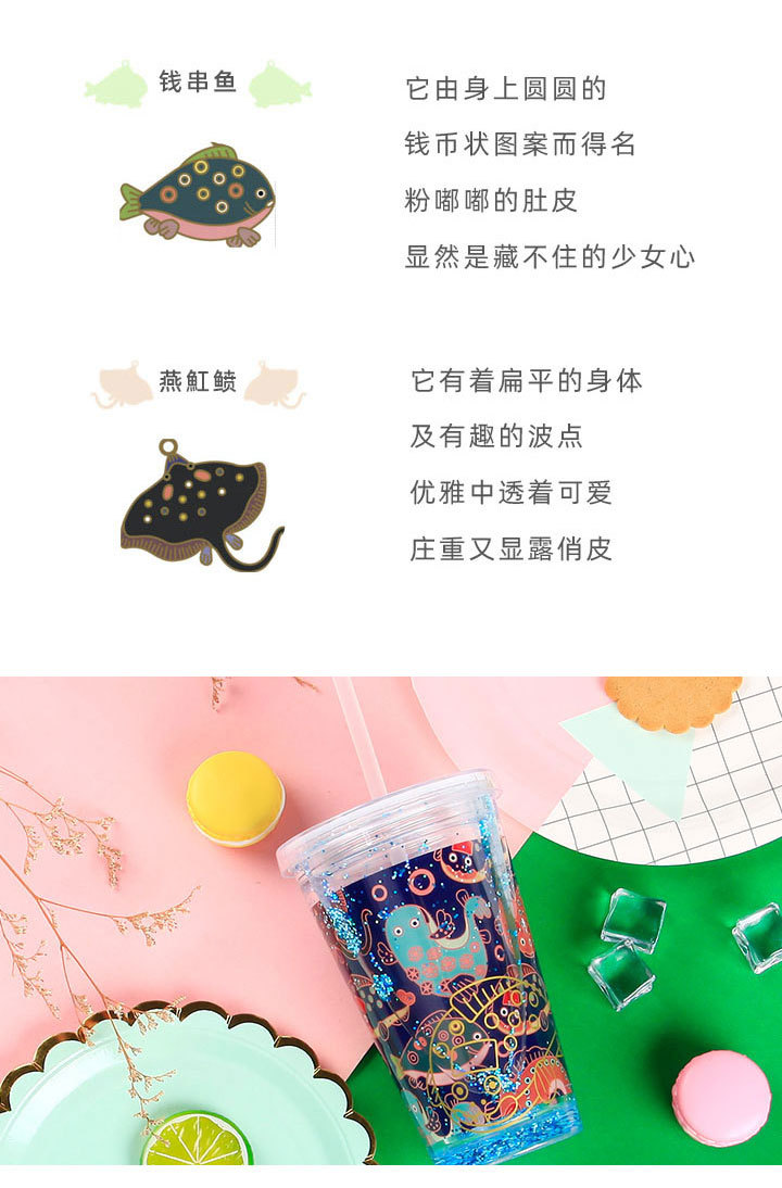 【宫里冷饮杯】 海错图 双层流沙冷饮杯