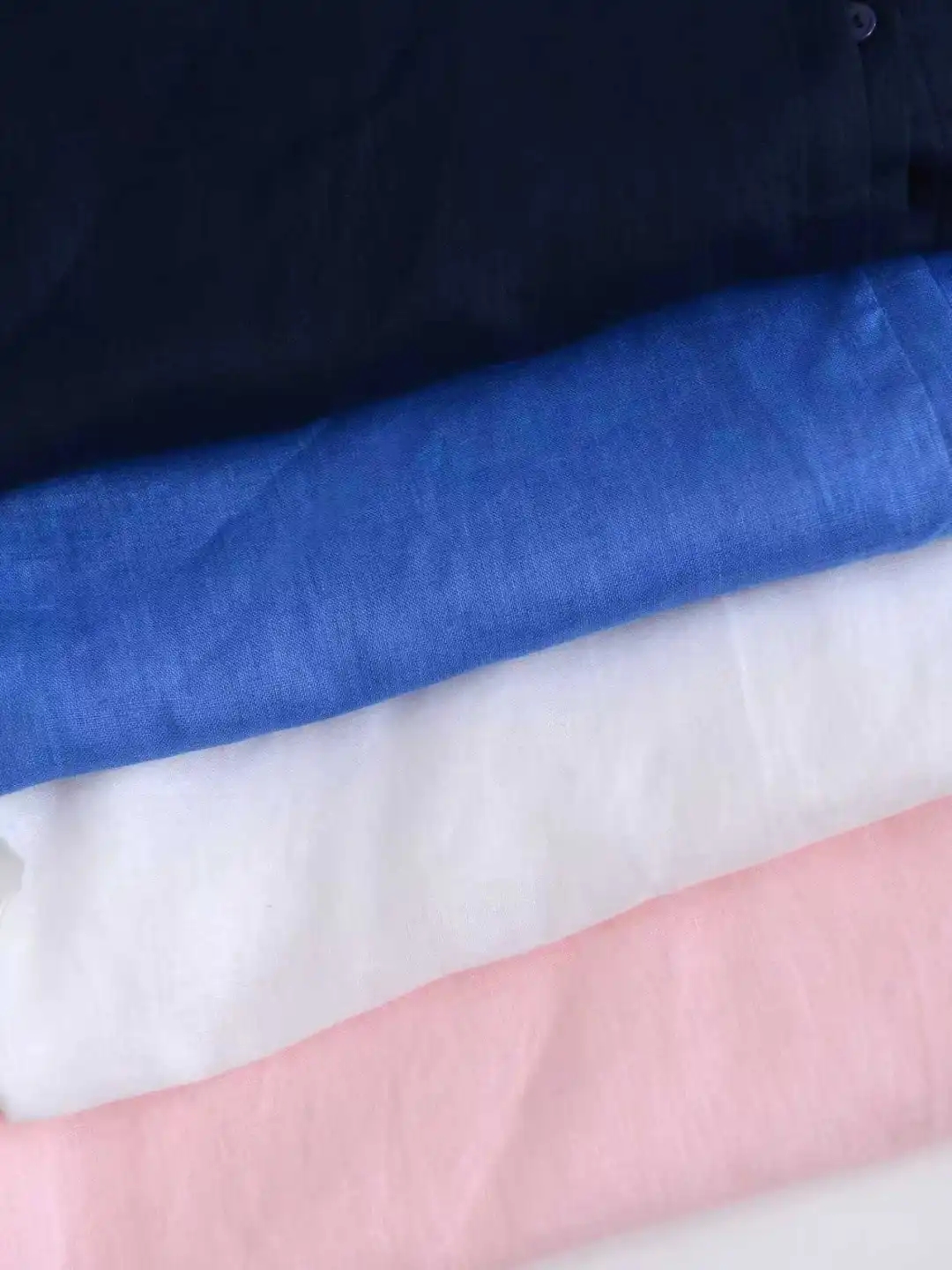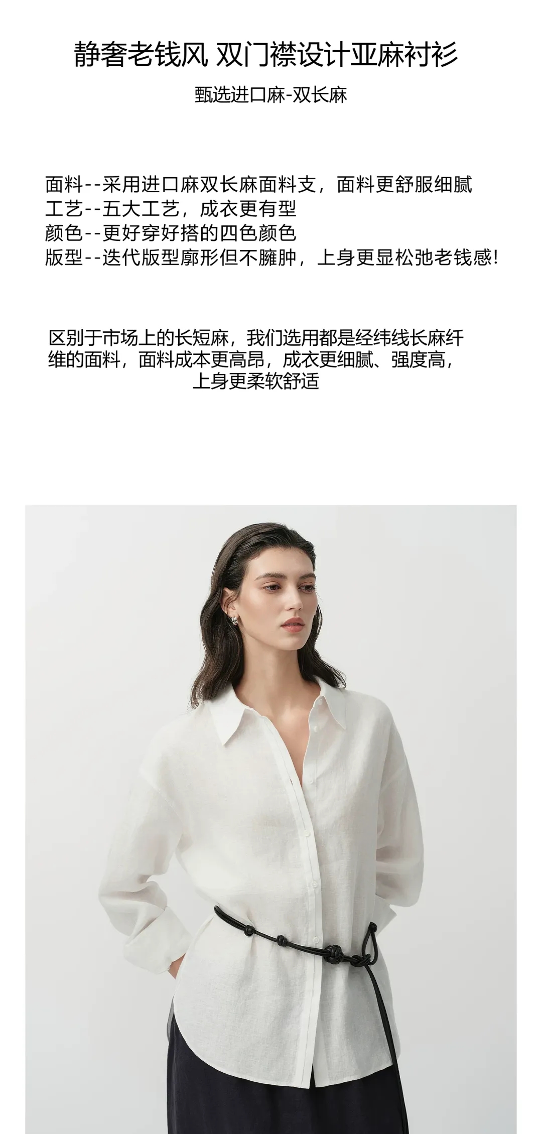 静奢老钱风双门襟设计亚麻衬衫甄选进口麻-双长麻面料--采用进口麻双长麻面料支,面料更舒服细腻工艺--五大工艺,成衣更有型颜色--更好穿好搭的四色颜色版型--迭代版型廓形但不臃肿,上身更显松弛老钱感!区别于市场上的长短麻,我们选用都是经纬线长麻纤维的面料,面料成本更高昂,成衣更细腻、强度高,上身更柔软舒适比丝绸更懂呼吸,比真丝更有风骨精选法国亚麻原料,越是光洁无杂毛绒少经过特殊的处理,纤维长且细腻,着身柔软舒适又不失自然挺括的筋骨感属于真正jing致时装范畴的亚麻料,成本也更高昂手感非常细腻,薄而不透,垂感佳,成衣流畅有型胚底有骨感,轻盈挺括,舒爽有型,多了几分轻松的jing致腔调贴肤感受“降三度”,透气性好,夏日着身舒适度上乘亚麻,大地的馈赠,时光的织物它自带风的形状、阳光的温度与植物生命的记忆本系列不止于衣衫更是一种亲近自然的生活提案:以简约设计释放亚麻zui本真的魅力