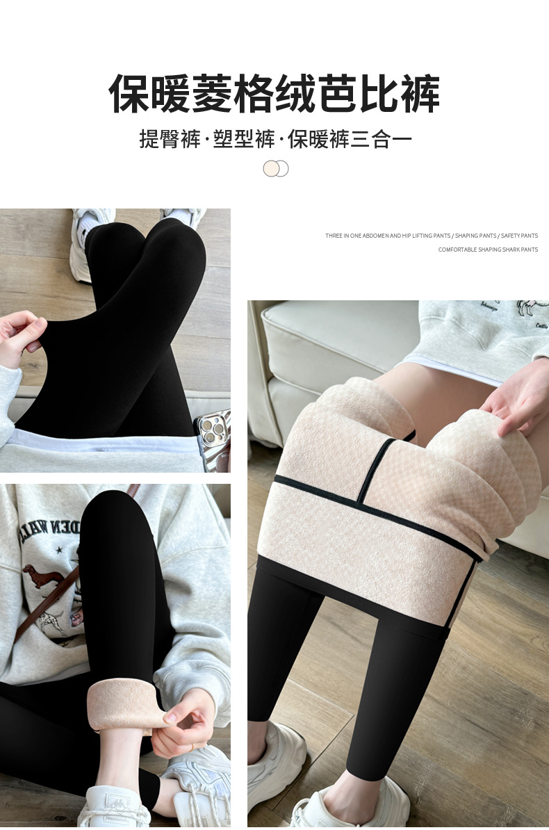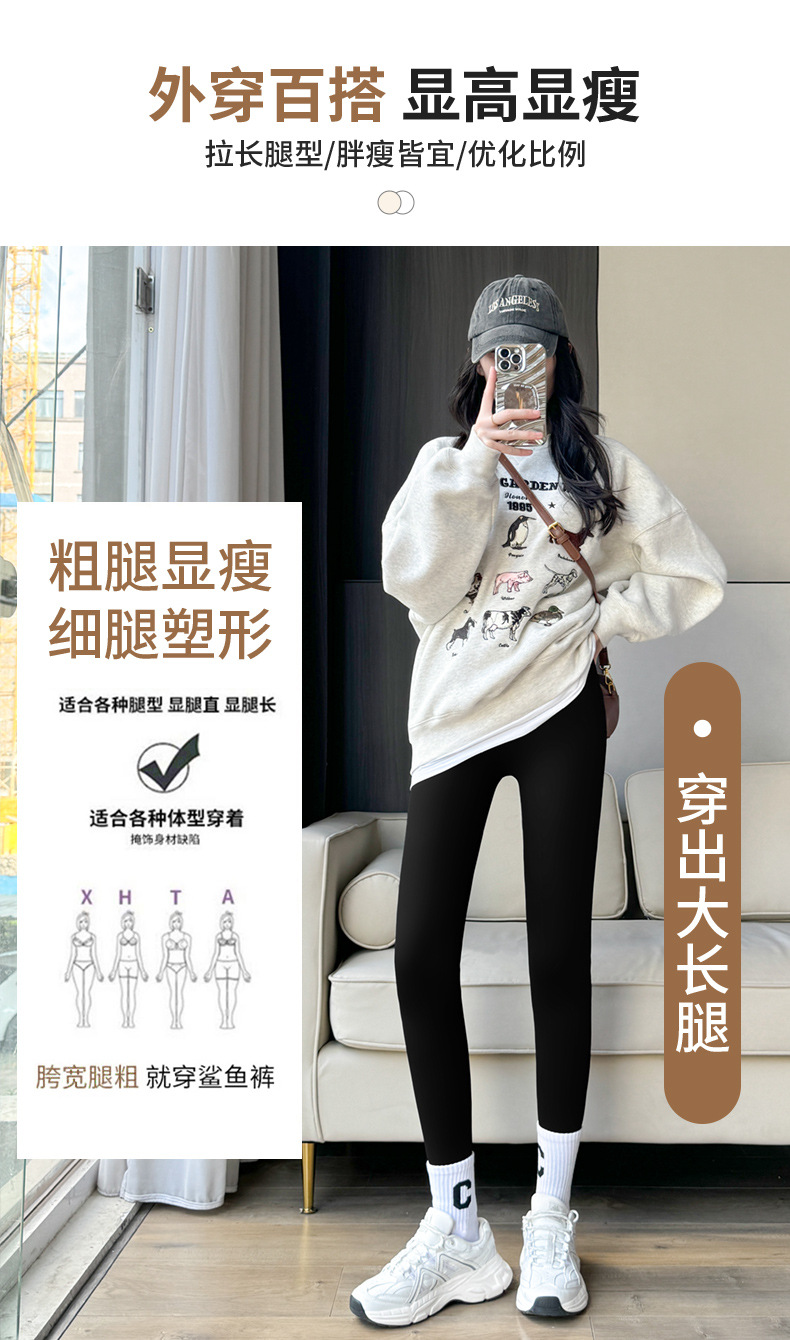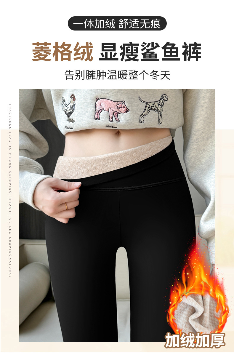 【加绒加厚❗️收腹提臀鲨鱼裤】无痕裤脚 防风抗寒 裸感贴合 防风保暖 女秋冬裤大码180斤可穿紧身菱格绒小脚打底裤
