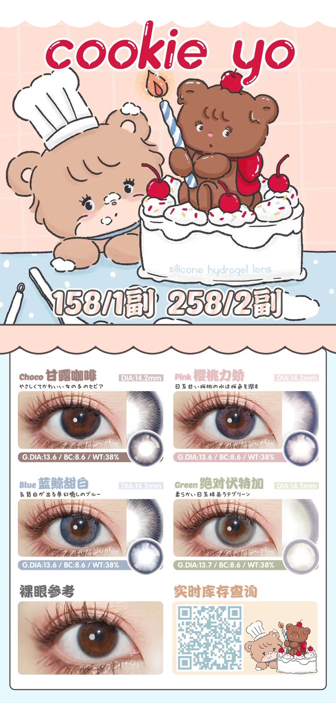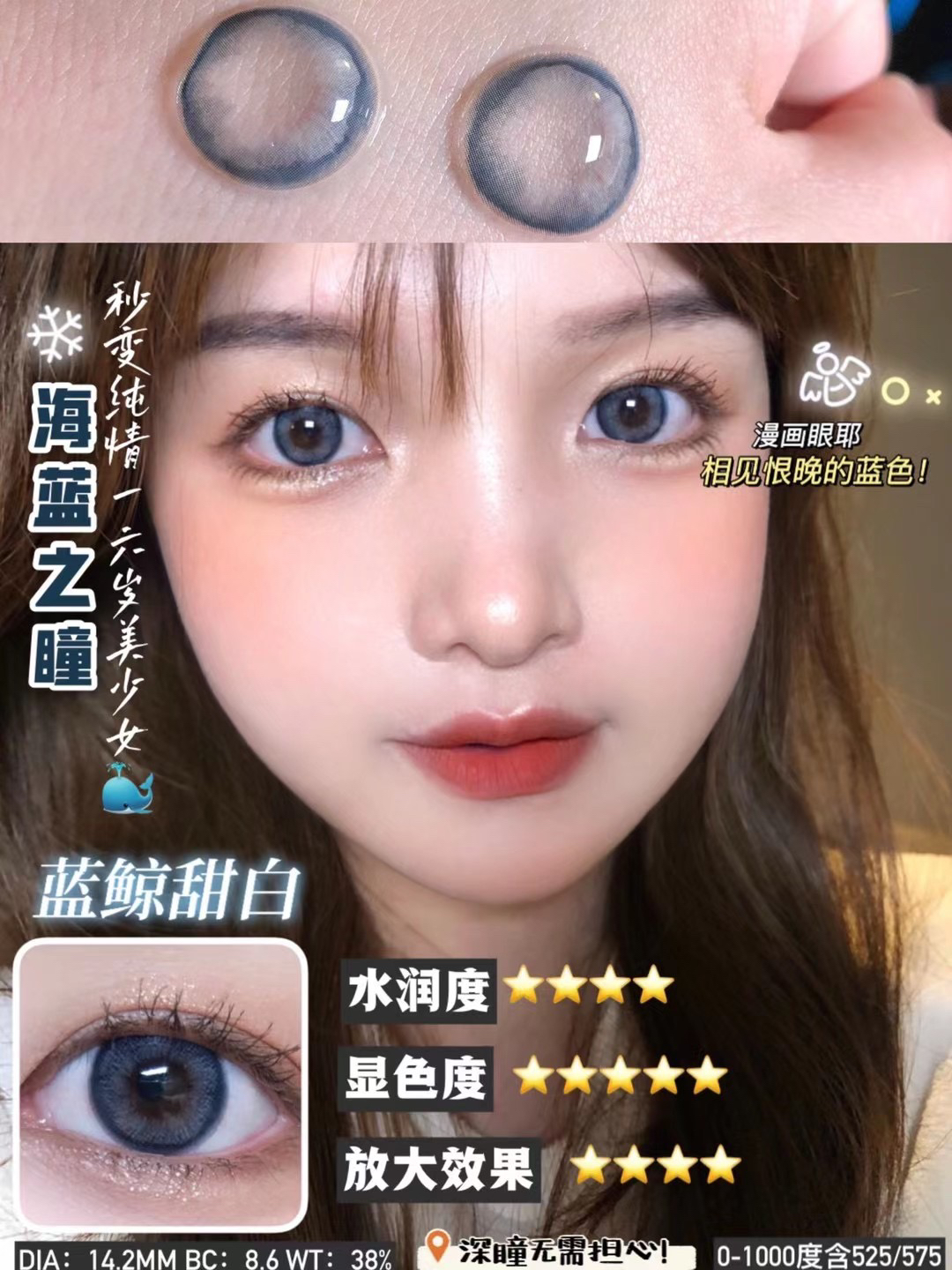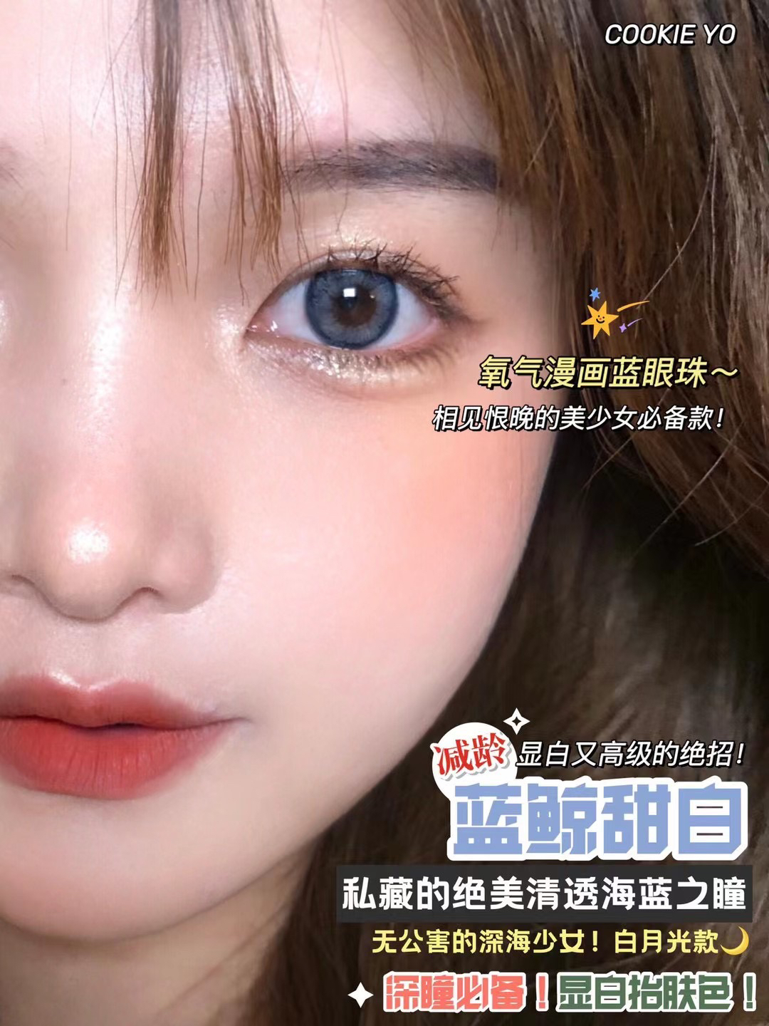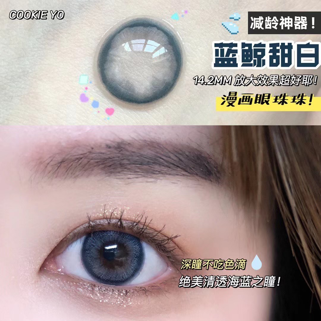 cookie yo 蓝鲸甜白 2023跟蓝色杠上了 显白显气质韩国icodi医用mpc硅水凝胶材质/14.2/年抛