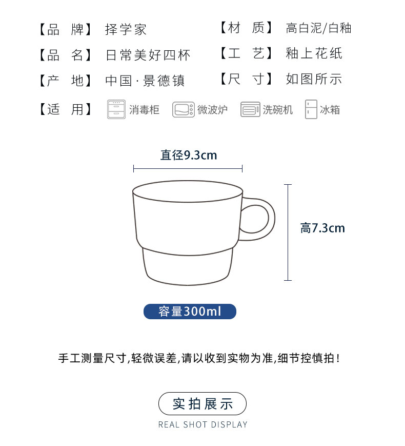 日常美好高足系列马克杯咖啡杯 容量300ml 景德镇高白泥 中式随手礼 (景德镇发货)