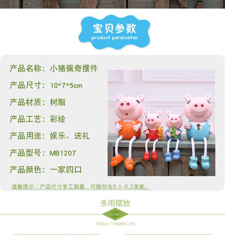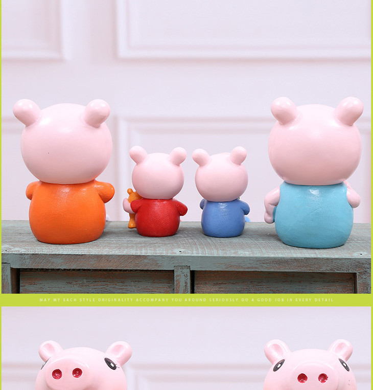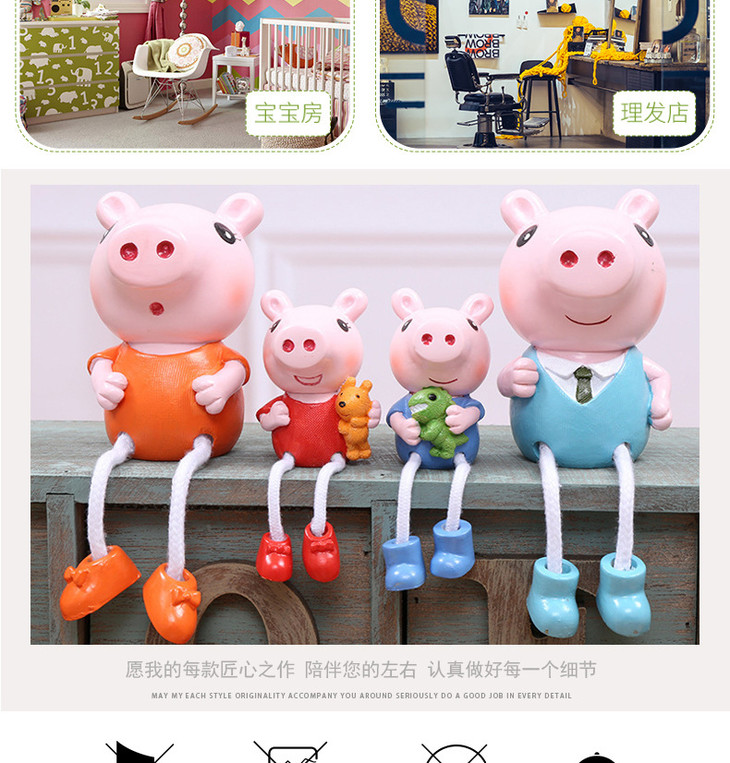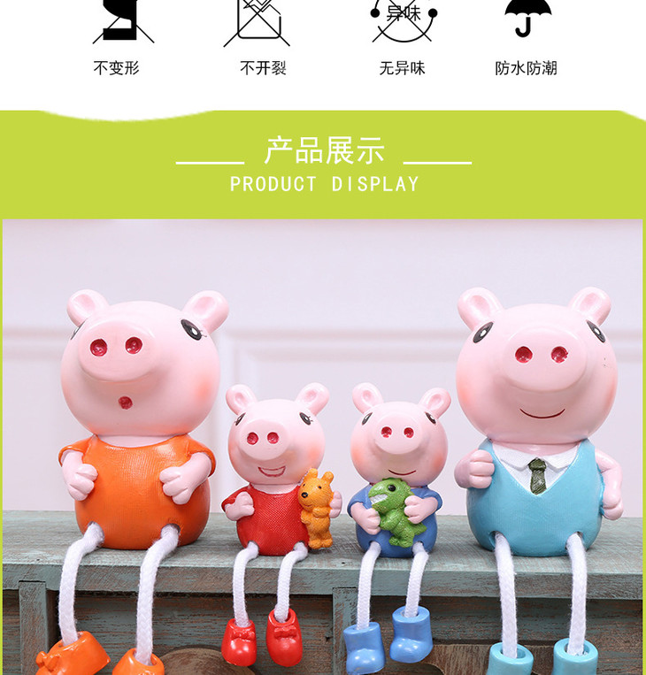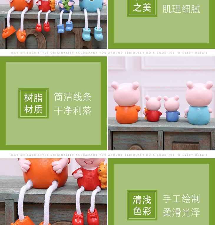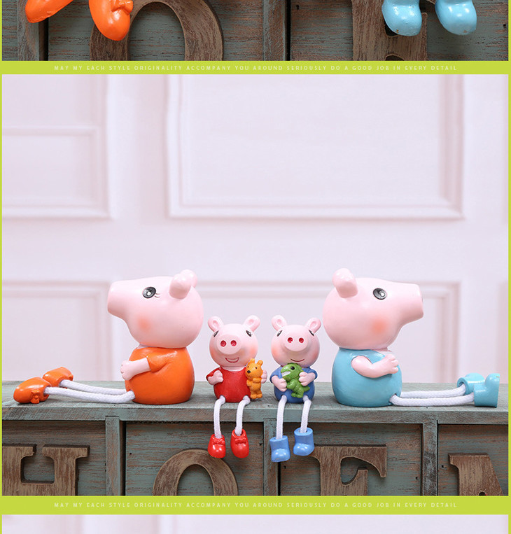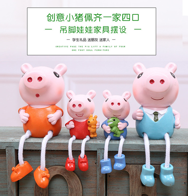 【装饰品】。创意小猪佩奇一家四口树脂吊脚娃娃工艺品礼品家居装饰品摆件礼品