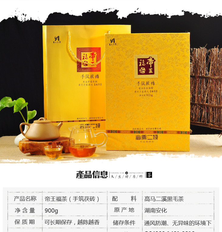 黑茶 高马二溪 2017年帝王福茶 手筑茯砖 皇家茶园原料 900g