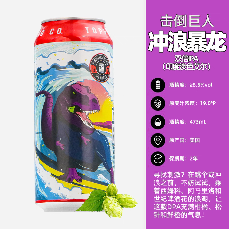 【冷库储存】美国击倒巨人冲浪暴龙浑浊IPA啤酒 8.5%vol 473ml