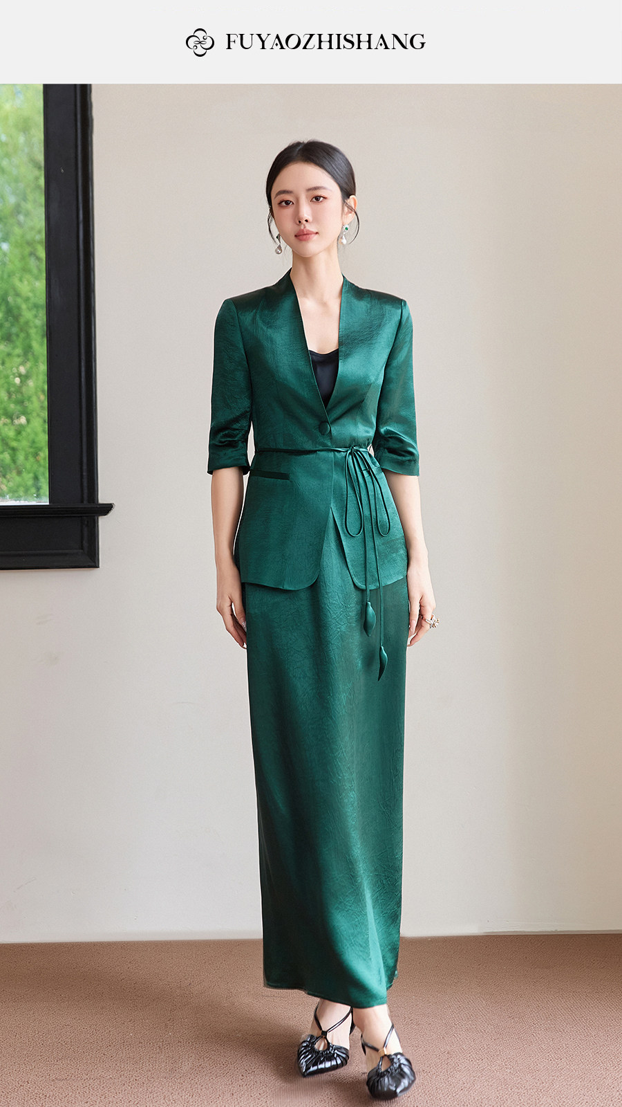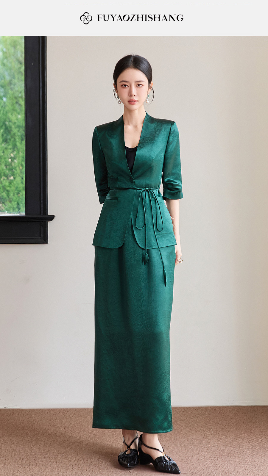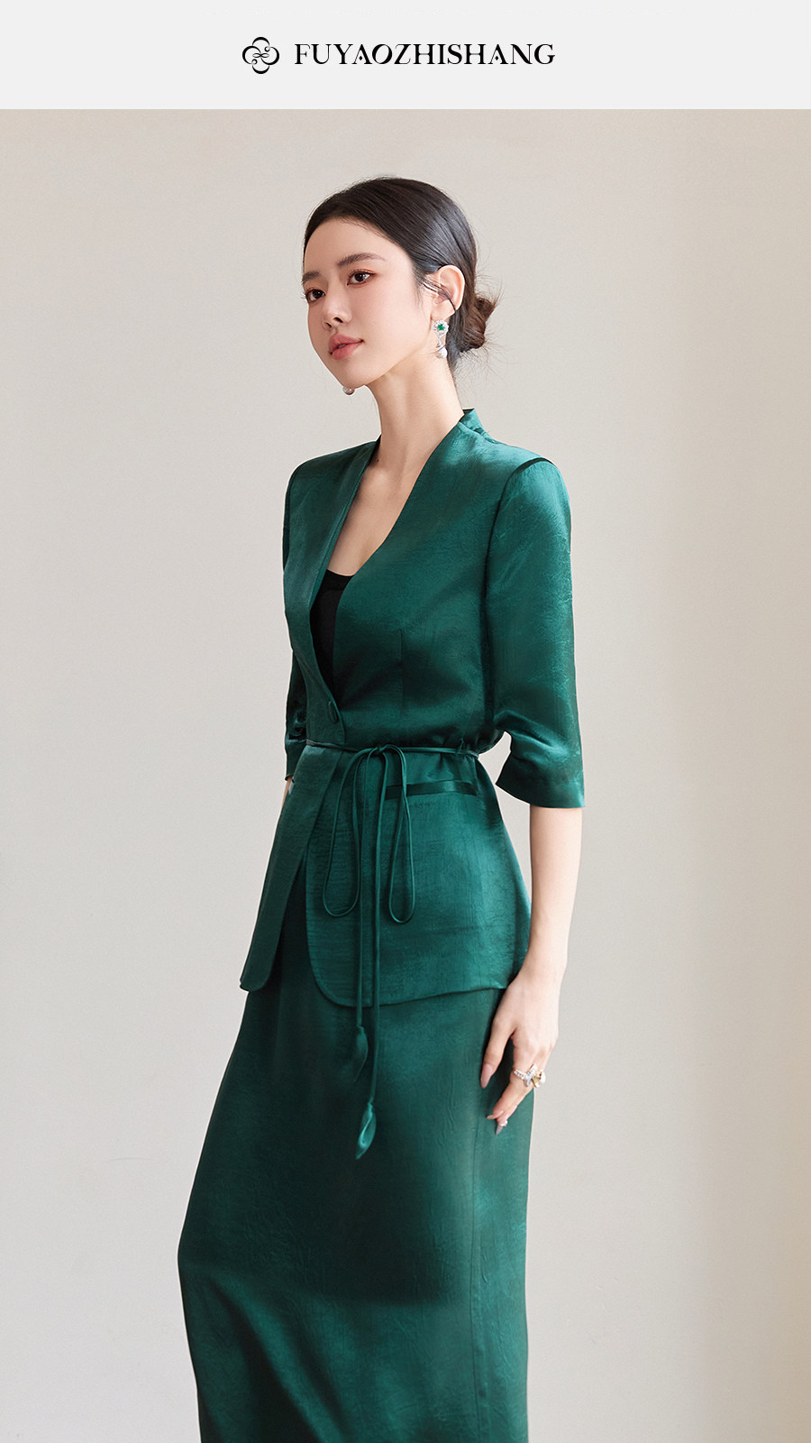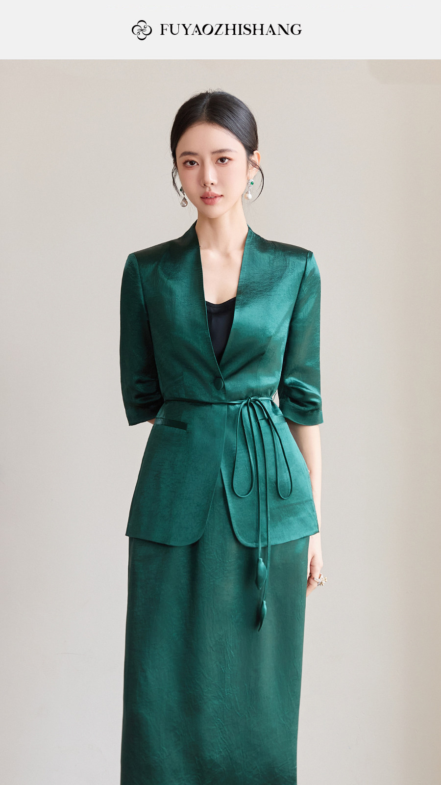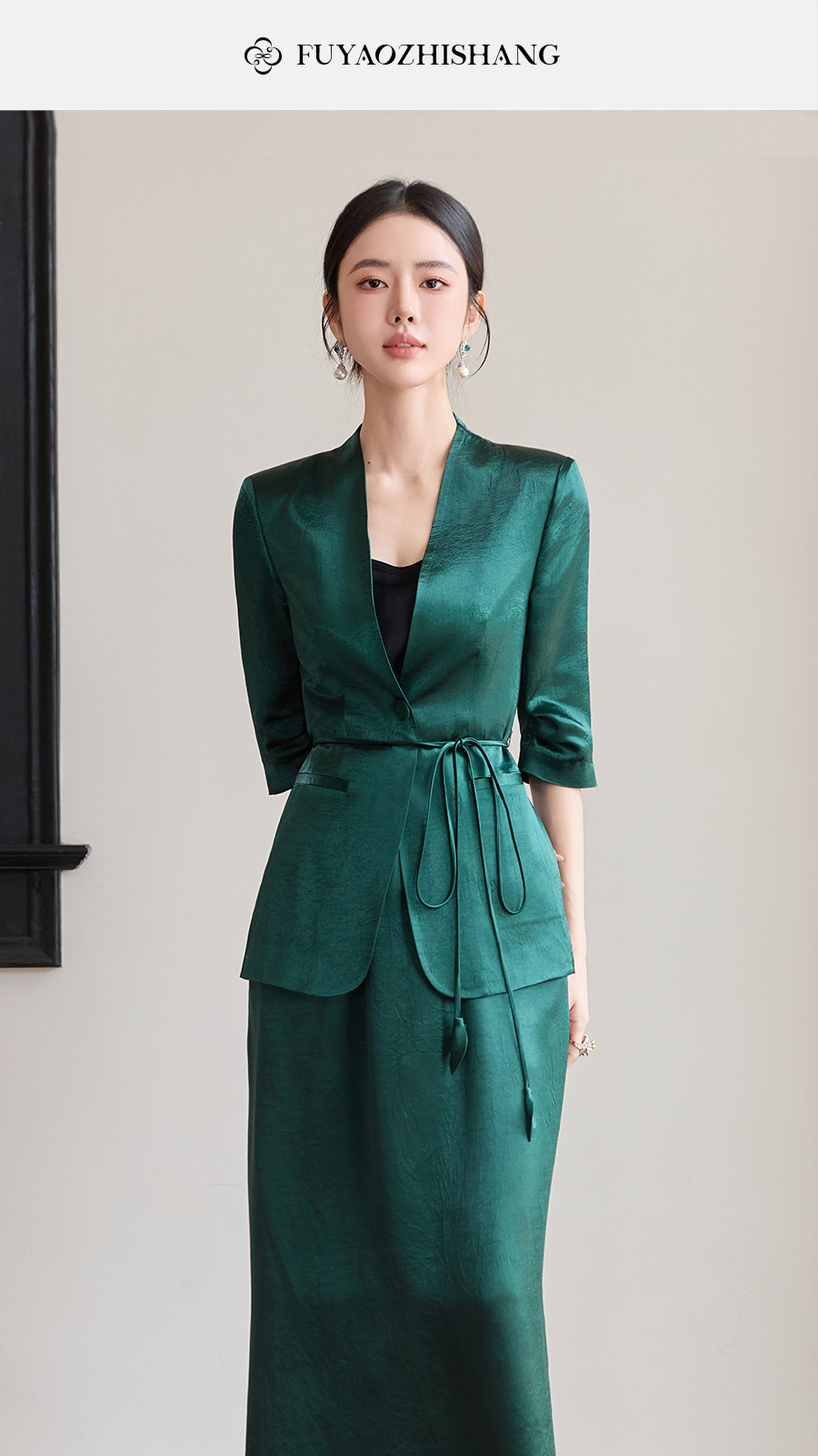 FUYAO扶摇直上 智序美学风 醋酸时尚套装女夏季七分袖西装两件套