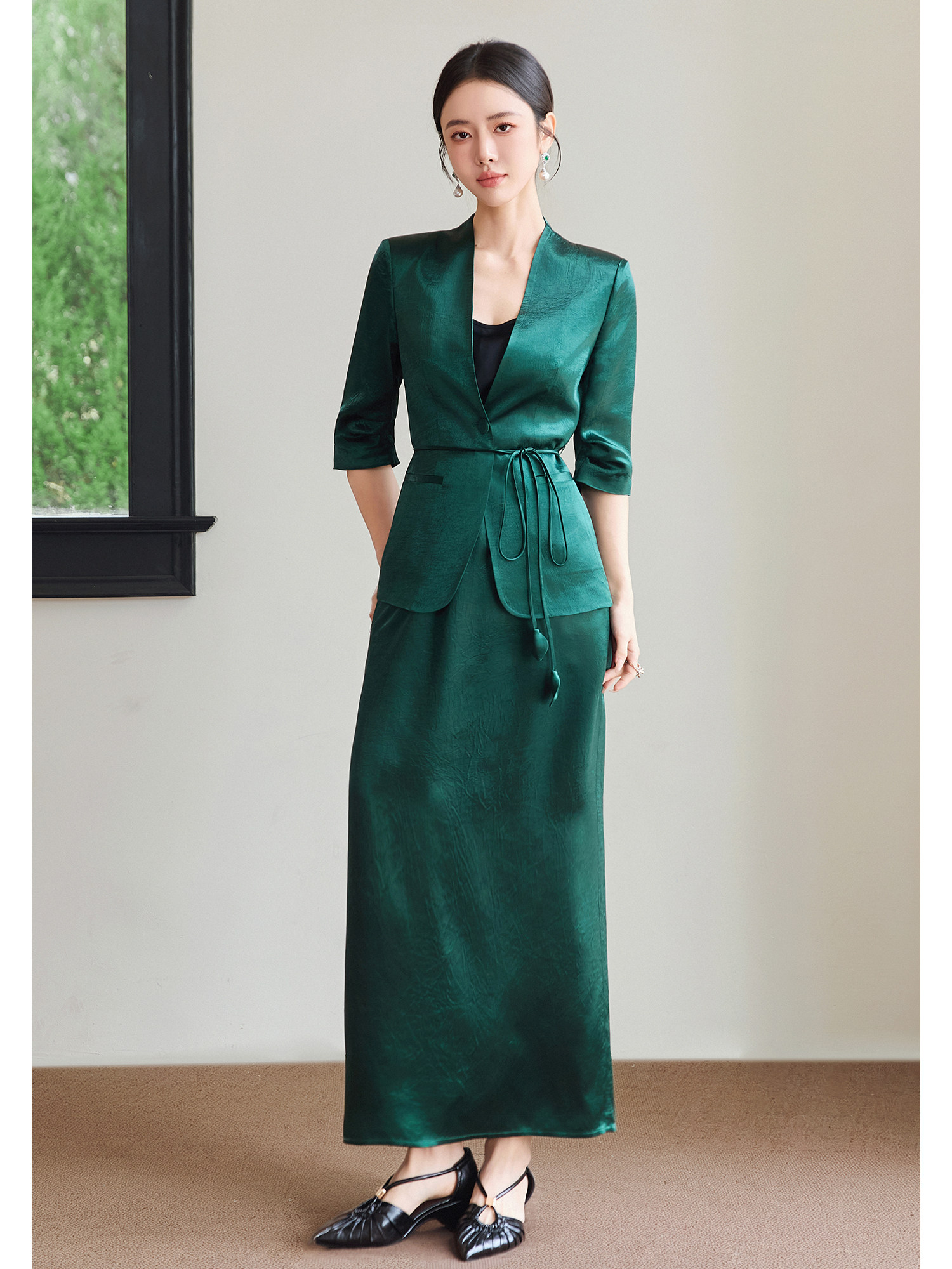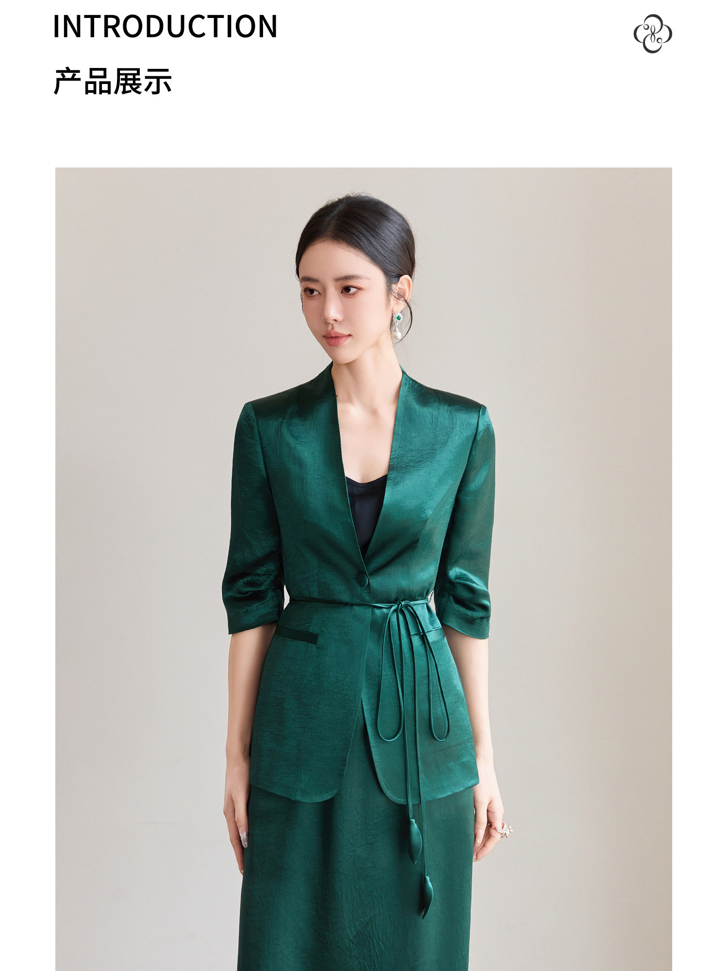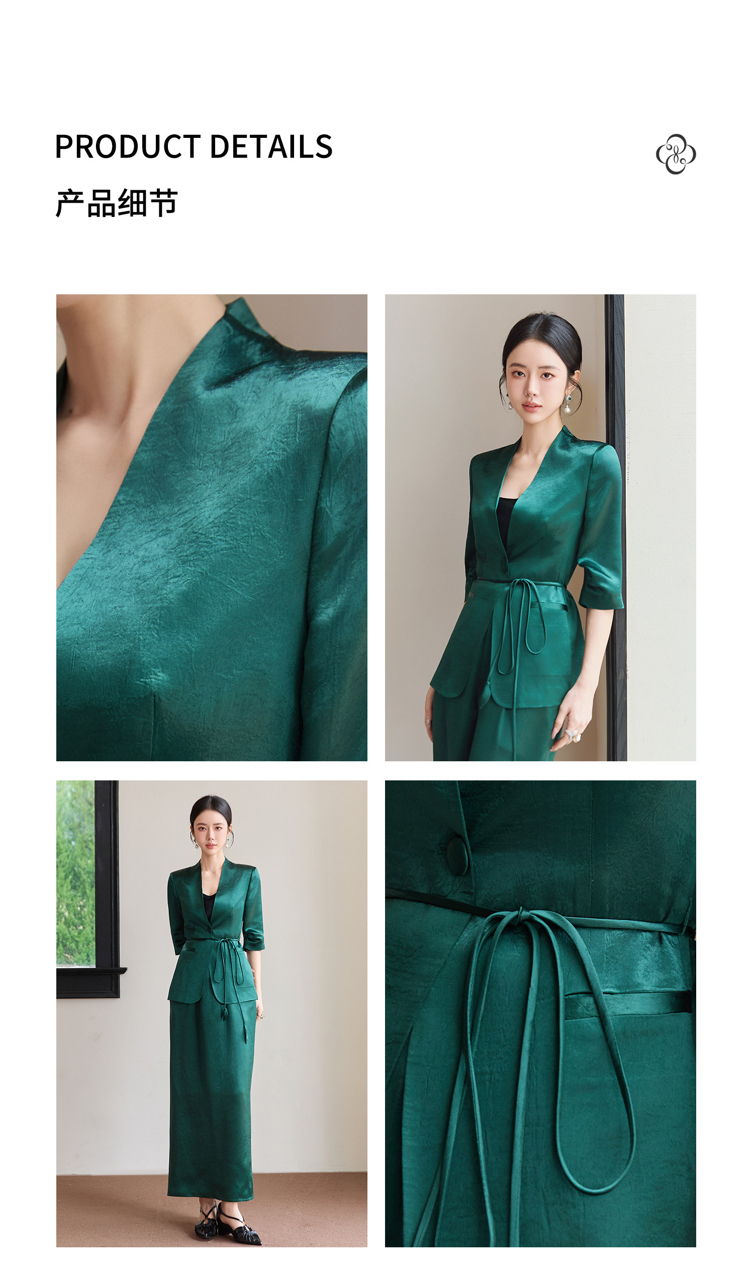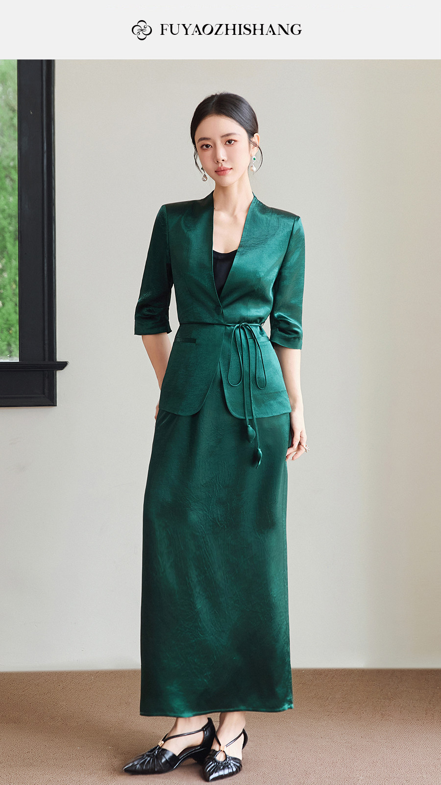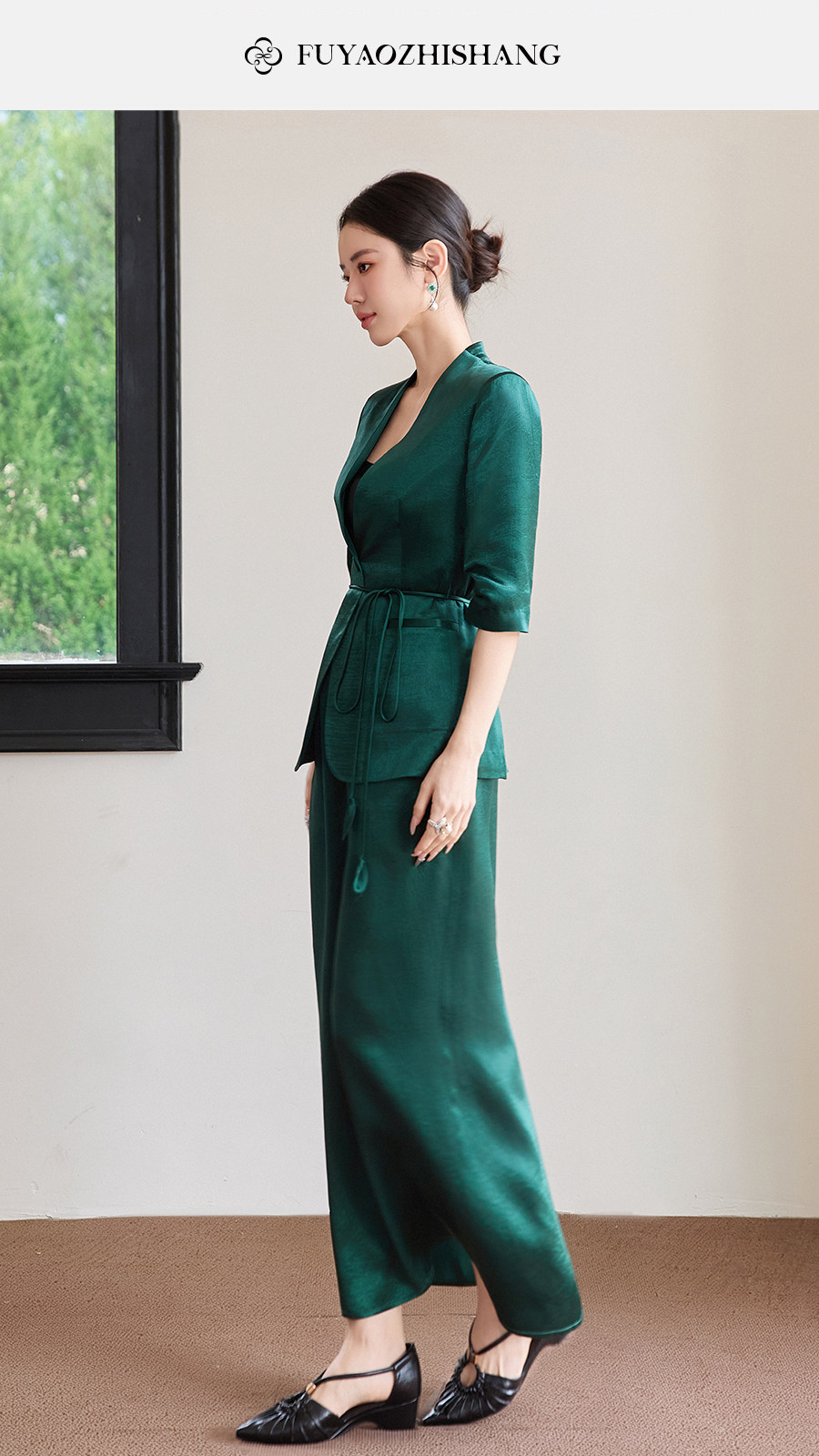 FUYAO扶摇直上 智序美学风 醋酸时尚套装女夏季七分袖西装两件套