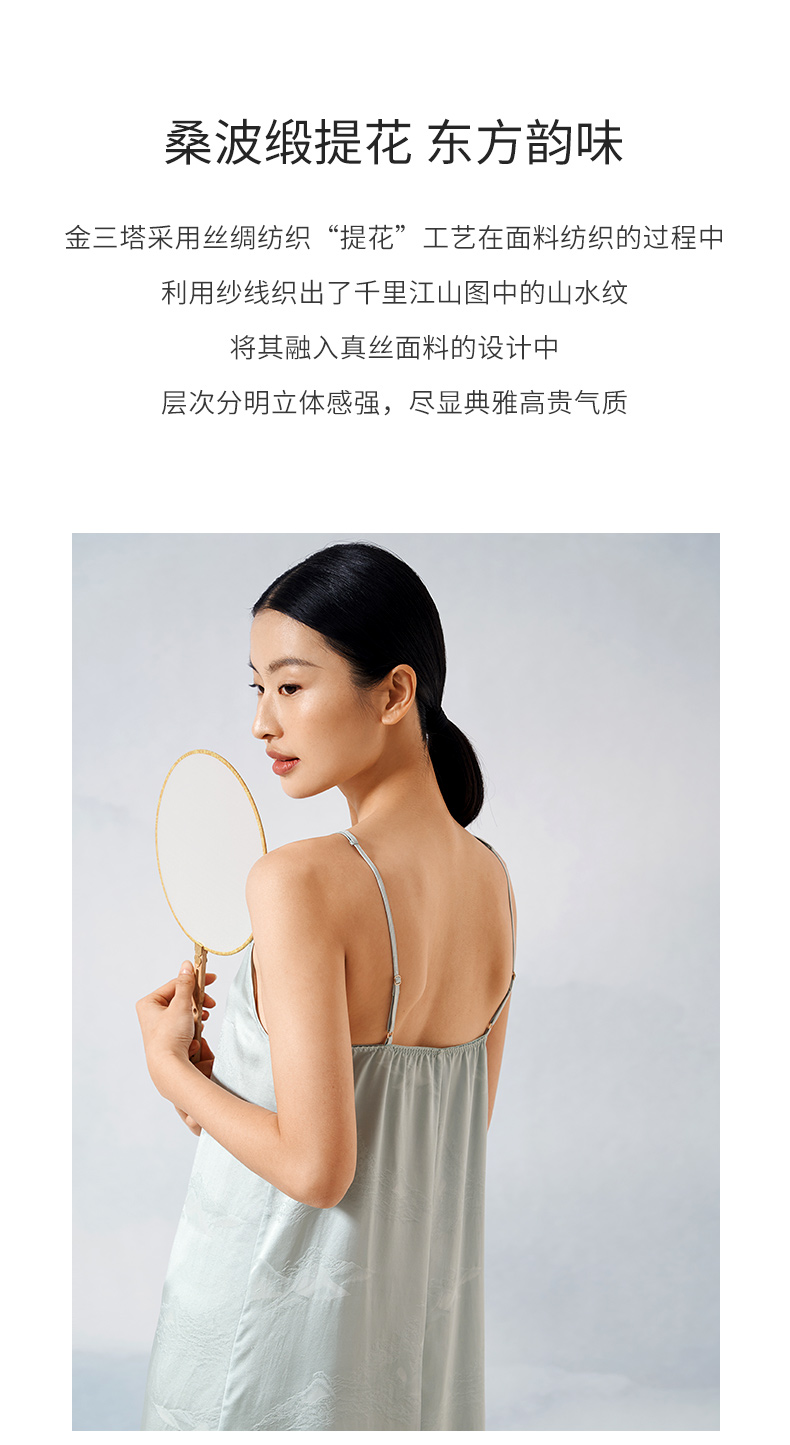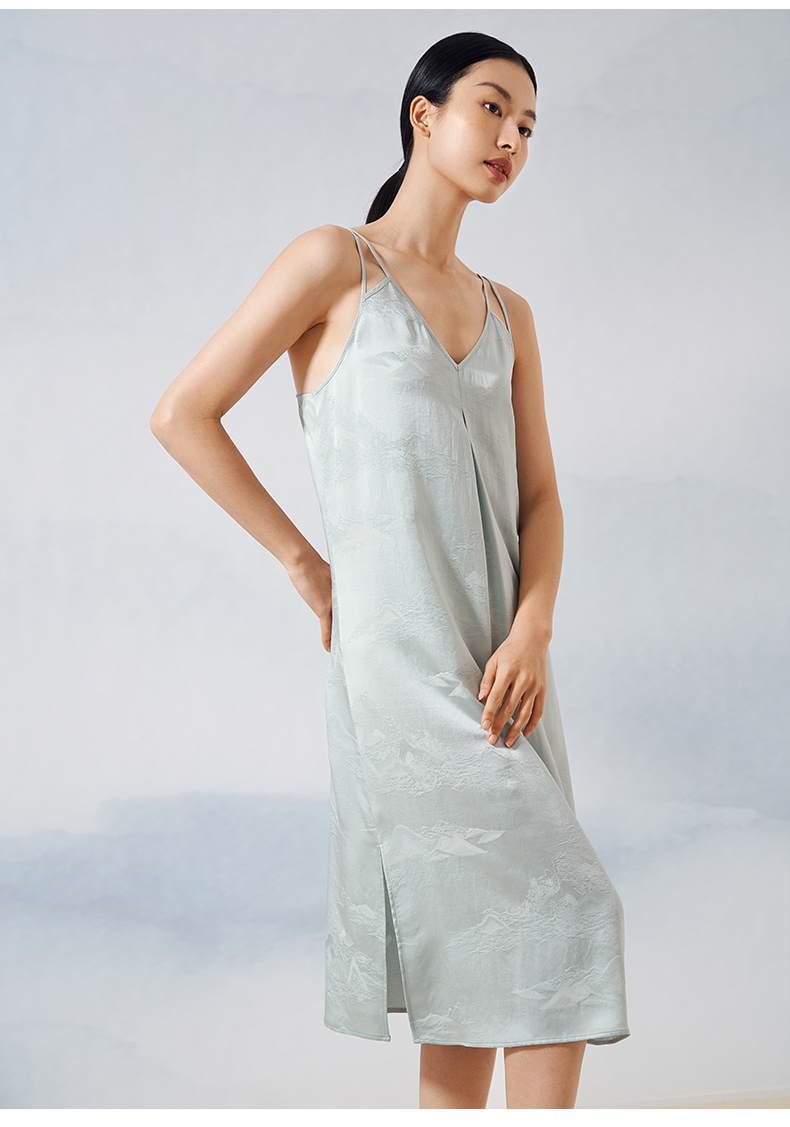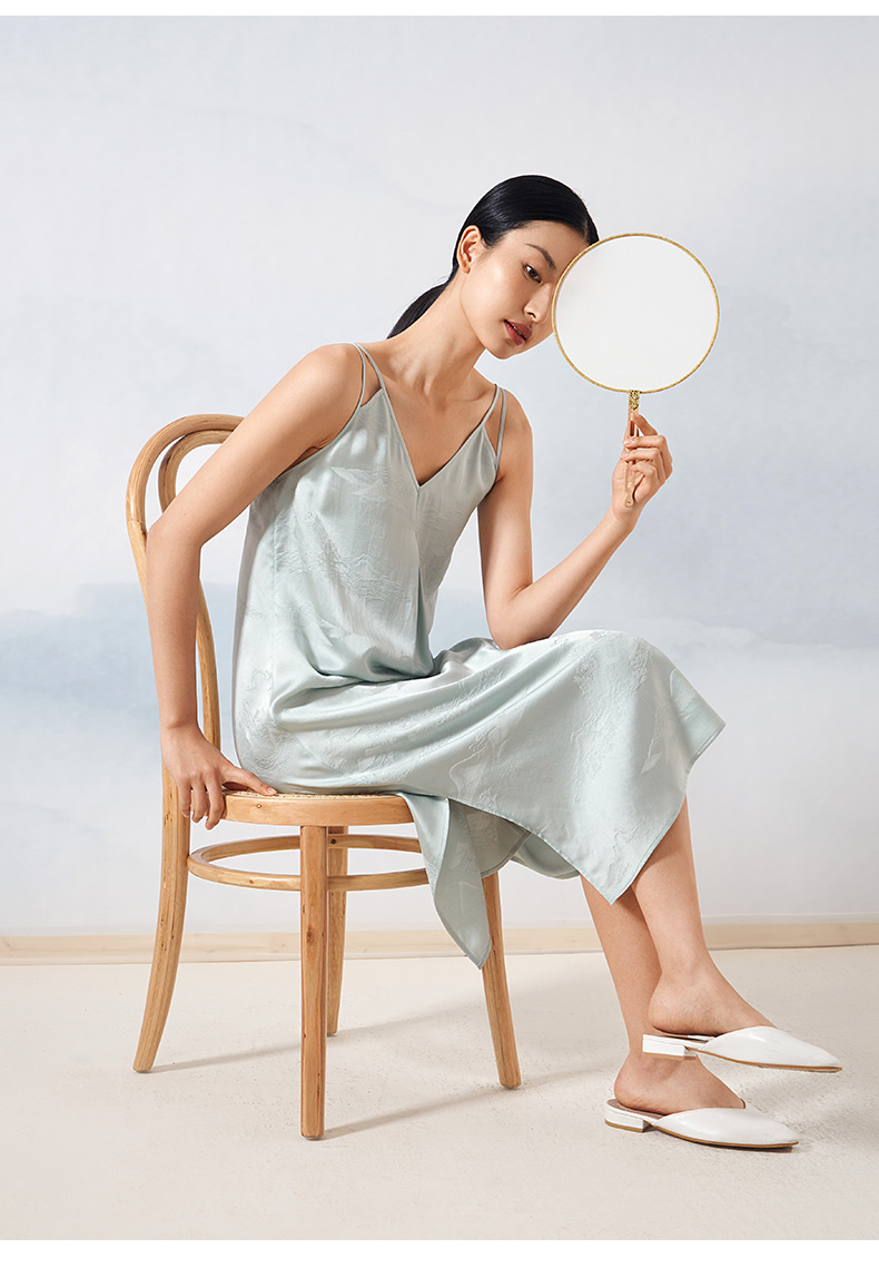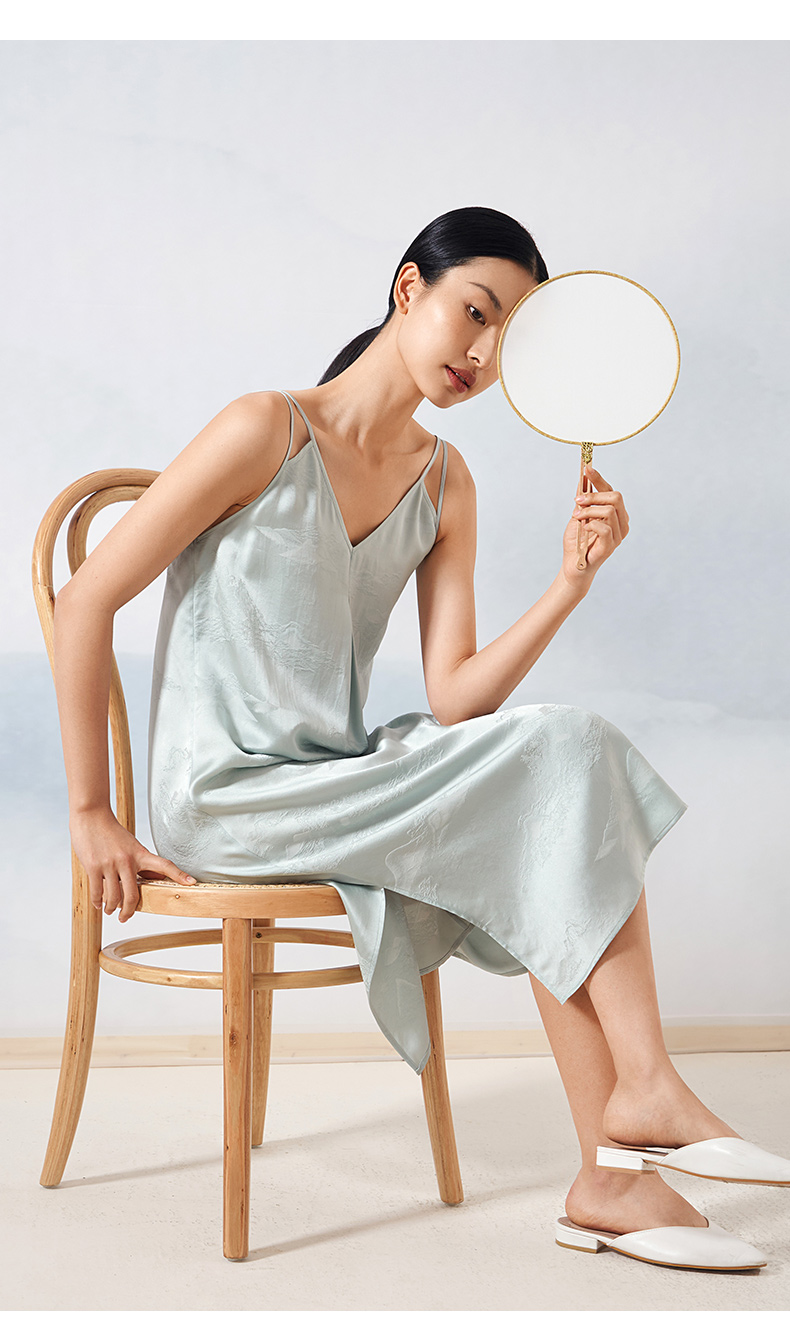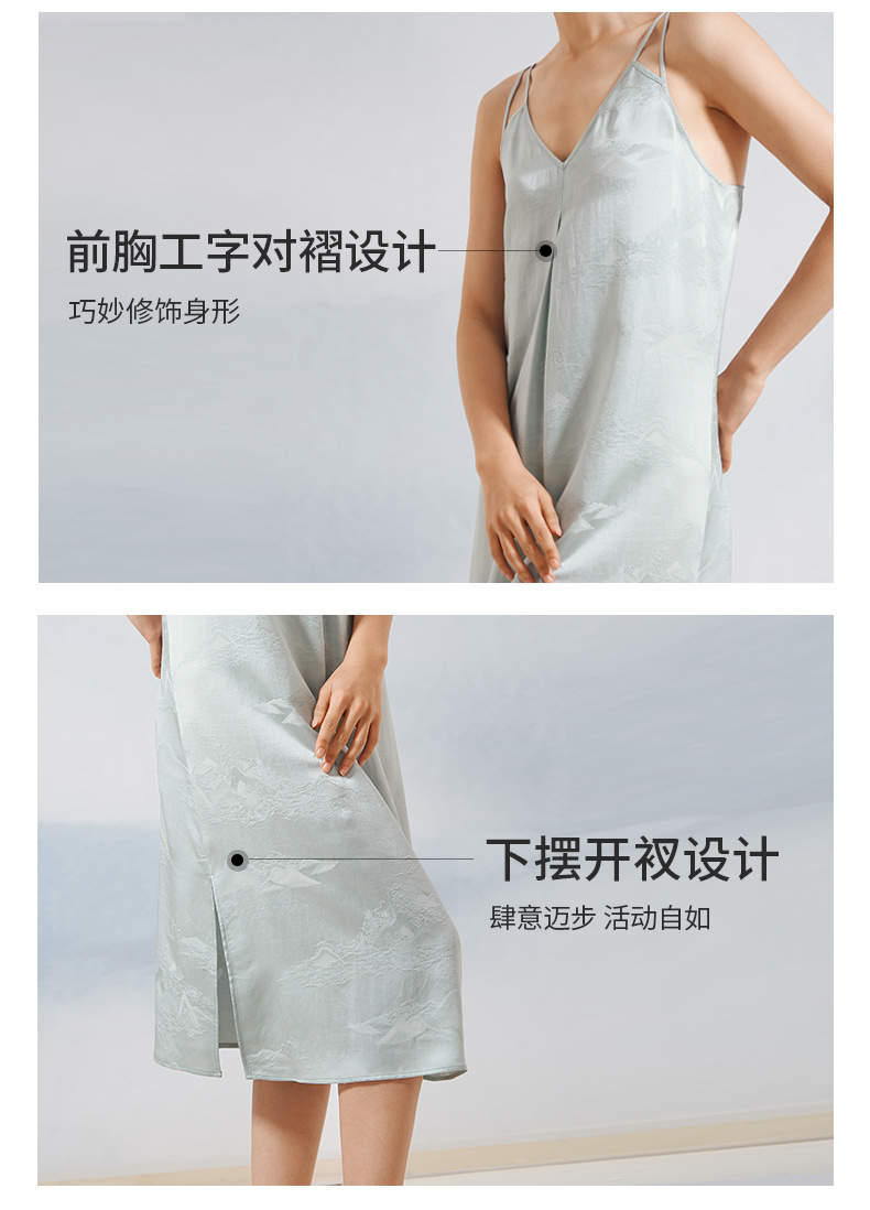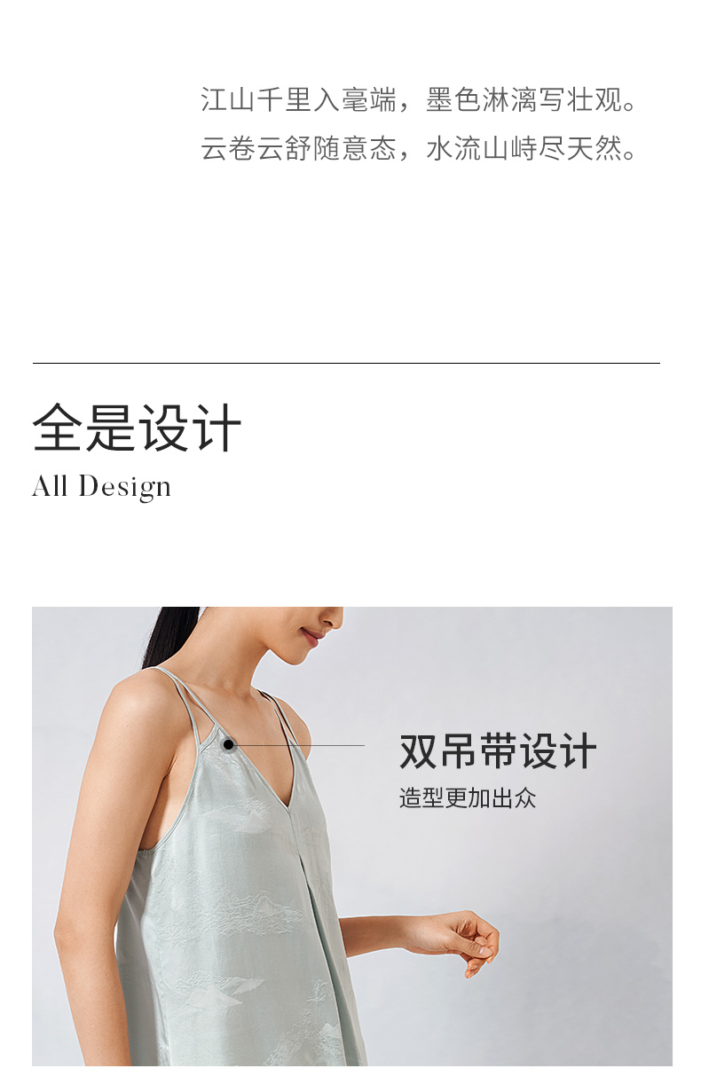 【水墨韵味】金三塔重磅真丝睡裙女新中式100%桑蚕丝宽松吊带家居服 YSFEB303