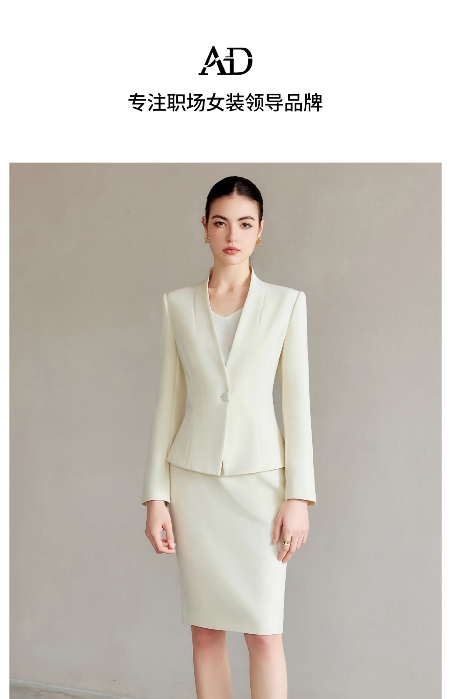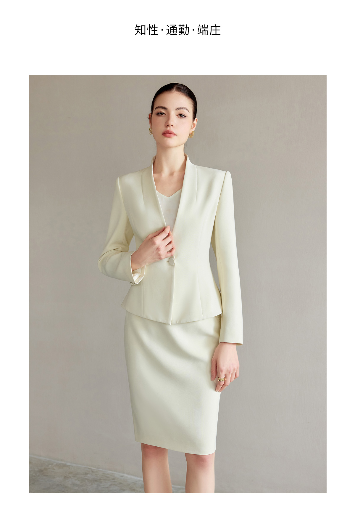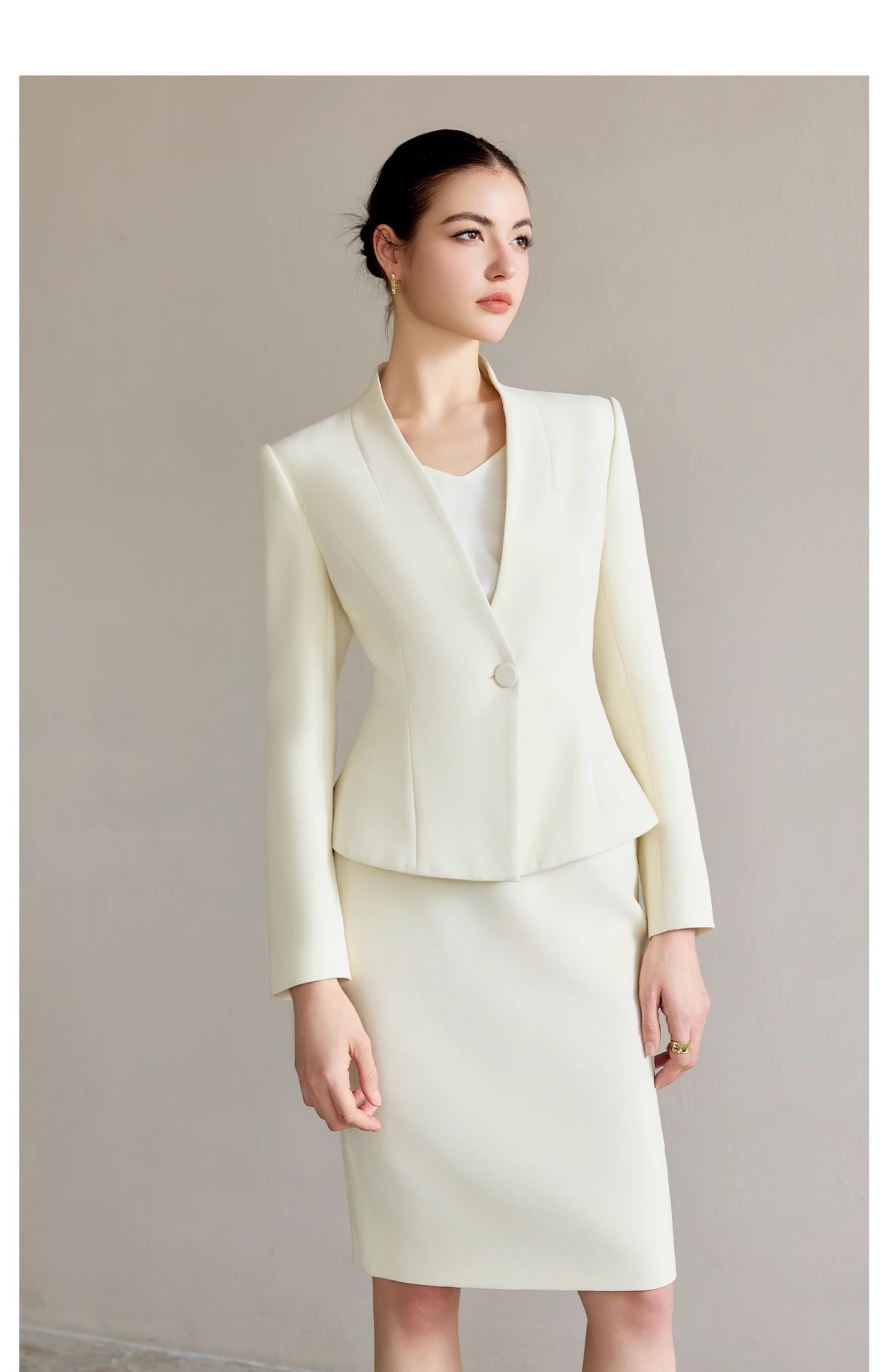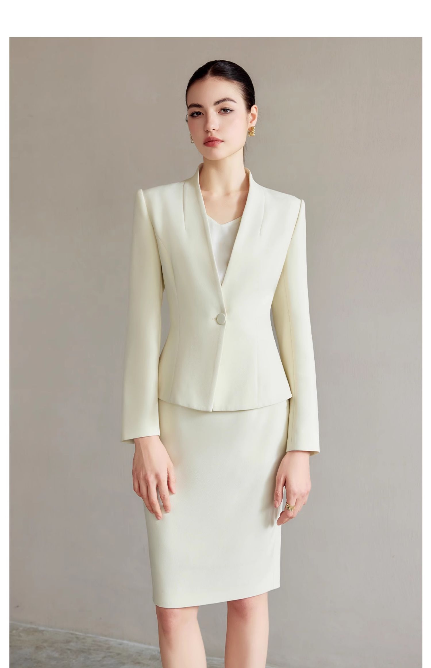 AD浅色职业西装套装女正装高级感无领西服外套时尚通勤职业工作服