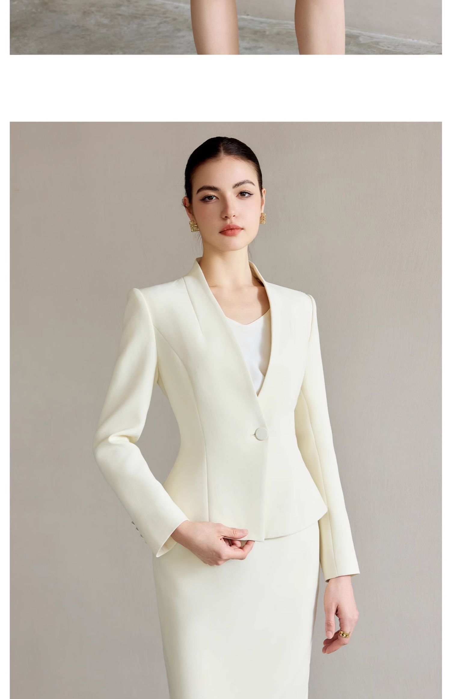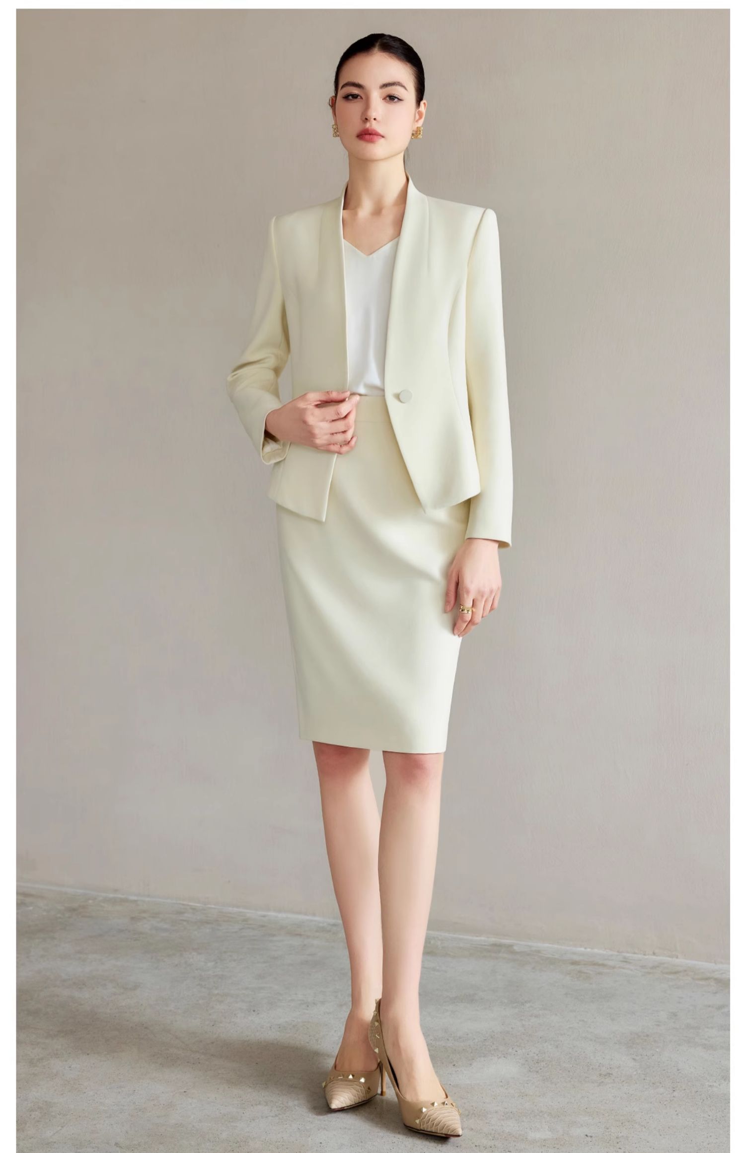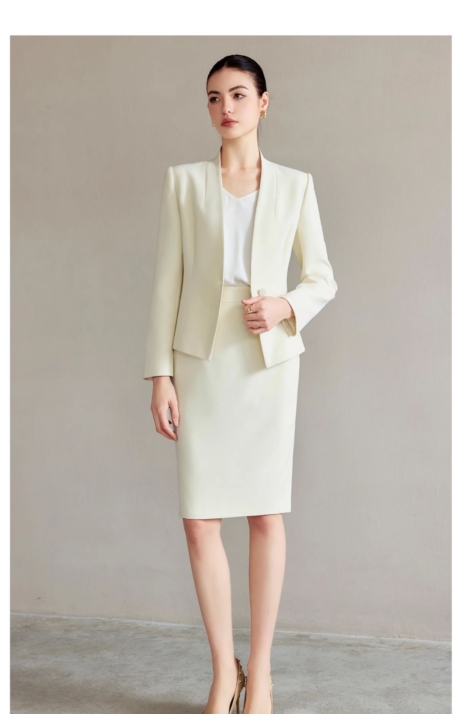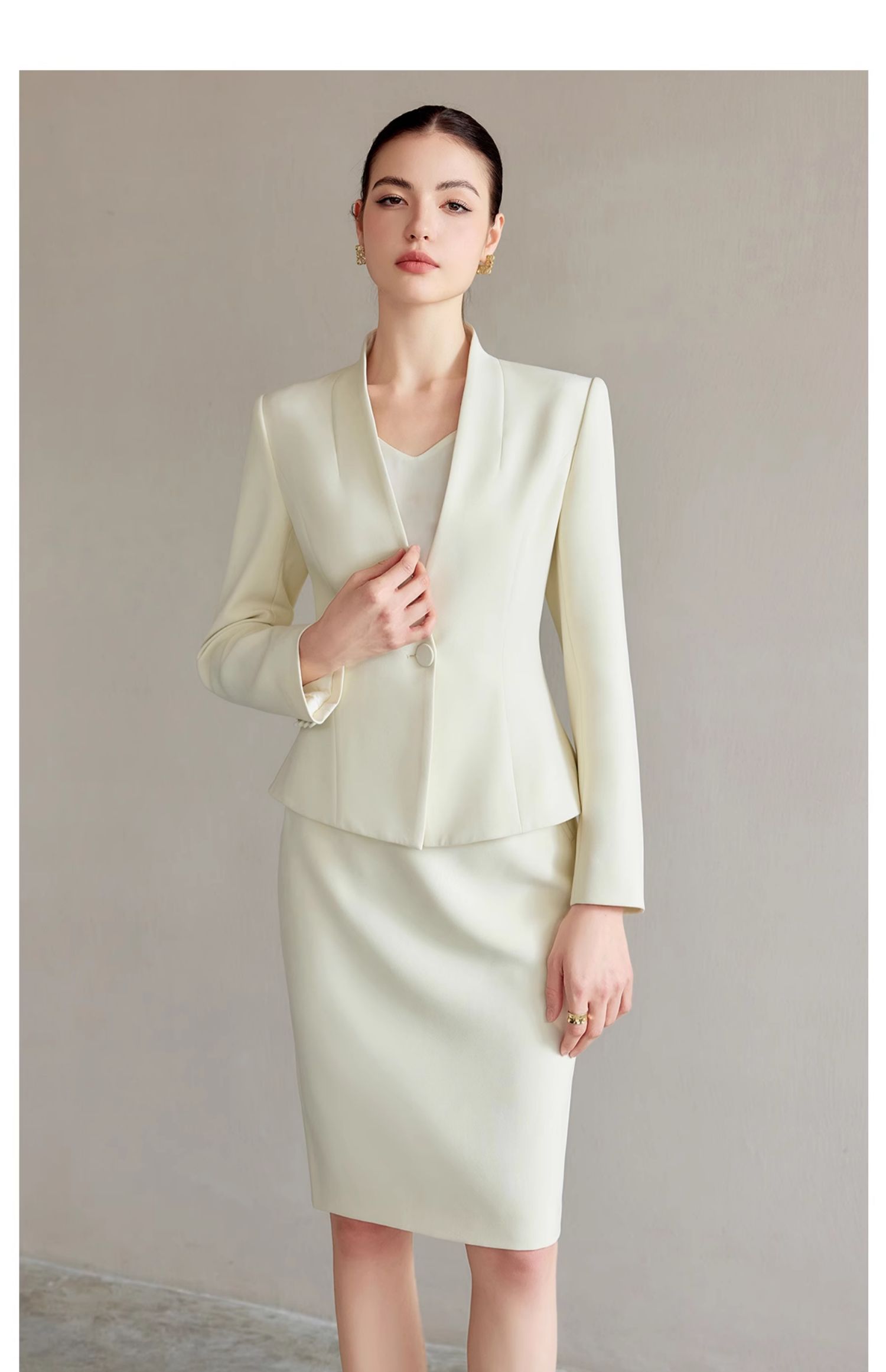 AD浅色职业西装套装女正装高级感无领西服外套时尚通勤职业工作服