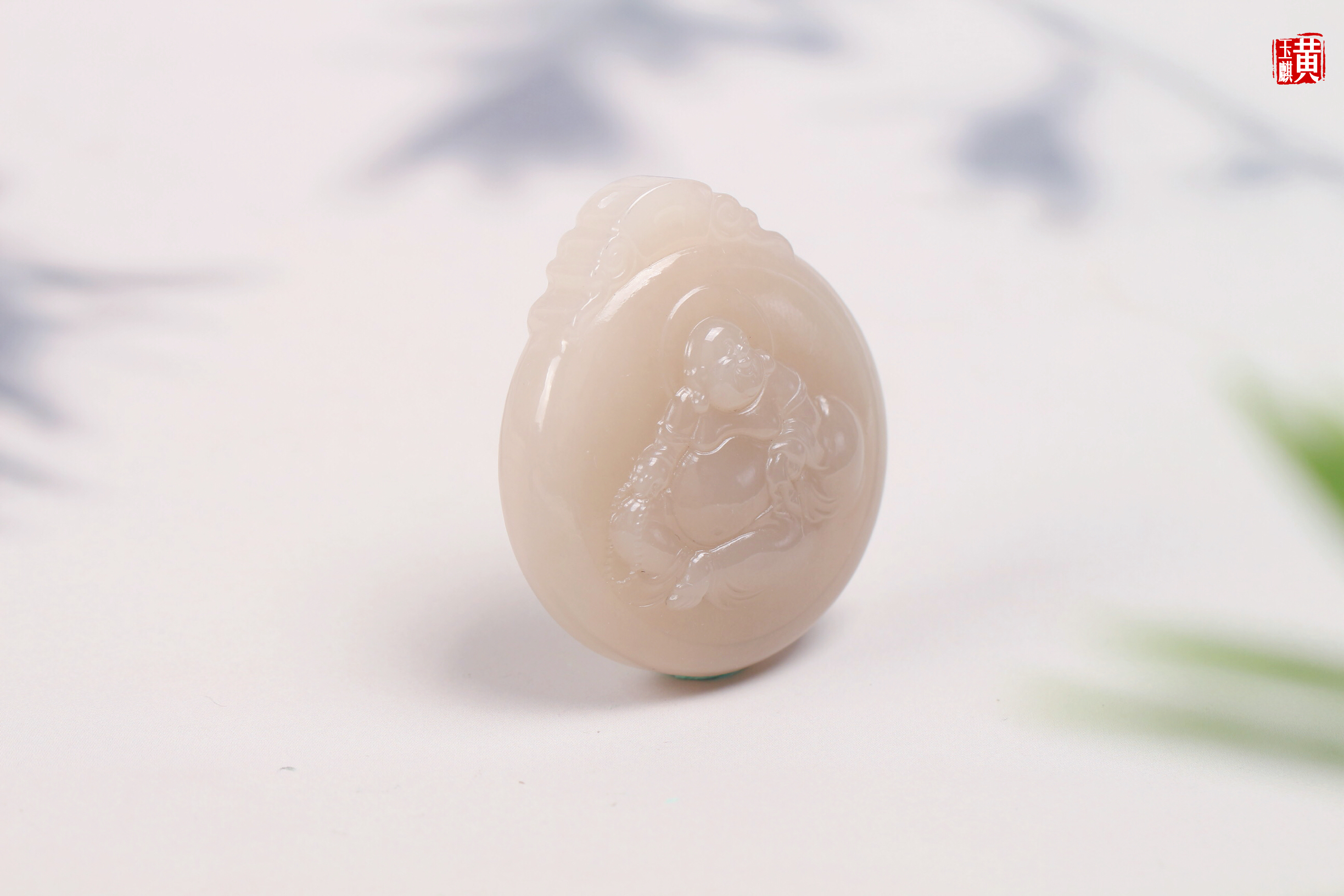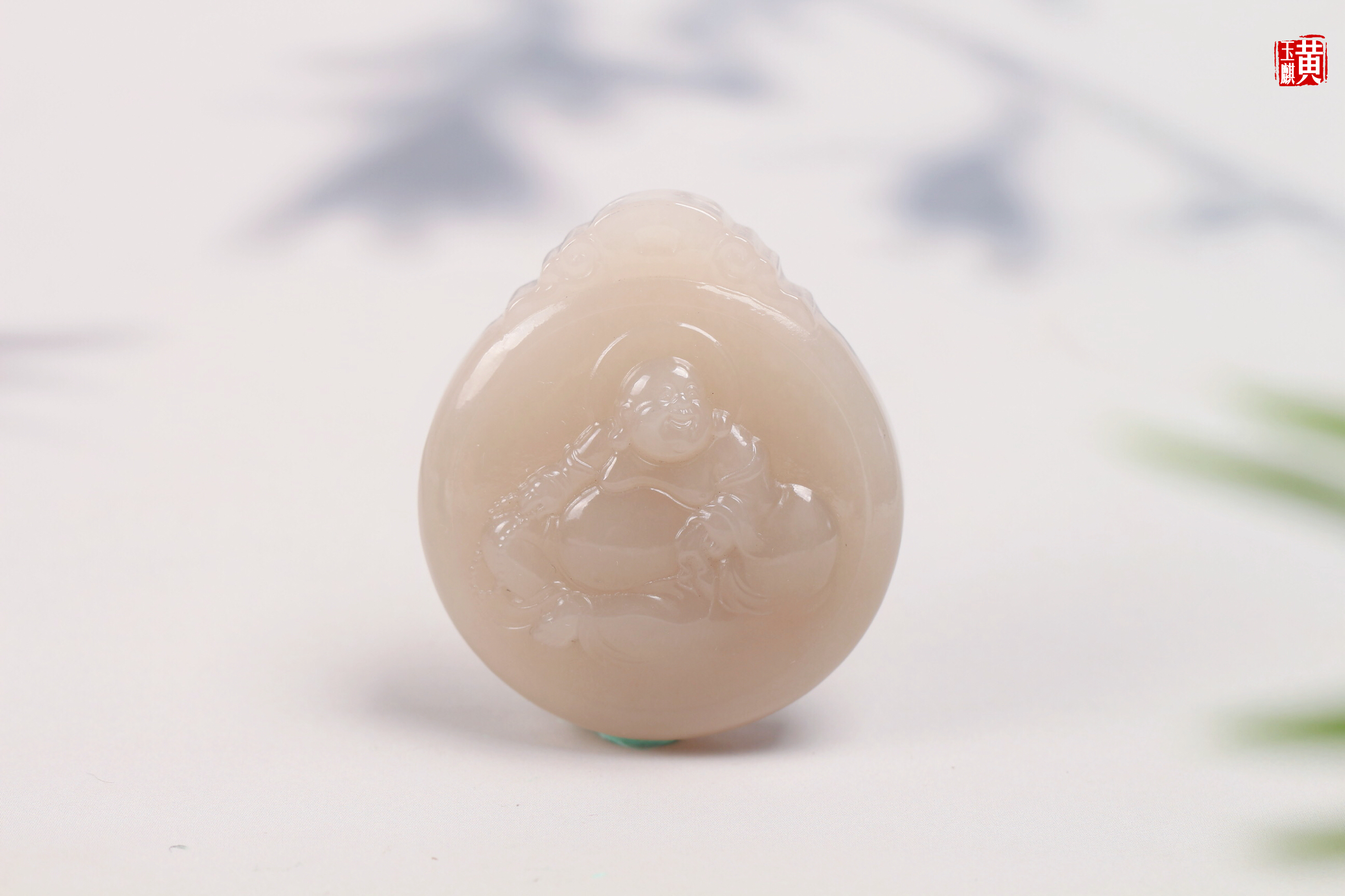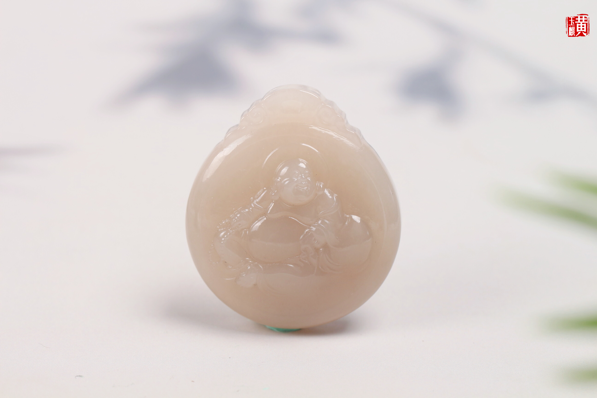 和田藕粉玉布袋佛 配精美挂绳