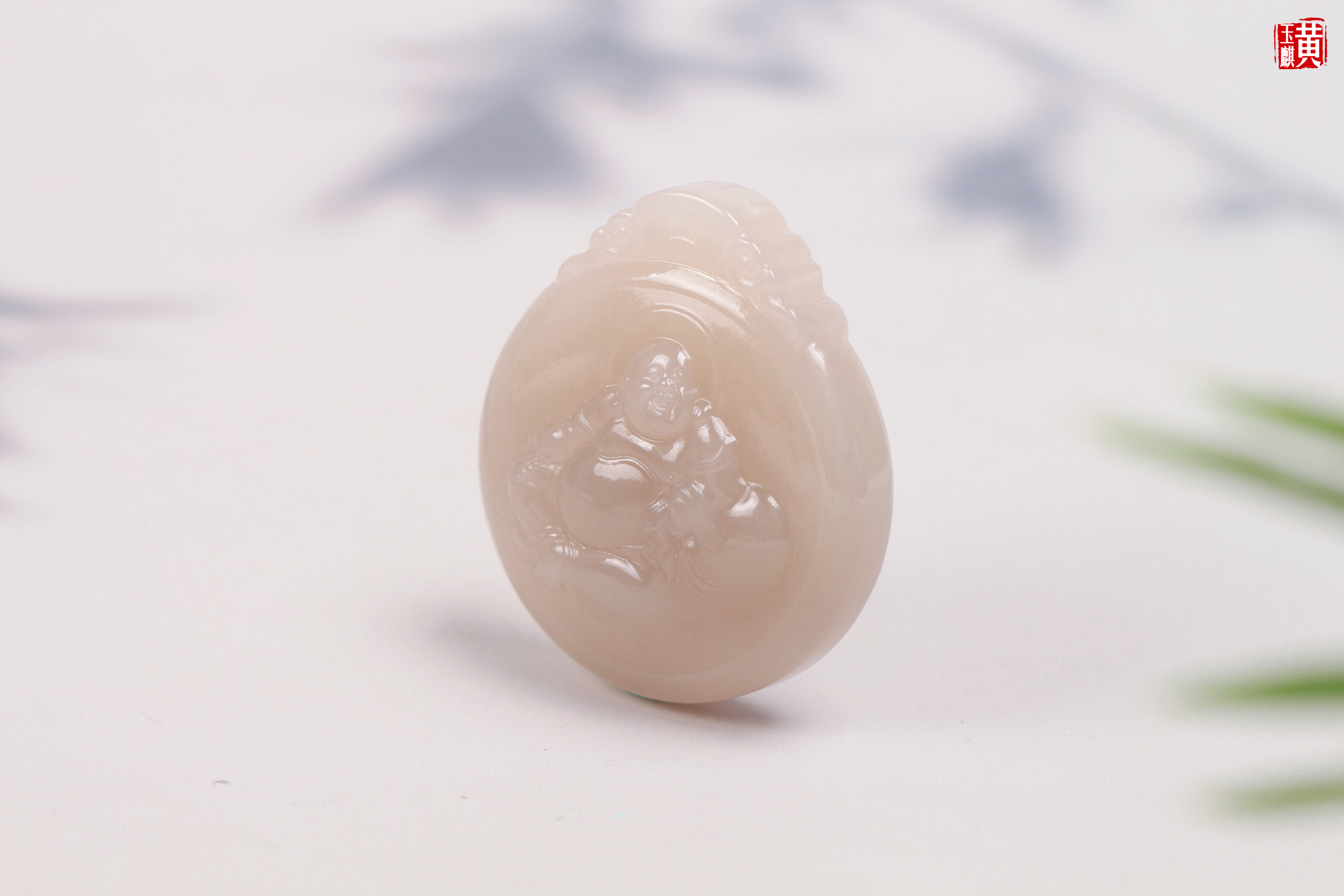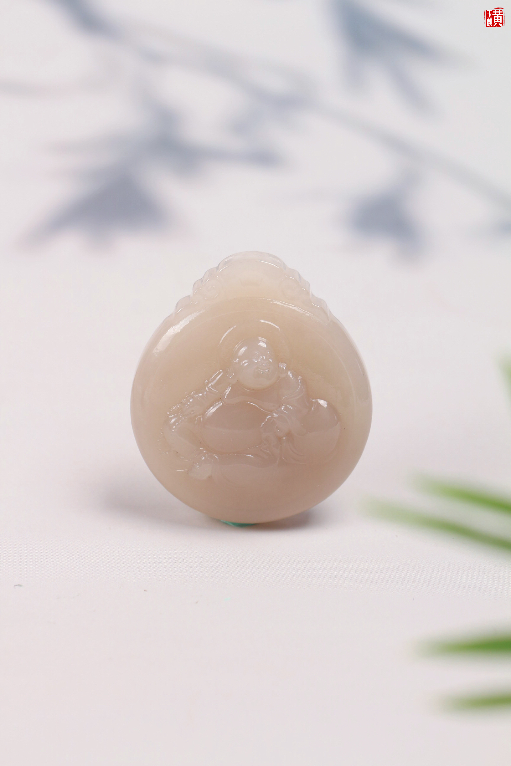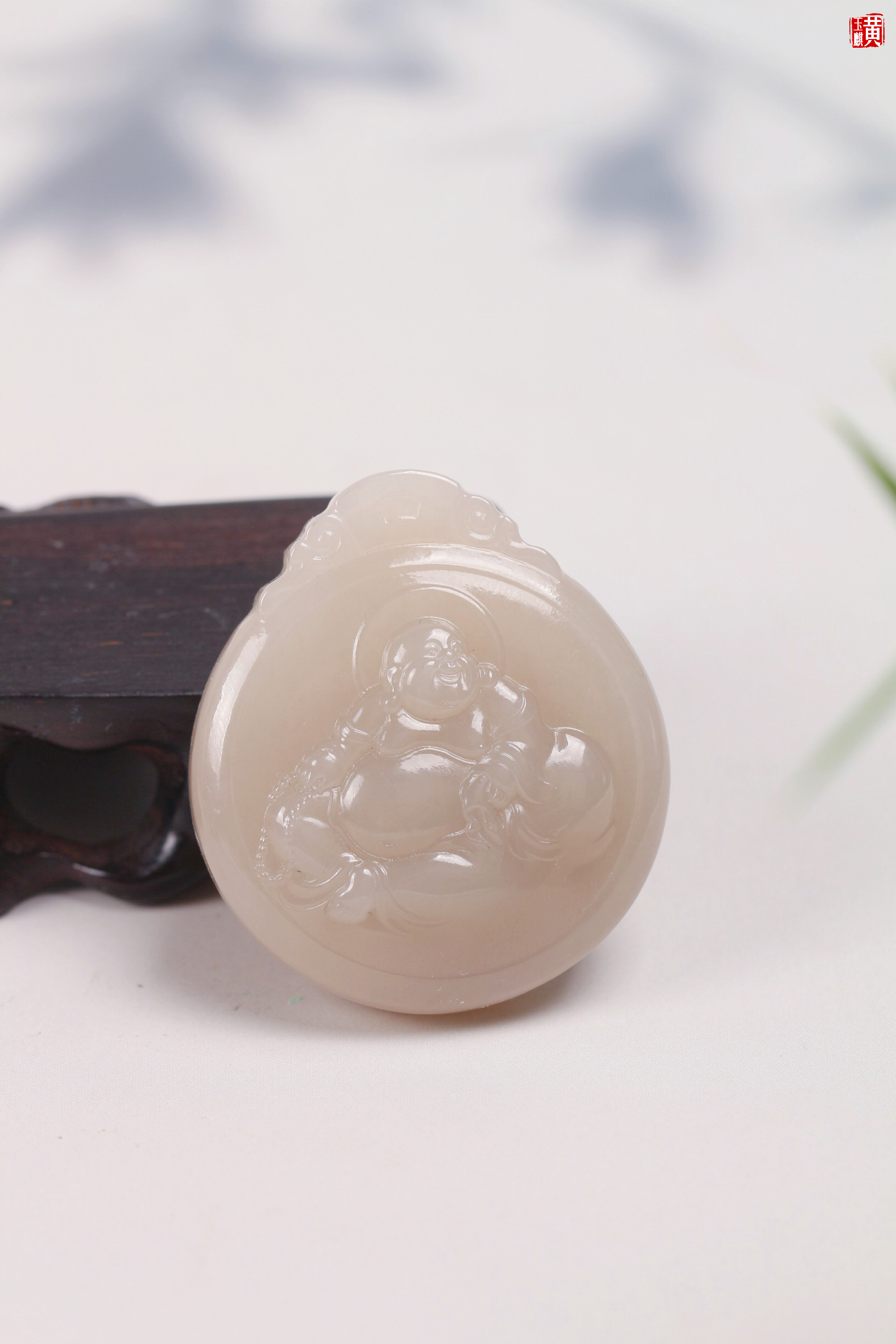 和田藕粉玉布袋佛 配精美挂绳