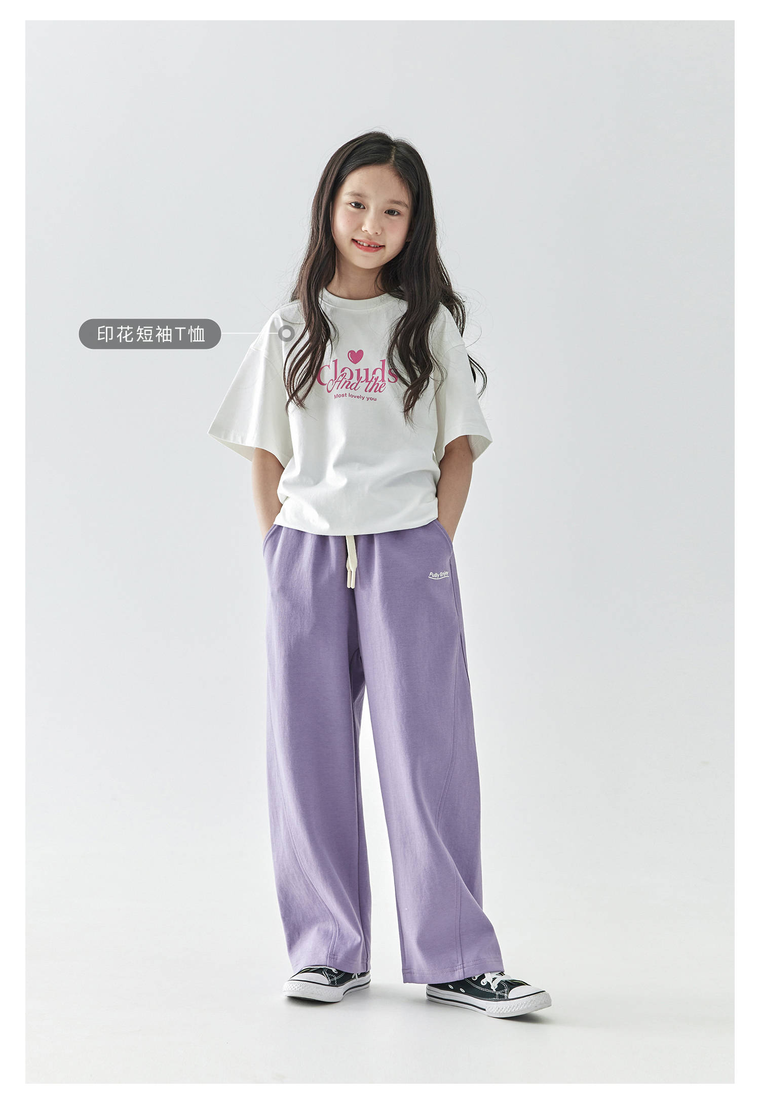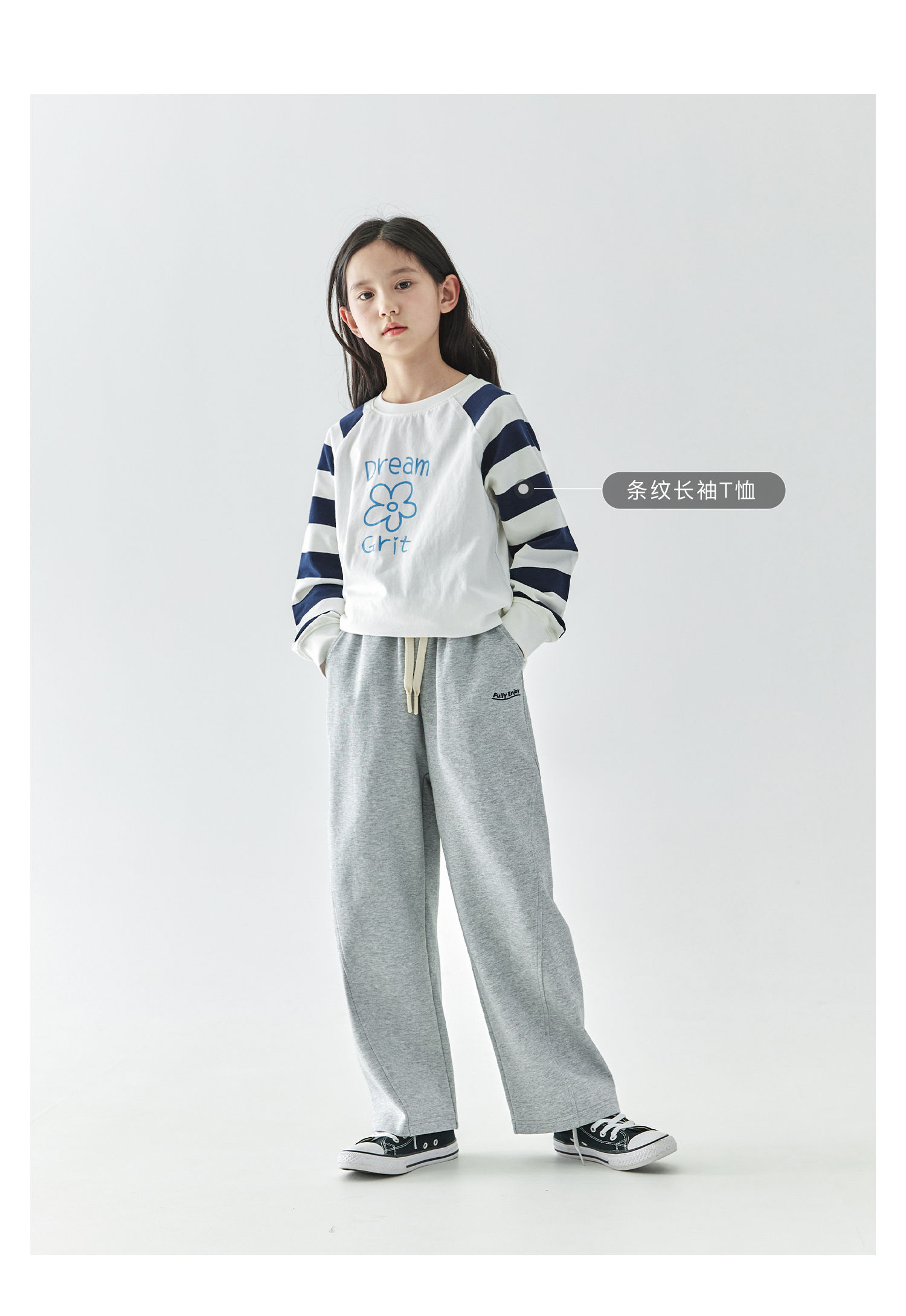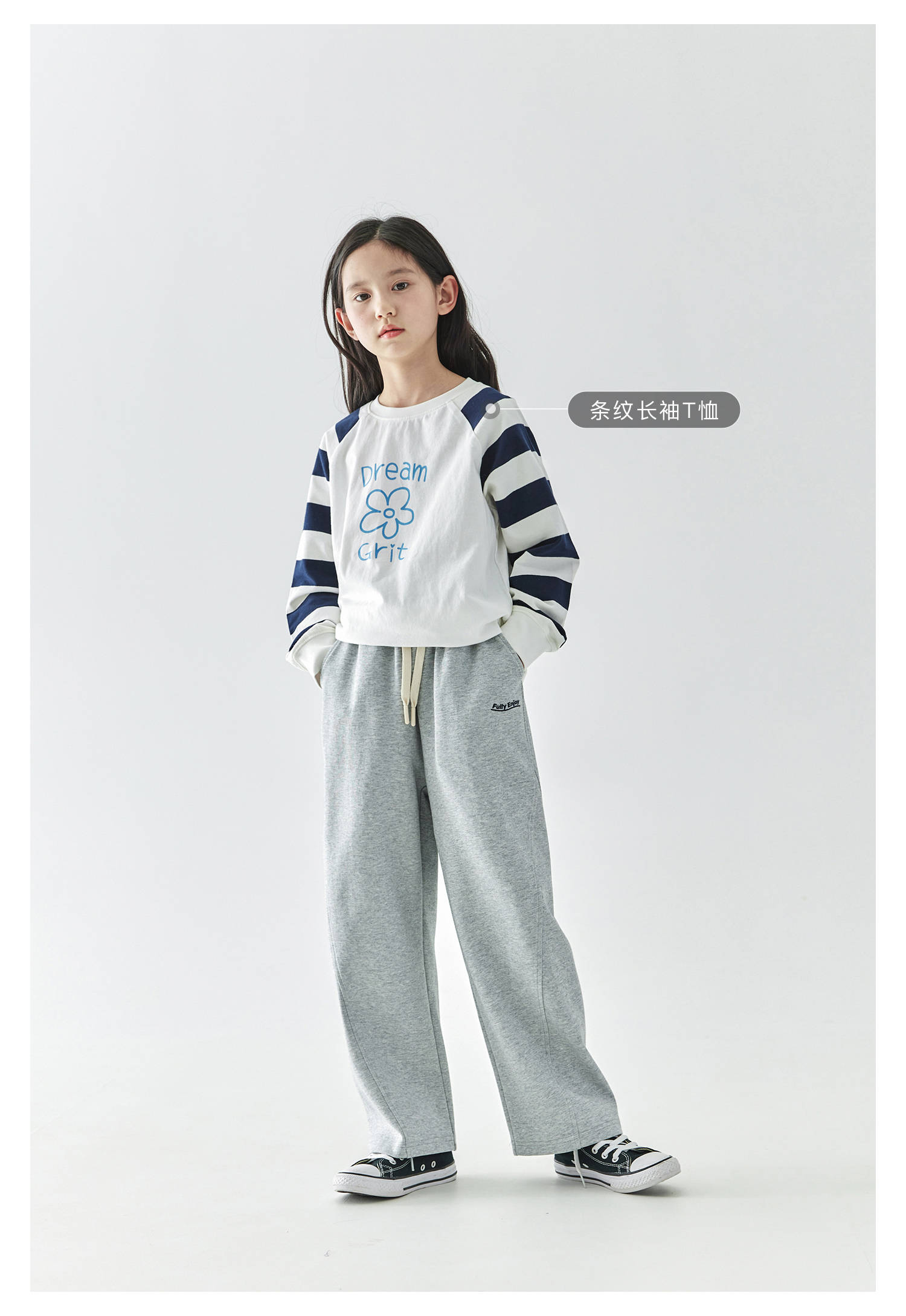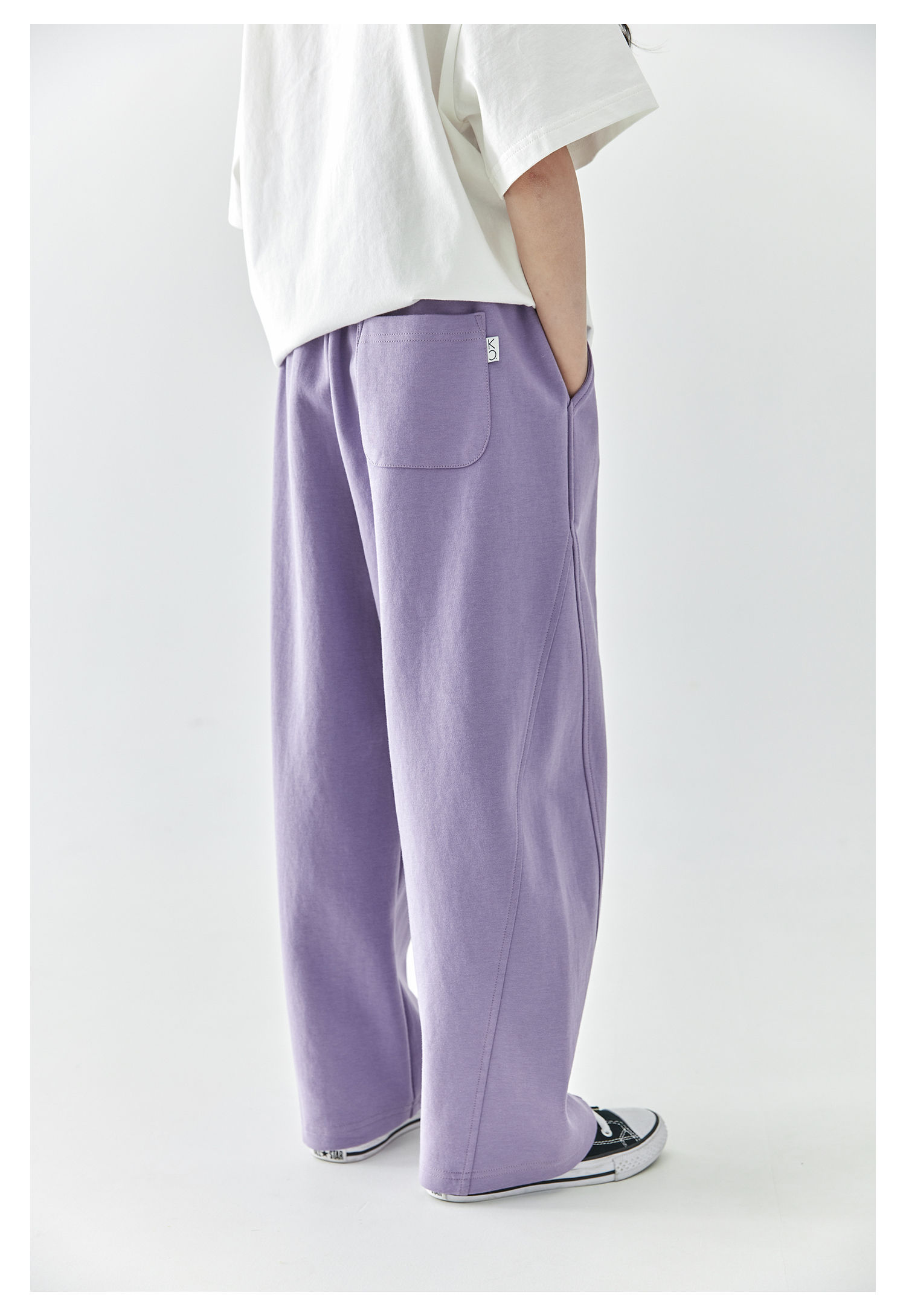 棵初2025年春季新款童装纯色休闲宽松卫裤儿童字母刺绣百搭运动裤