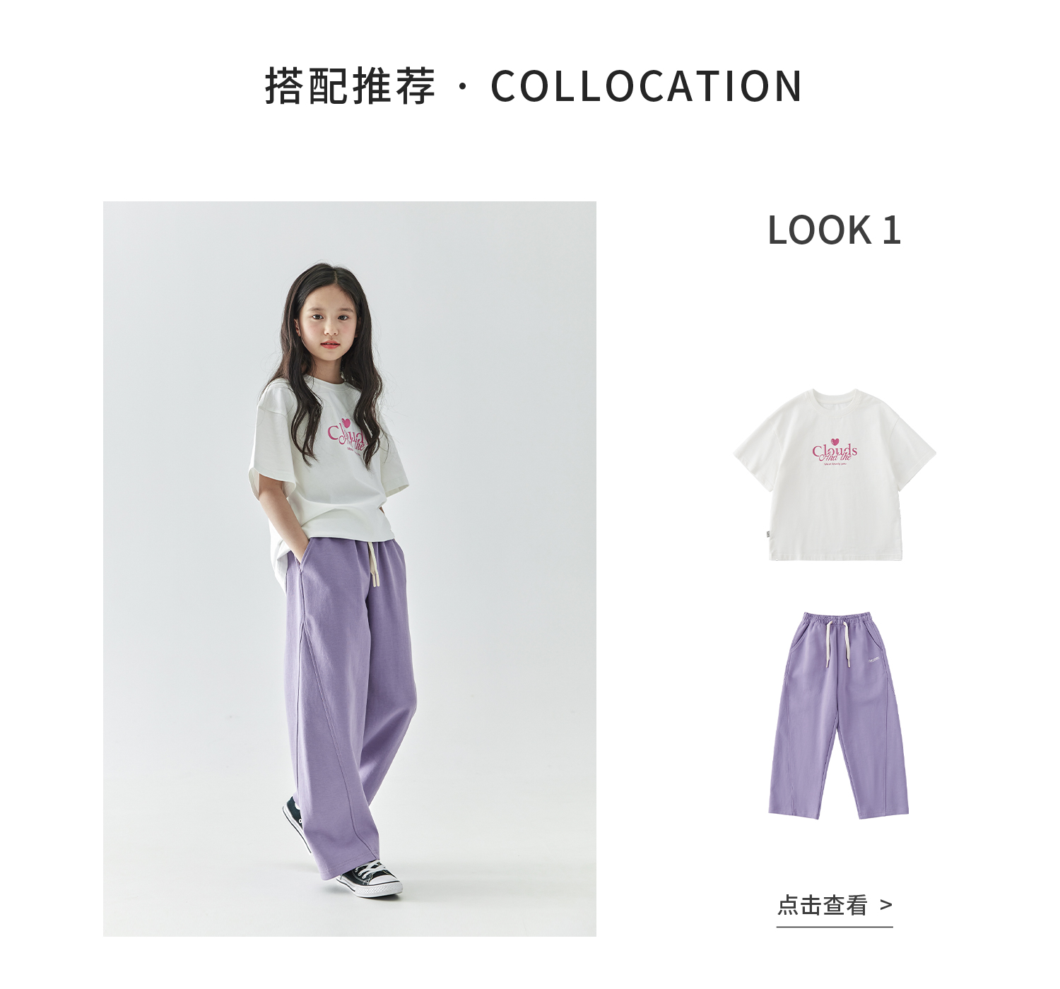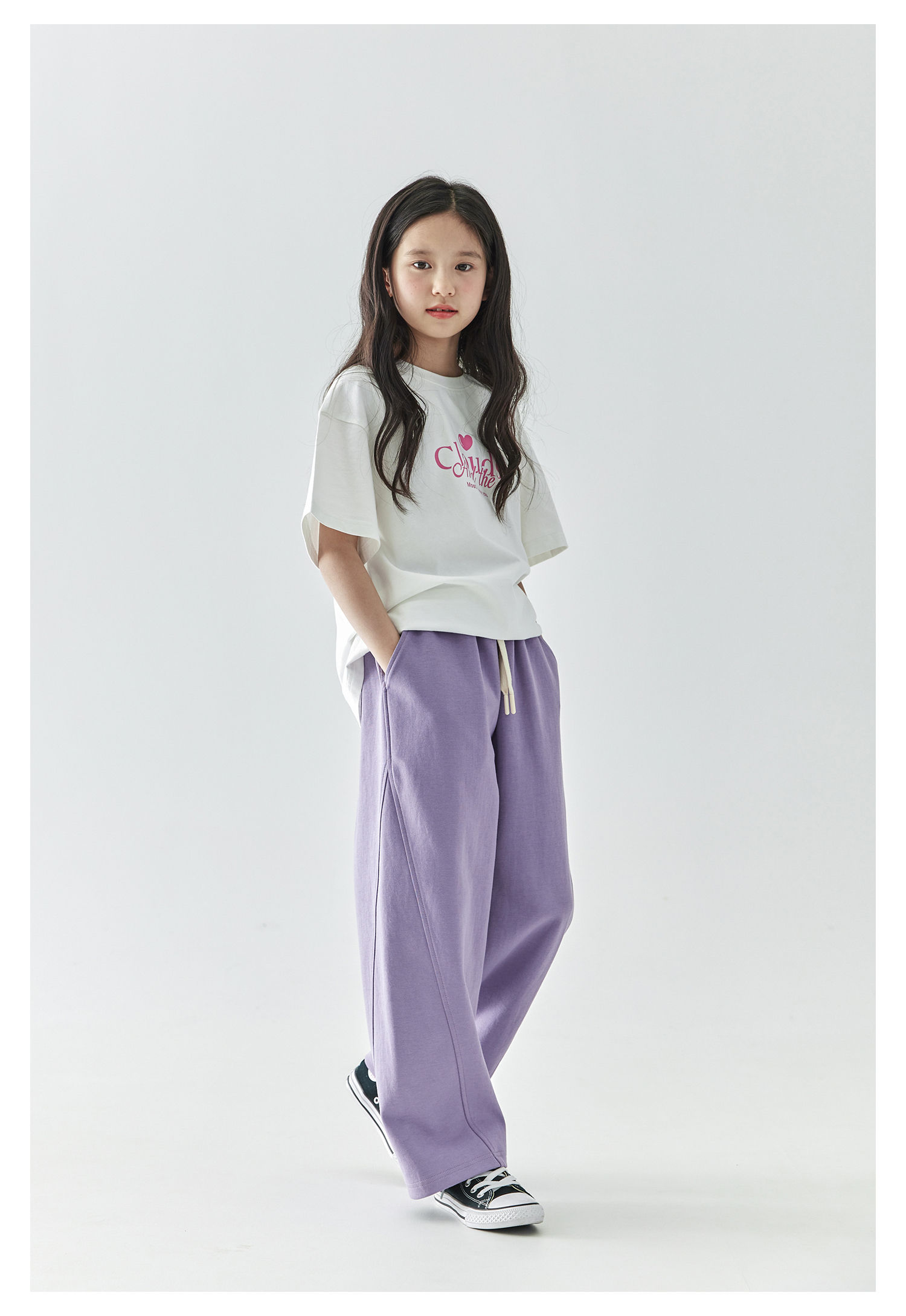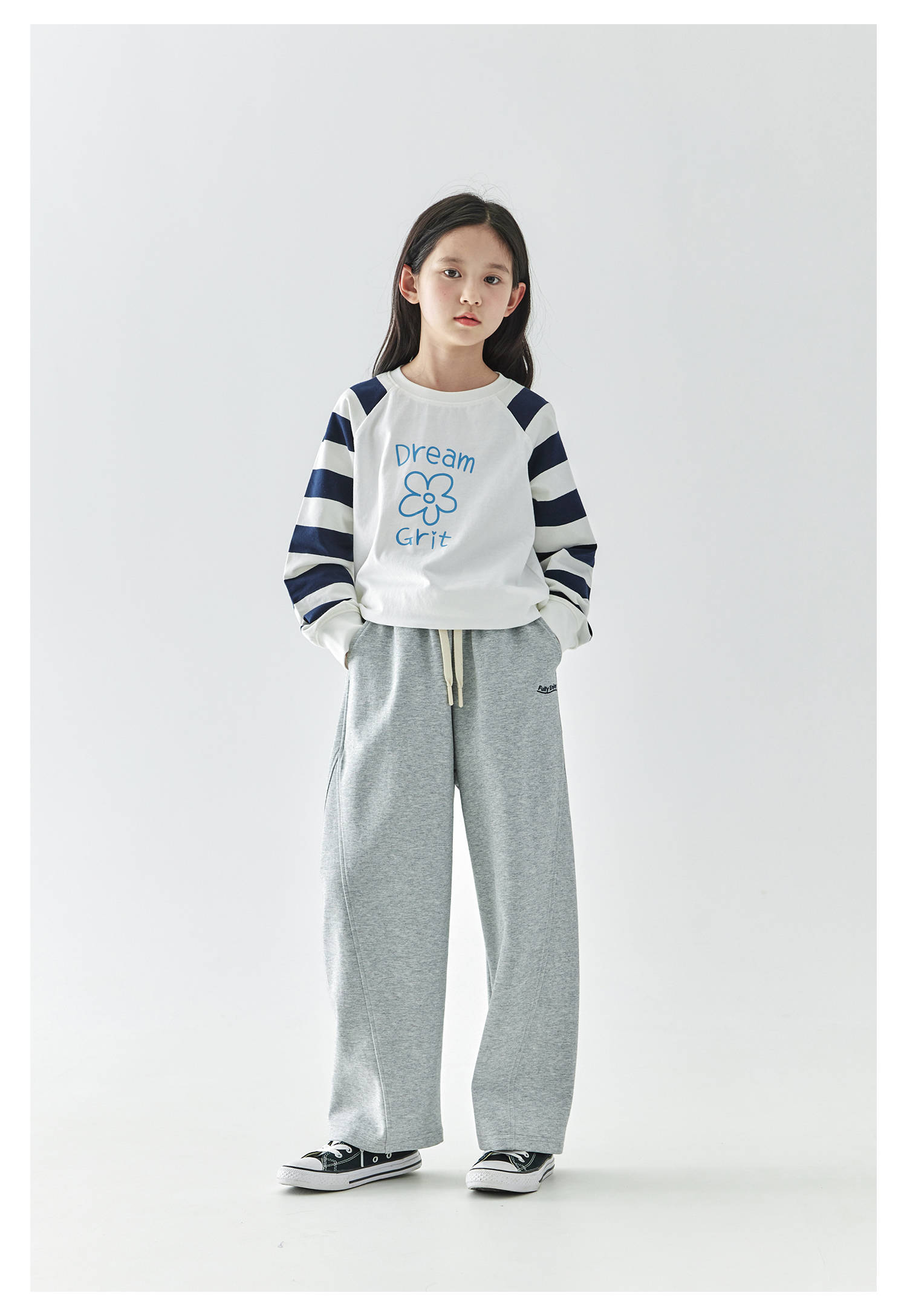 棵初2025年春季新款童装纯色休闲宽松卫裤儿童字母刺绣百搭运动裤