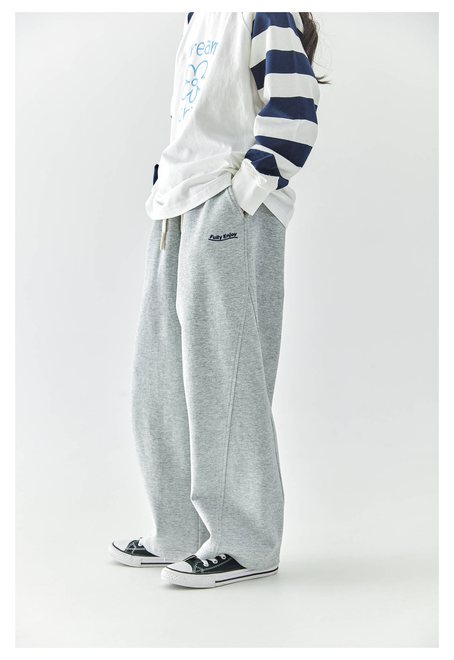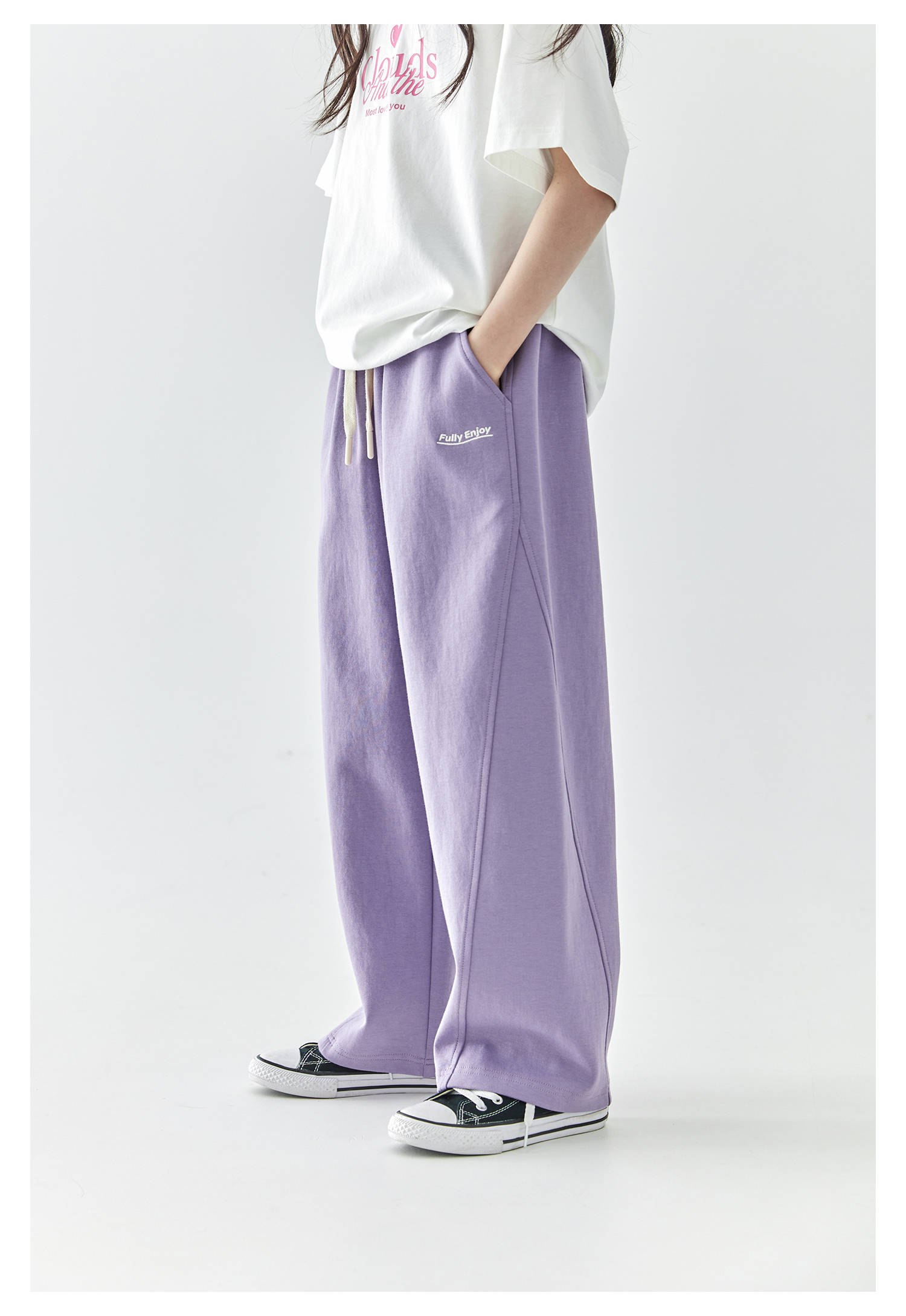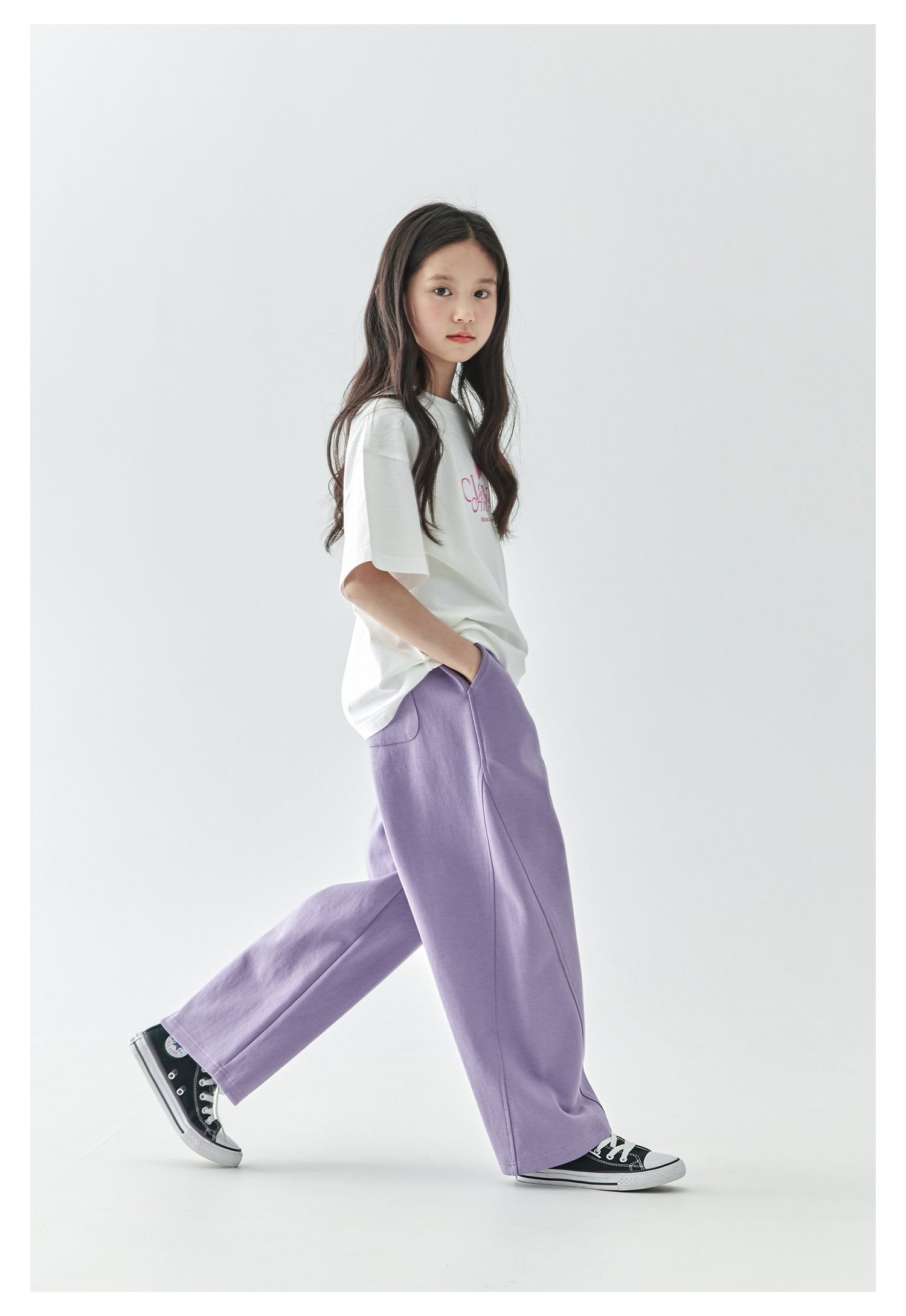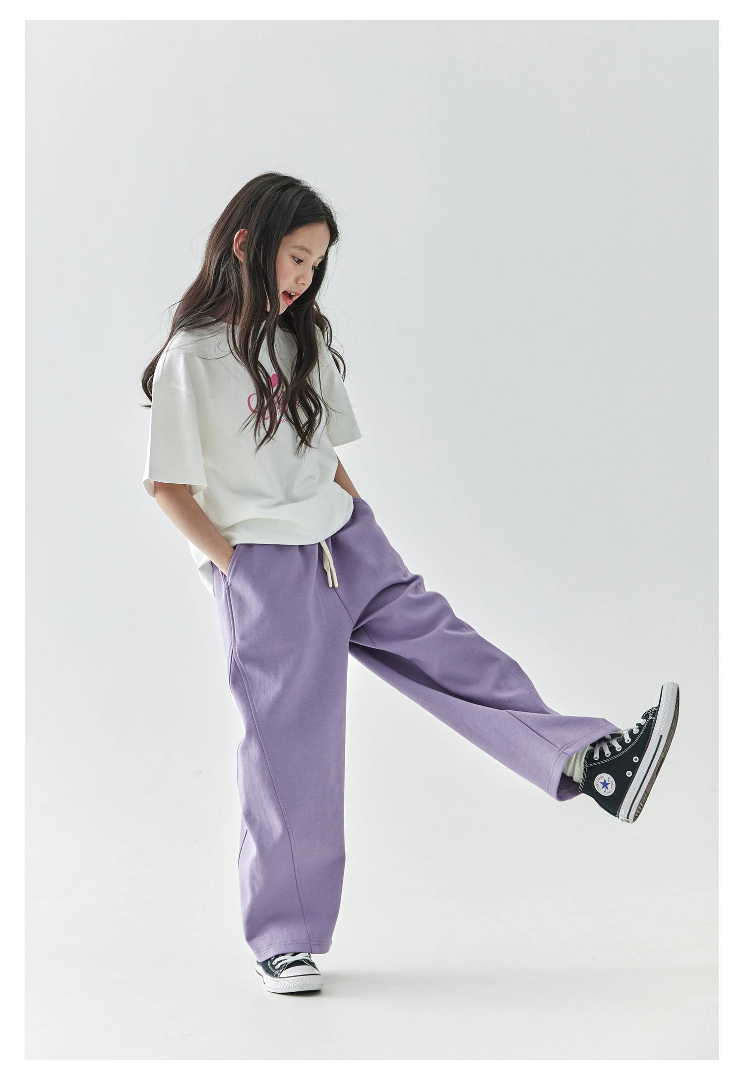 棵初2025年春季新款童装纯色休闲宽松卫裤儿童字母刺绣百搭运动裤