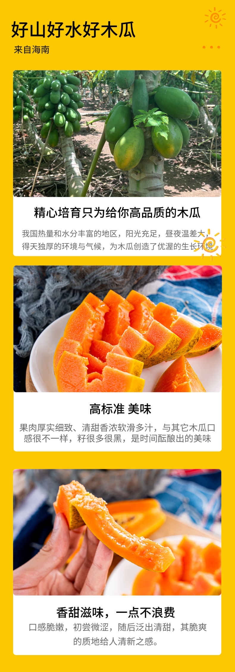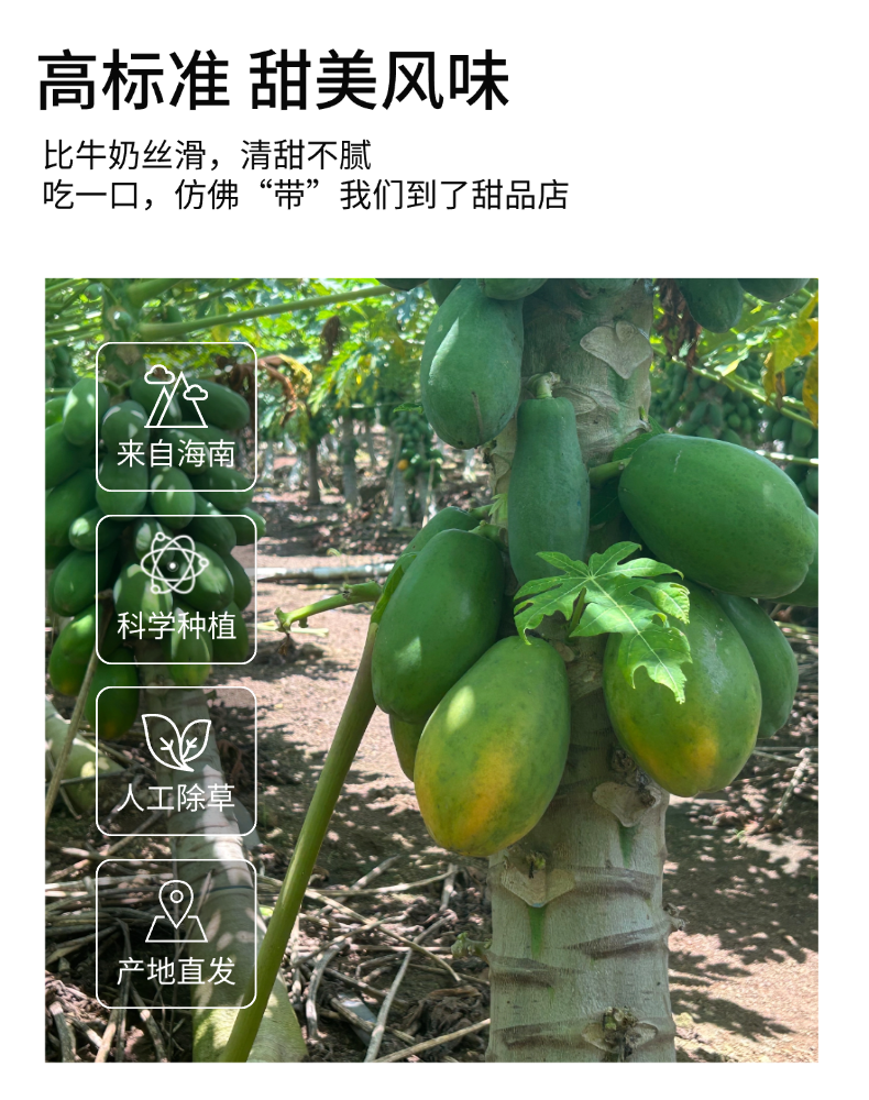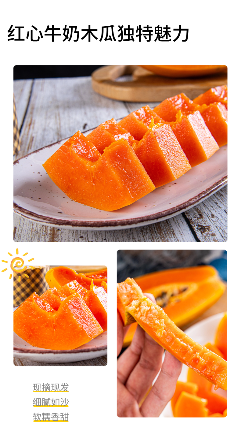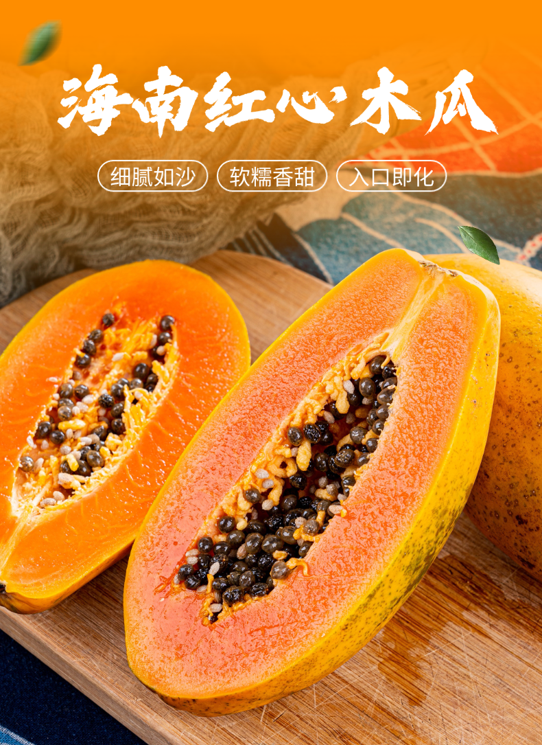 【海南冰糖红心木瓜】树上"甜心"!一口咬住热带阳光——冰糖红心木瓜,树上自然熟,果肉香甜嫩滑~比德芙还要丝滑,吃一口,就爱上!