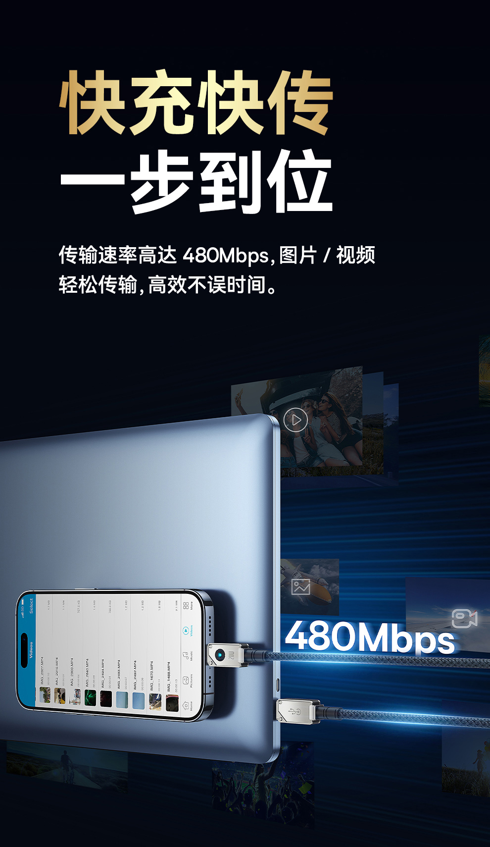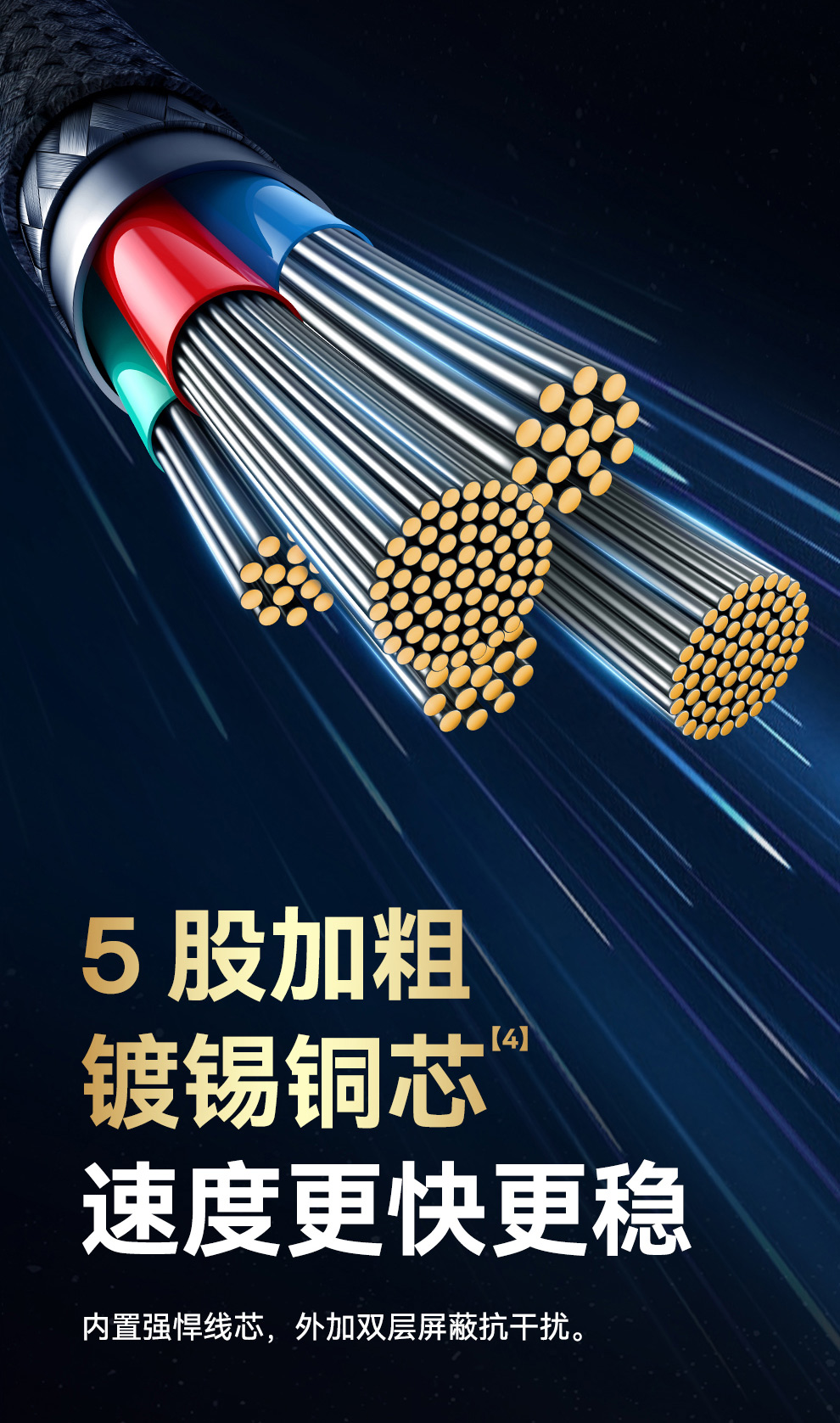 【69元3件】倍思 星速系列 一拖三快充数据线USB to M+L+C 3.5A 1.2m