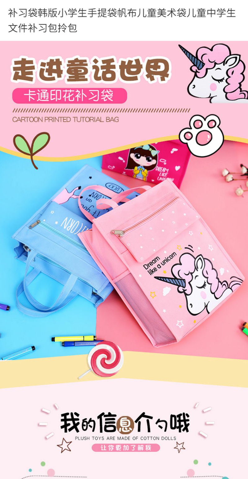 补习袋韩版小学生手提袋帆布儿童美术袋儿童中学生文件补习包拎包