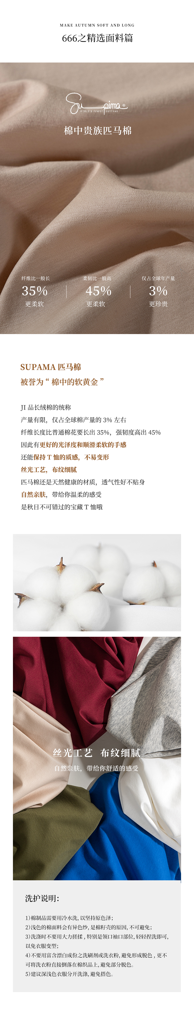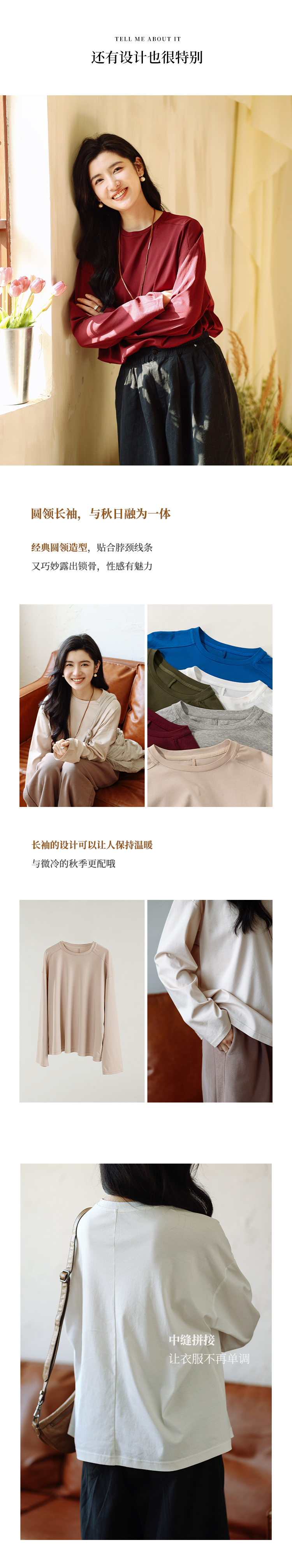 绽放713朵/666T恤匹马棉丝光工艺百搭打底衫圆领宽松减龄多色长袖