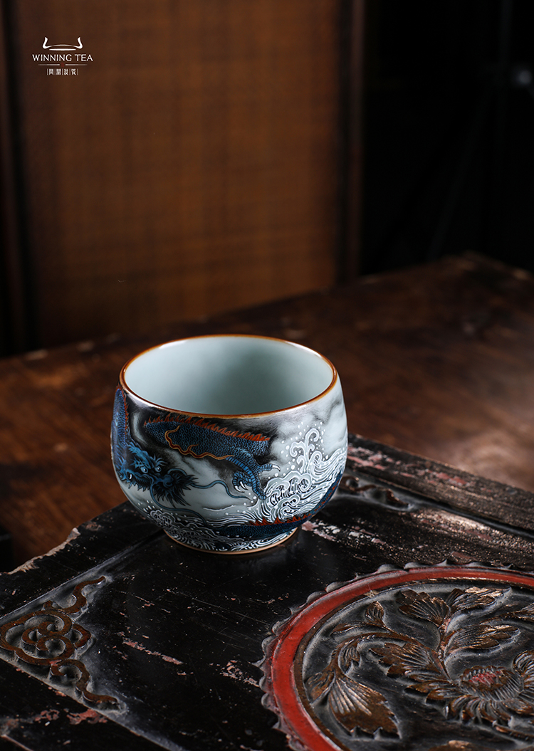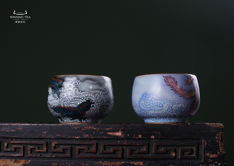 问鼎鼎峰柴窑天青华容杯(龙凤呈祥)(缺货)