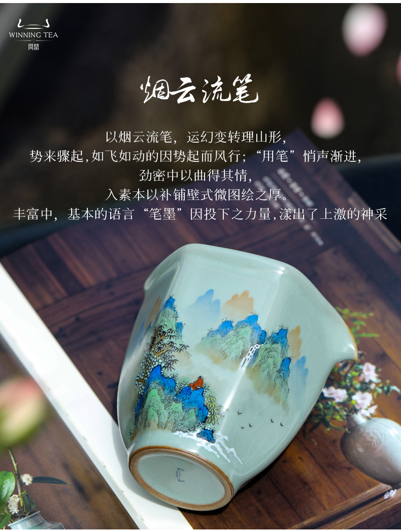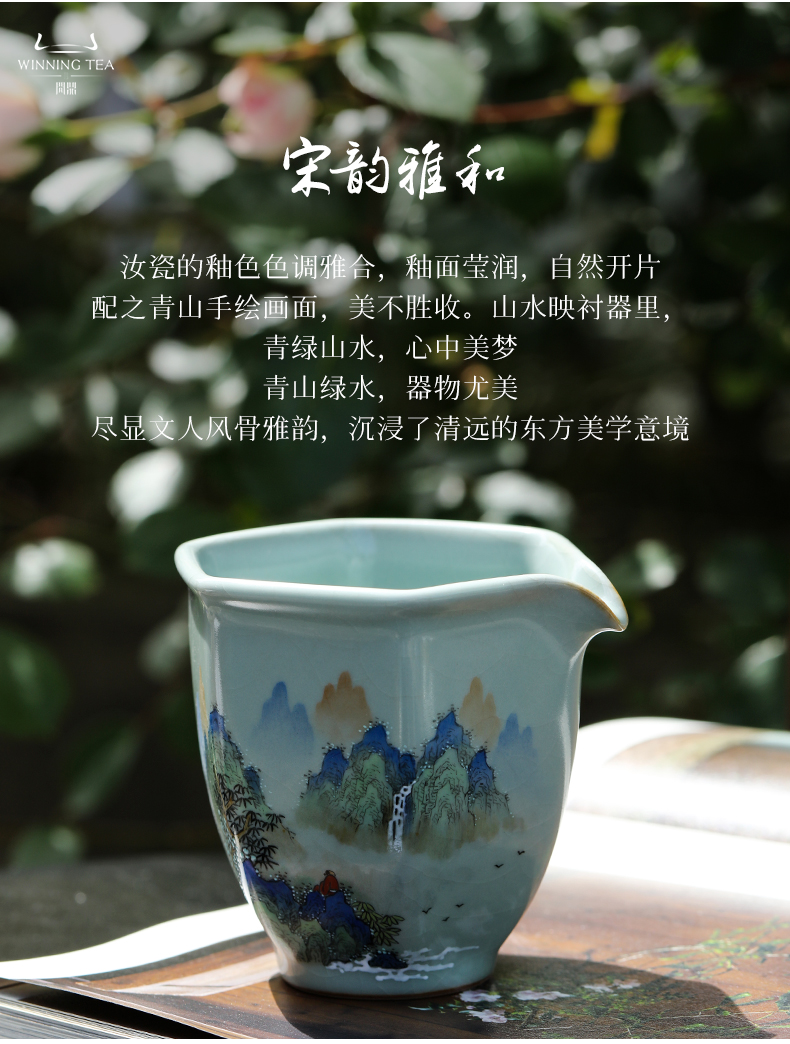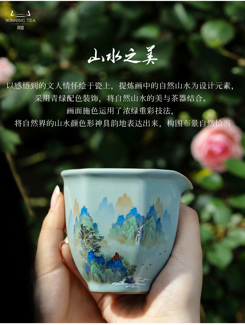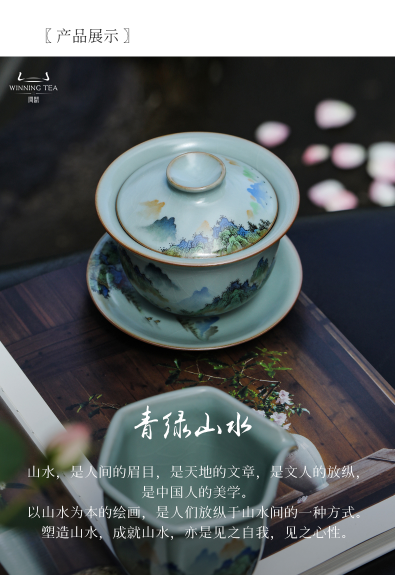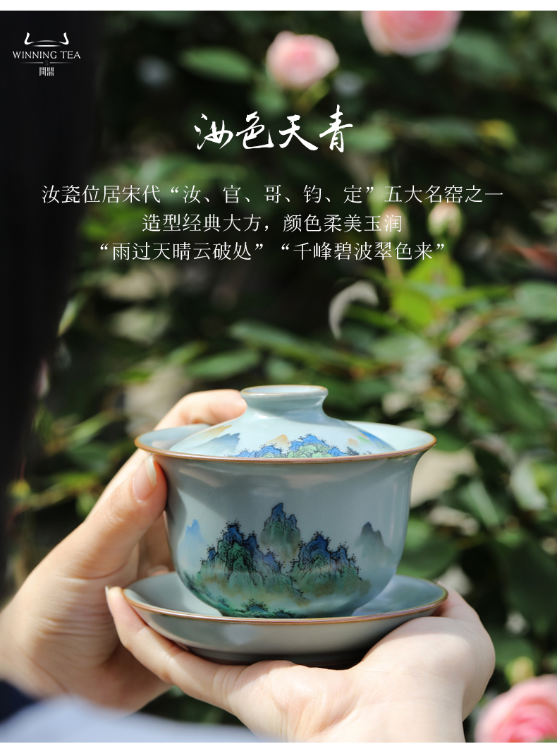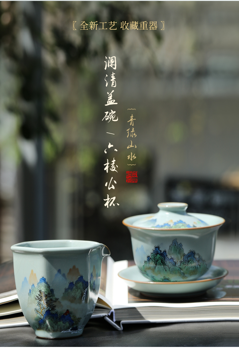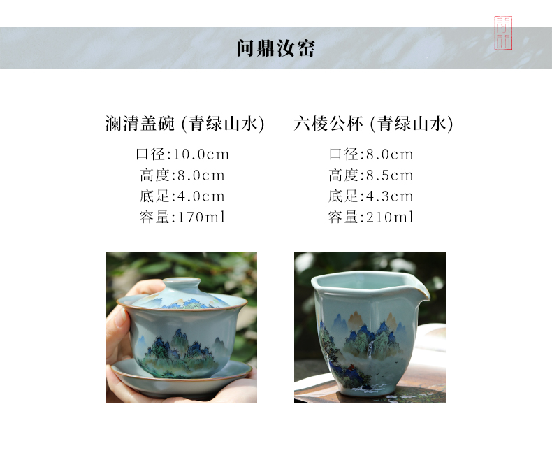 问鼎汝窑澜清盖碗(青绿山水) 六棱公杯(青绿山水)(缺货)