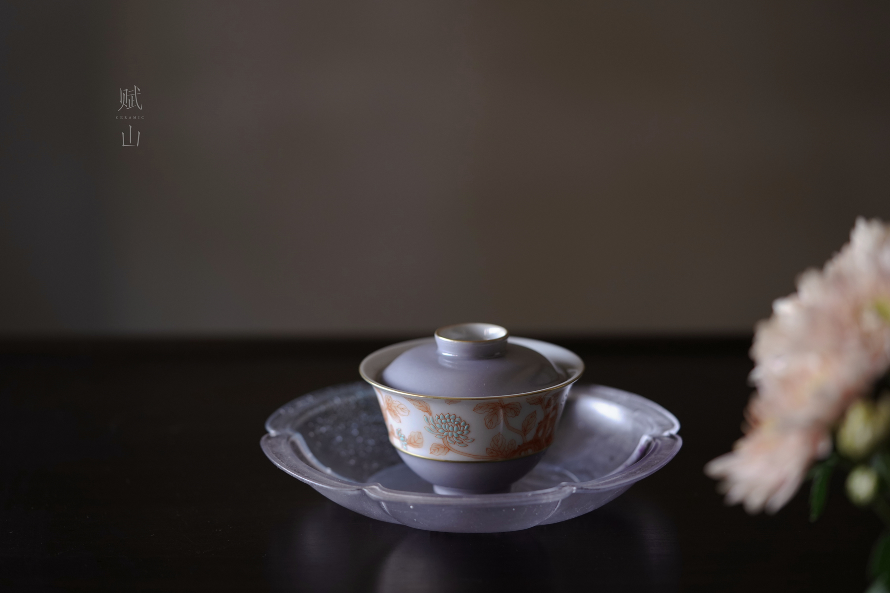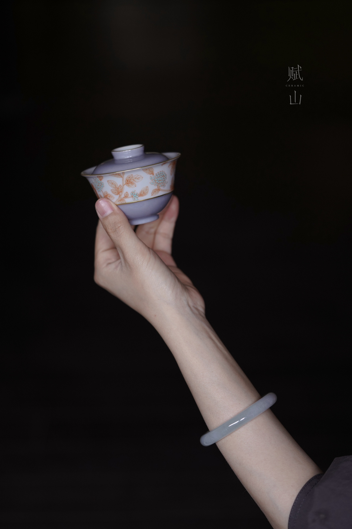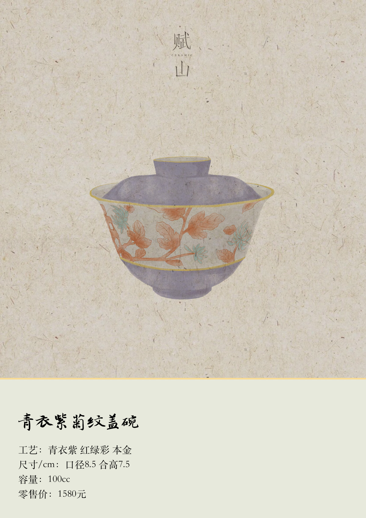 赋山叙 |青衣紫菊纹盖碗