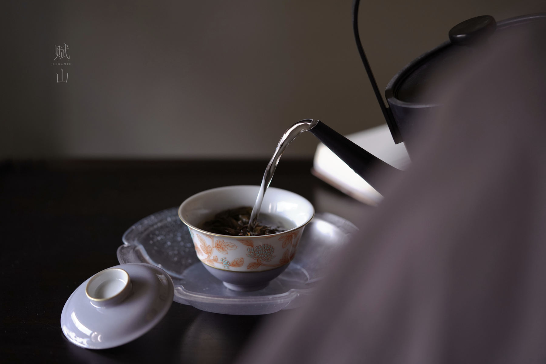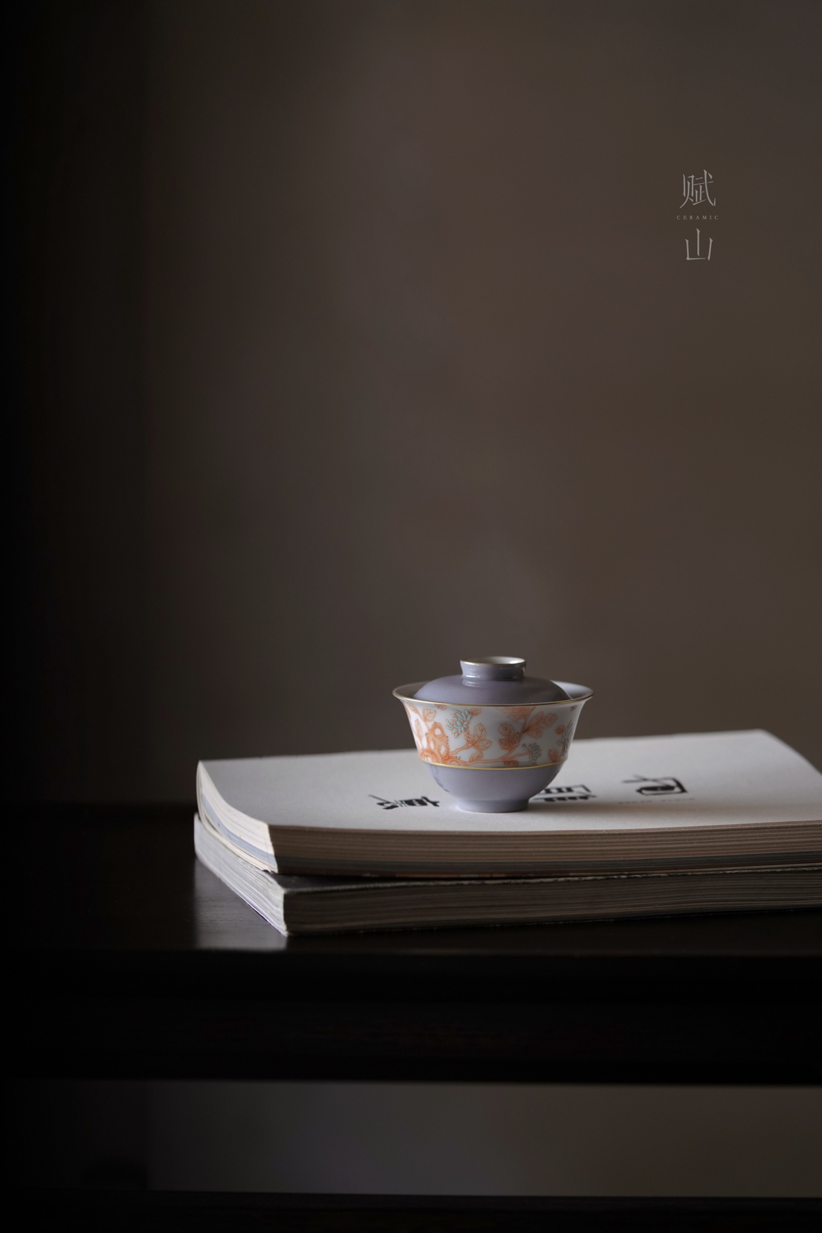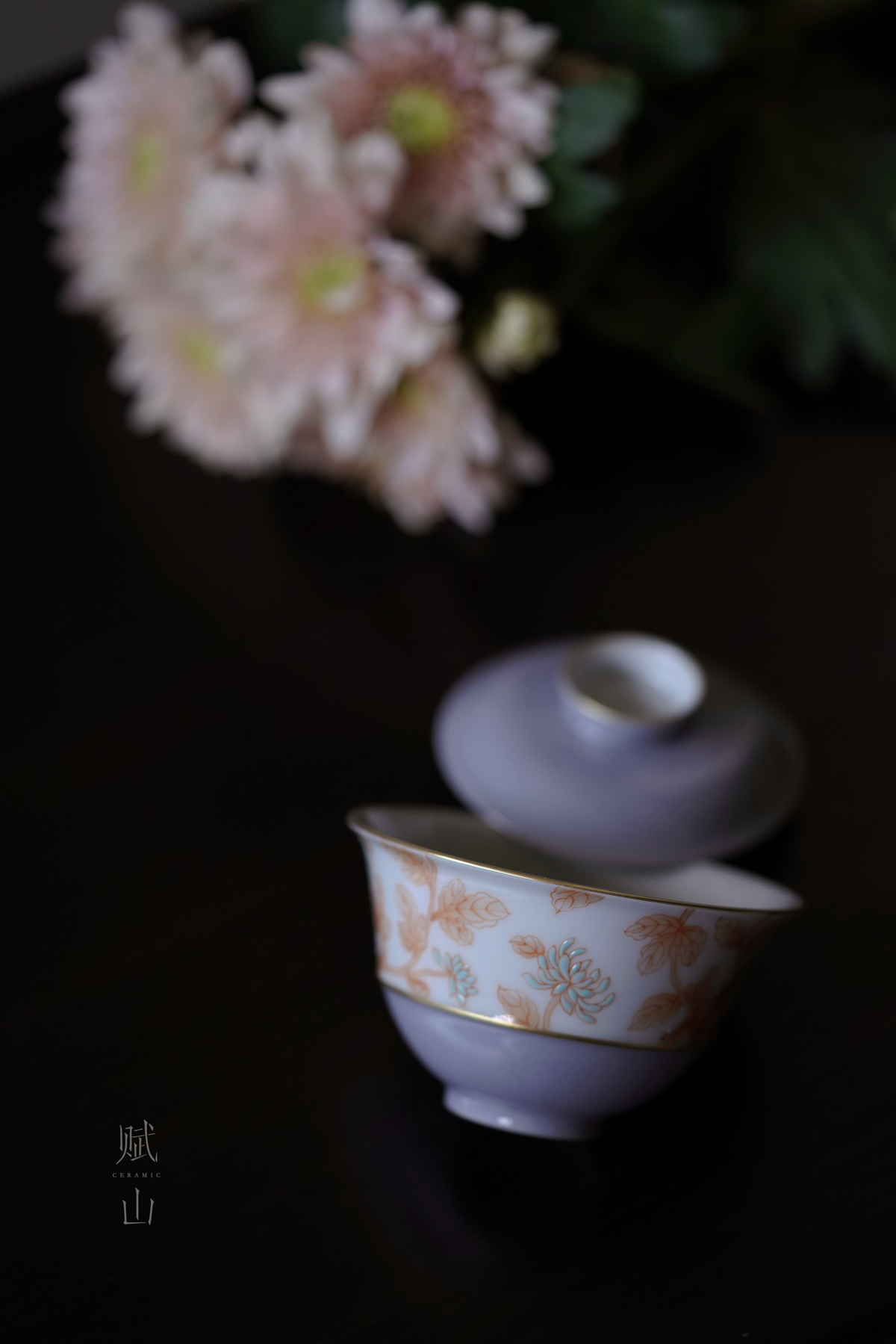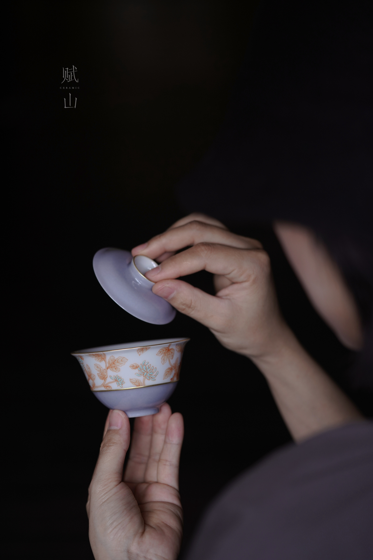 赋山叙 |青衣紫菊纹盖碗