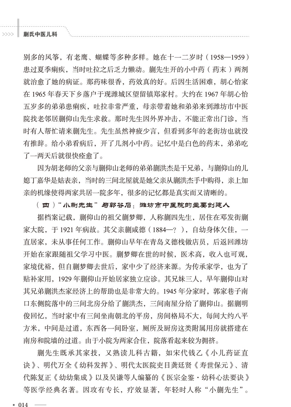 第五代传人刘南萍教授所著,编写期间走访了蒯仰山先生的后人、学生、亲朋好友、邻里街坊及诊治过的患儿和家属。其中记录的风土人情、城市变迁,亦是地方历史研究不可多得的珍贵资料。