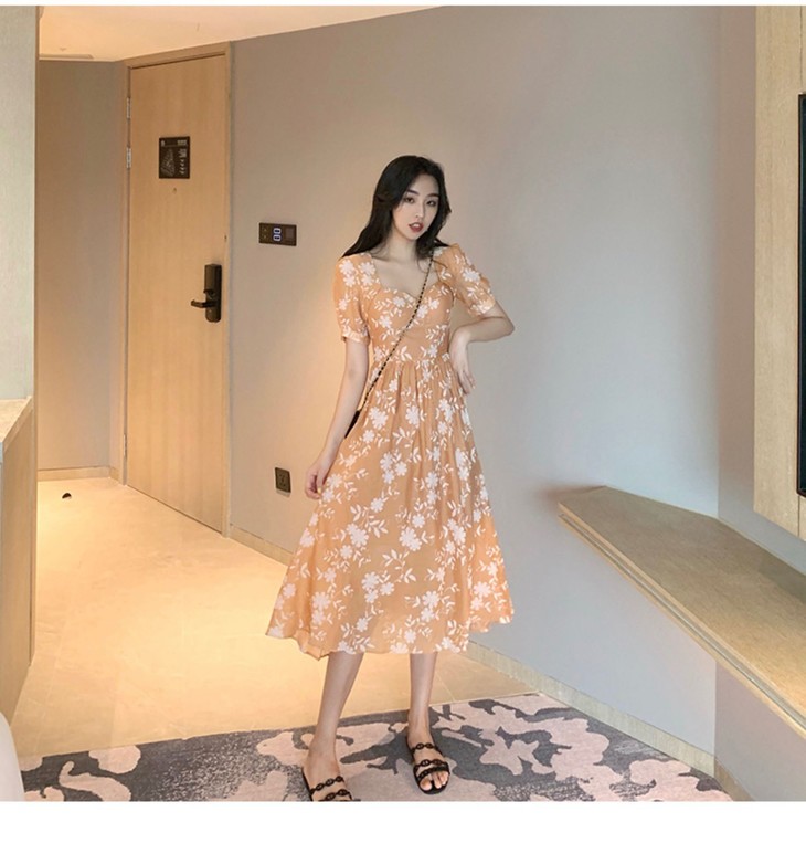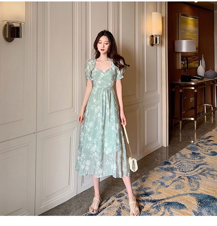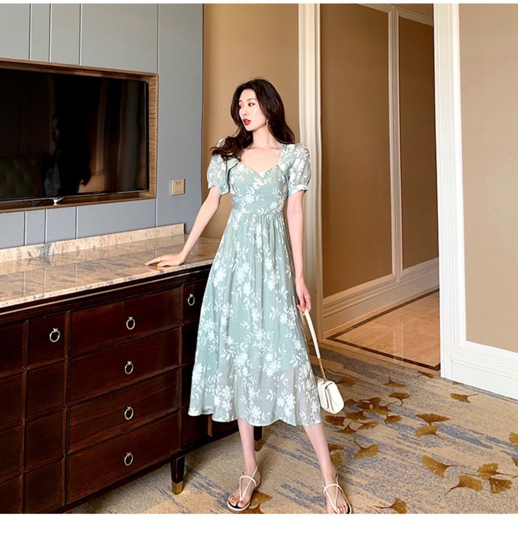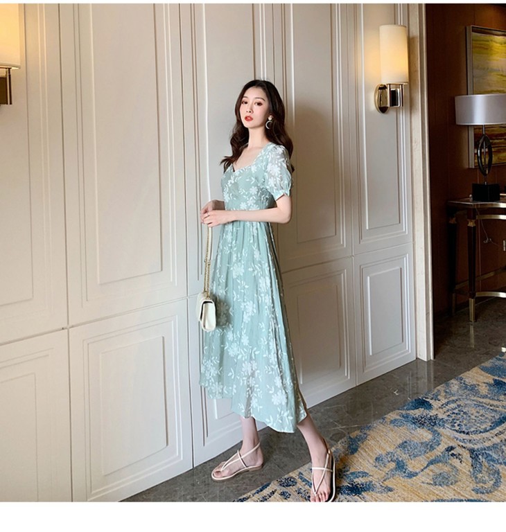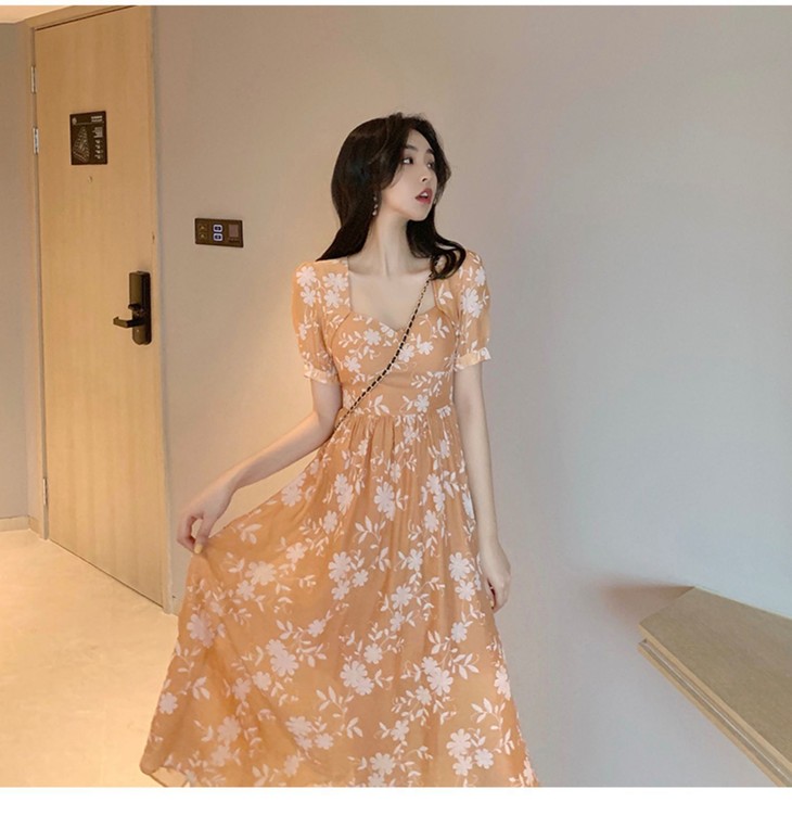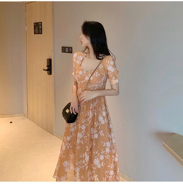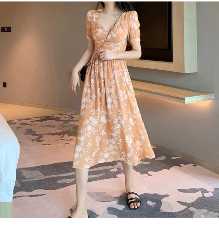 【服饰鞋包】碎花连衣裙女装夏季法式长裙及踝复古显瘦超仙裙子森系