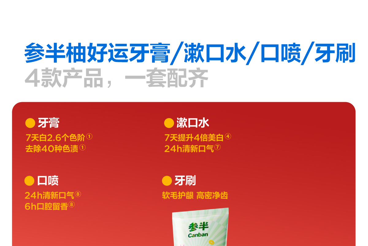 参半旗下产品已覆盖牙膏、漱口水、口腔爆珠、口腔喷雾等多个类目,为用户提供了精细化的口腔护理解决方案。